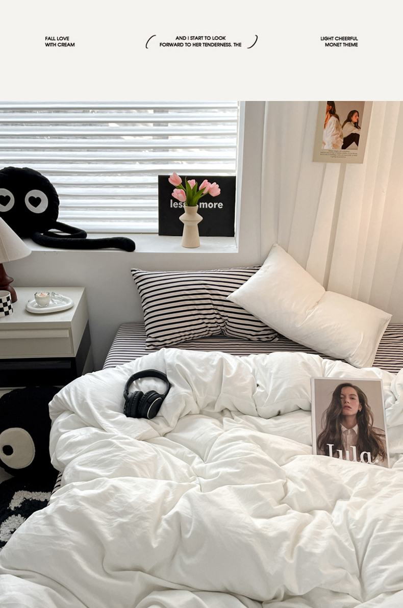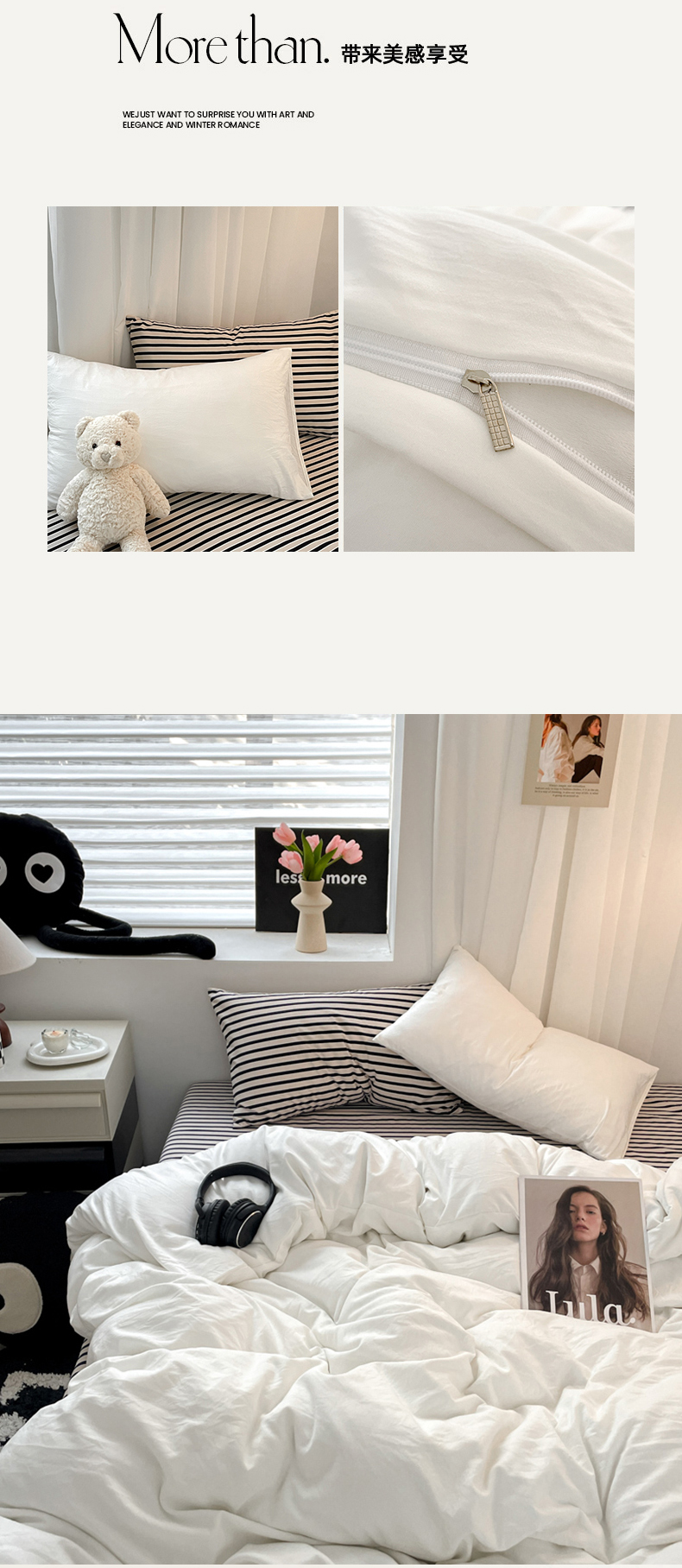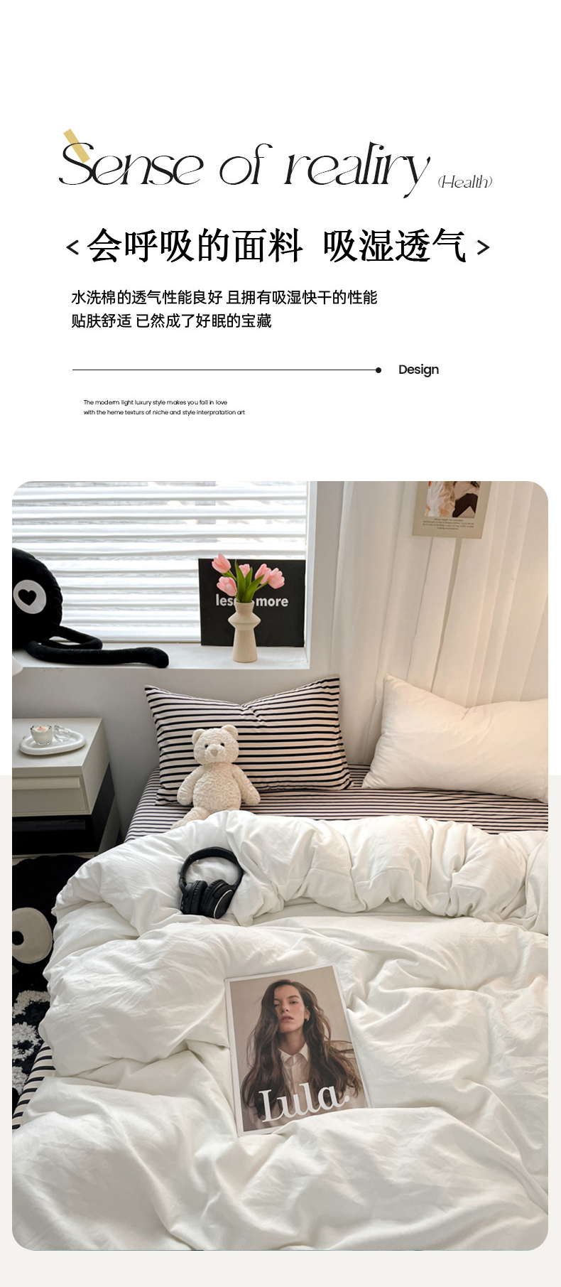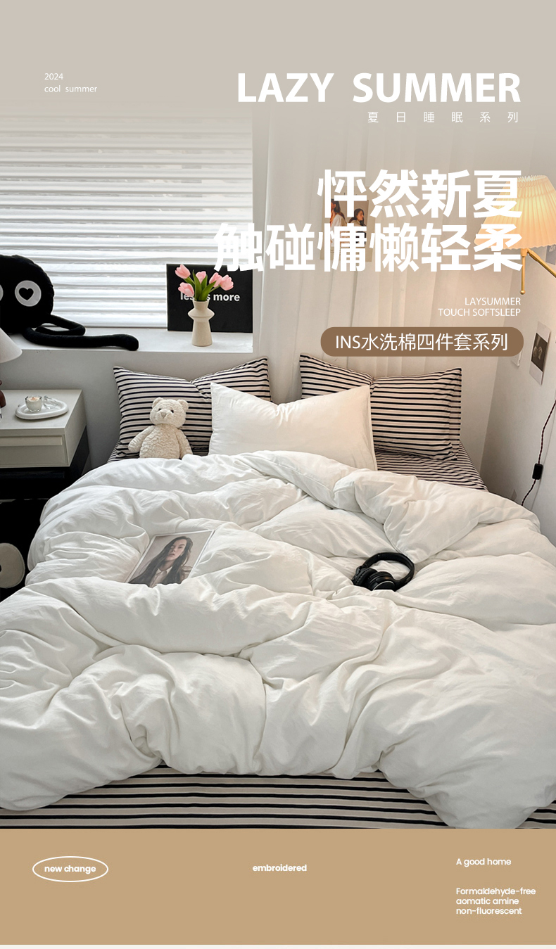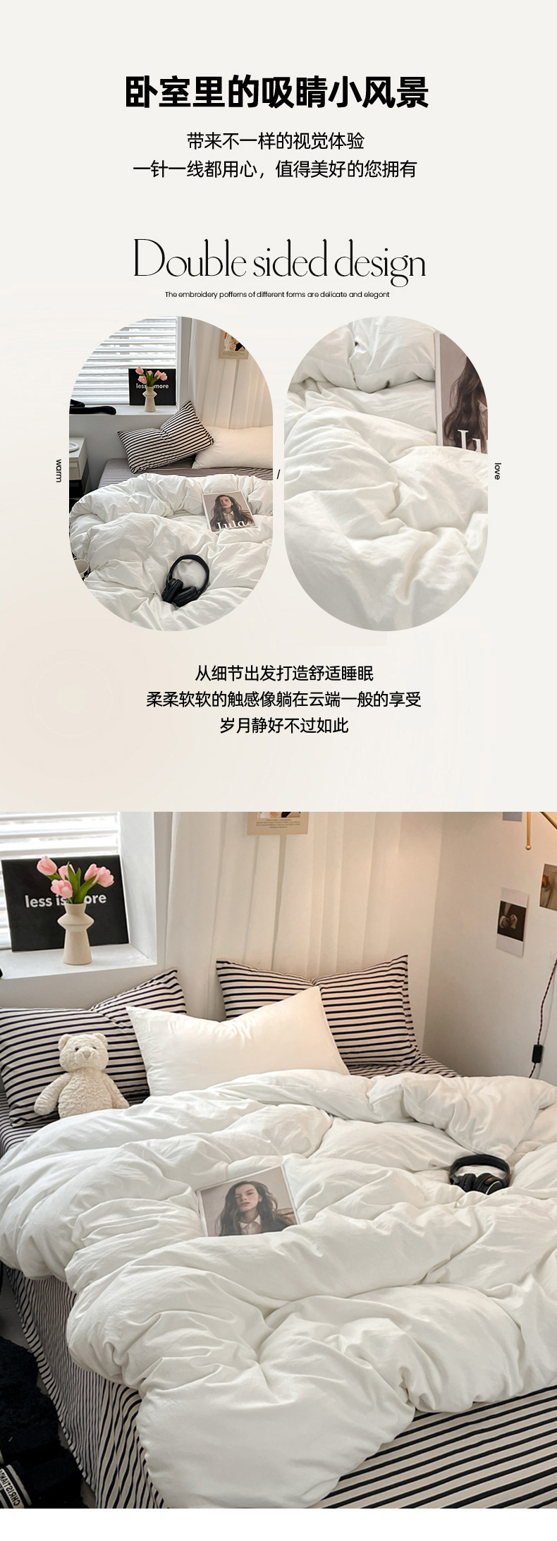 当前位置: 91家纺网 > 商品网购 > 床品套件 > 四件套 > 水洗棉四件套 > 耀达家居 2024新款ins 纯色双拼条纹水洗棉四件套 奶白
