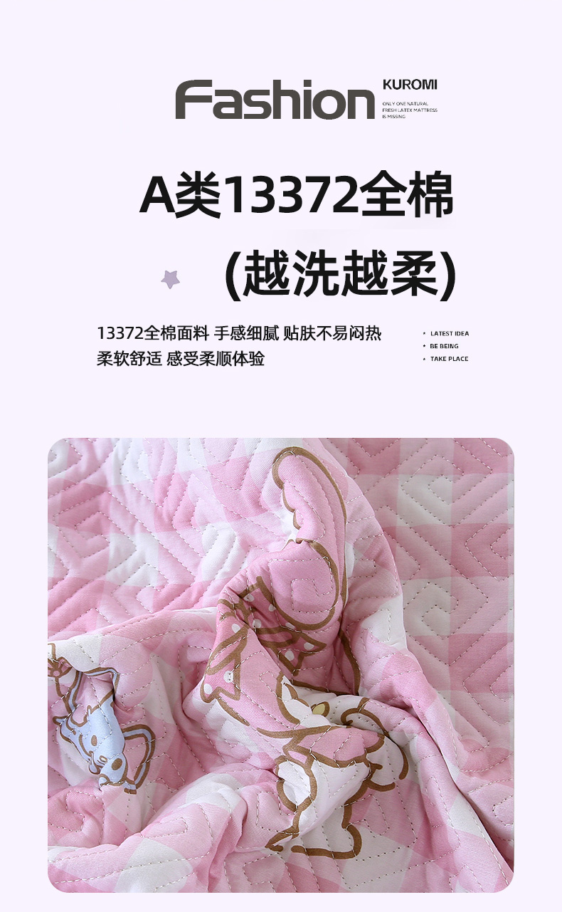 当前位置: 91家纺网 > 商品网购 > 床垫/床褥 > 普通床垫 > 东宇床垫 2024新款A类13372全棉多功能床垫-三丽欧系列 粉格美乐蒂