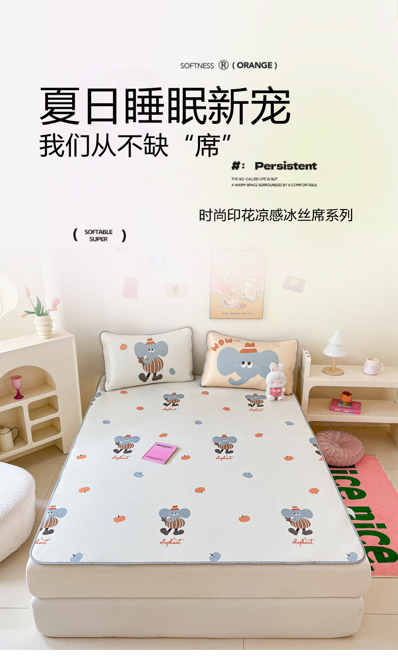寐居家纺 2024新款A类时尚印花凉感冰丝凉席 象小贝