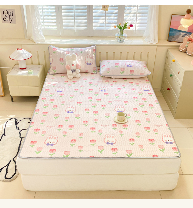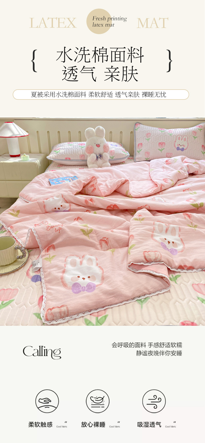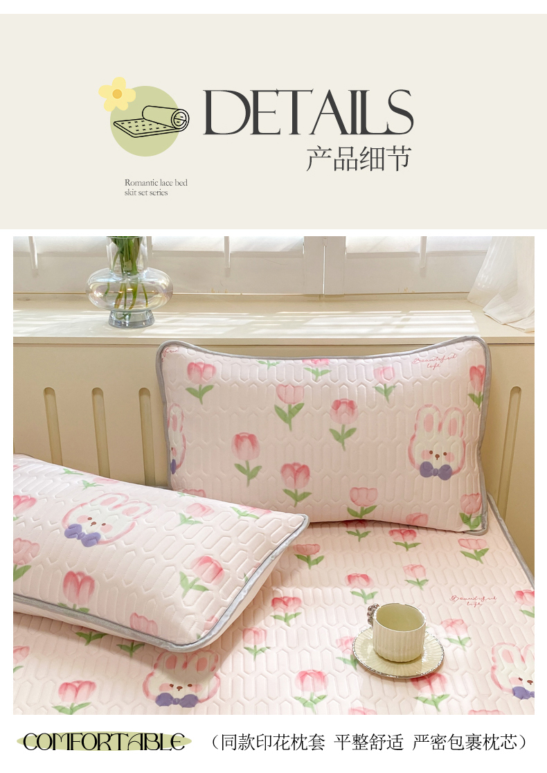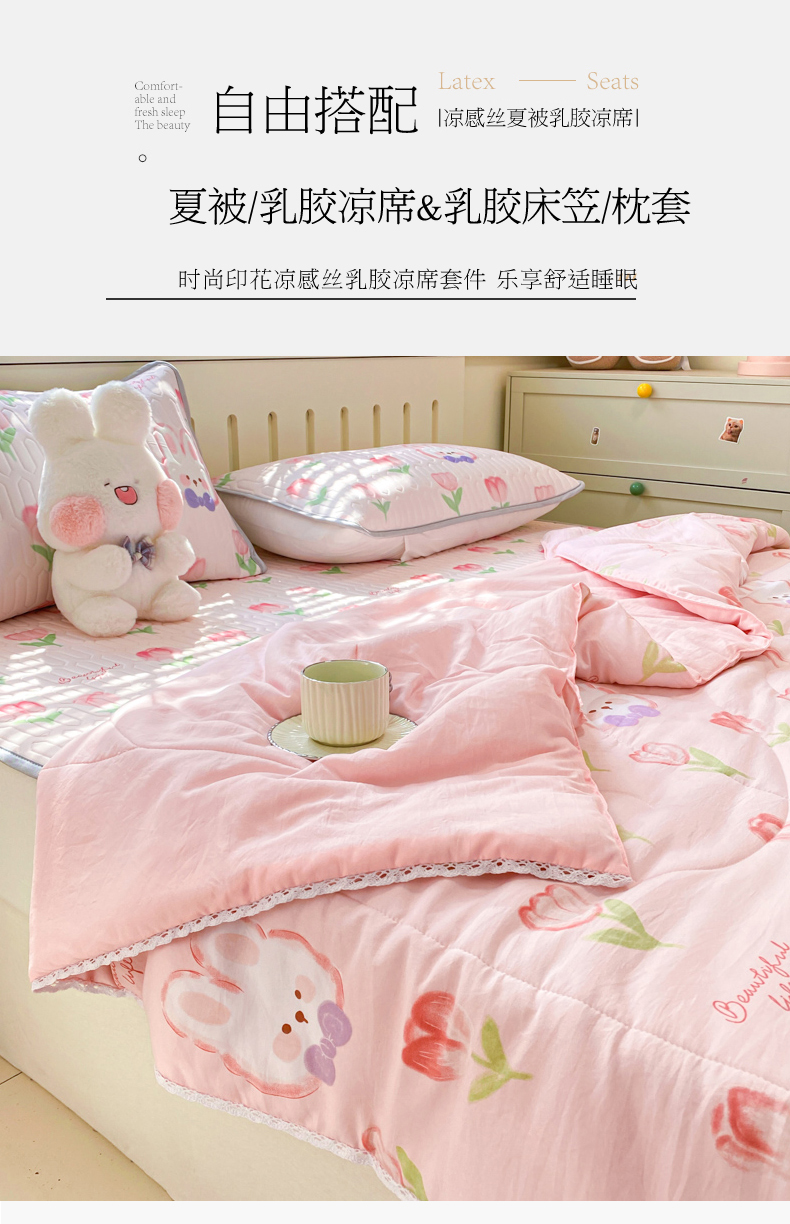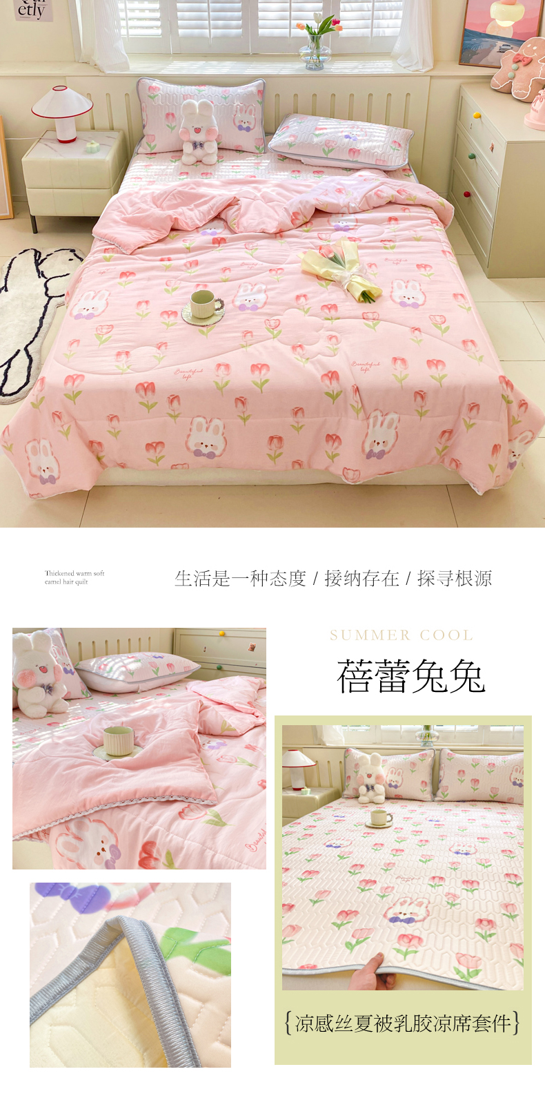 当前位置: 91家纺网 > 商品网购 > 床品套件 > 四件套 > 夏被四件套 > 寐居家纺 2024新款时尚印花凉感丝乳胶凉席小花边夏被四件套系列 蓓蕾兔兔