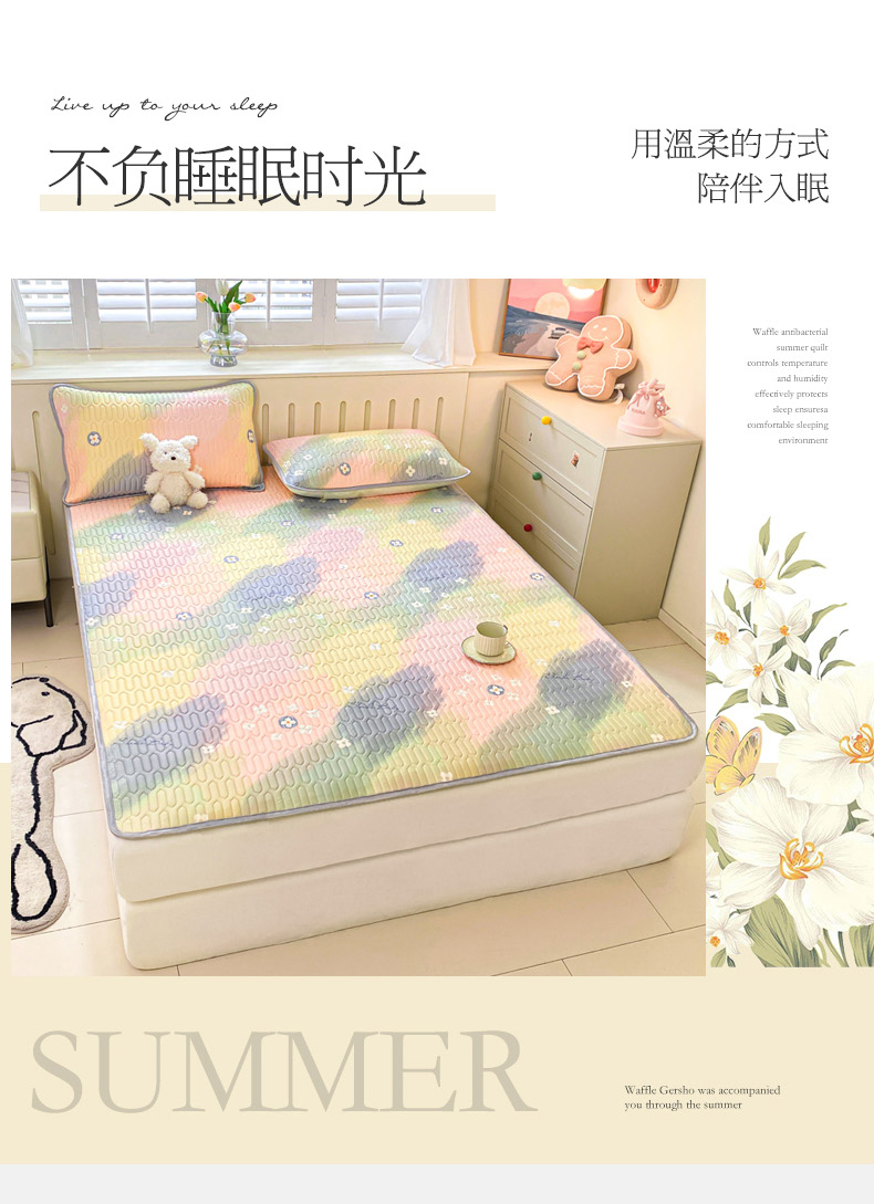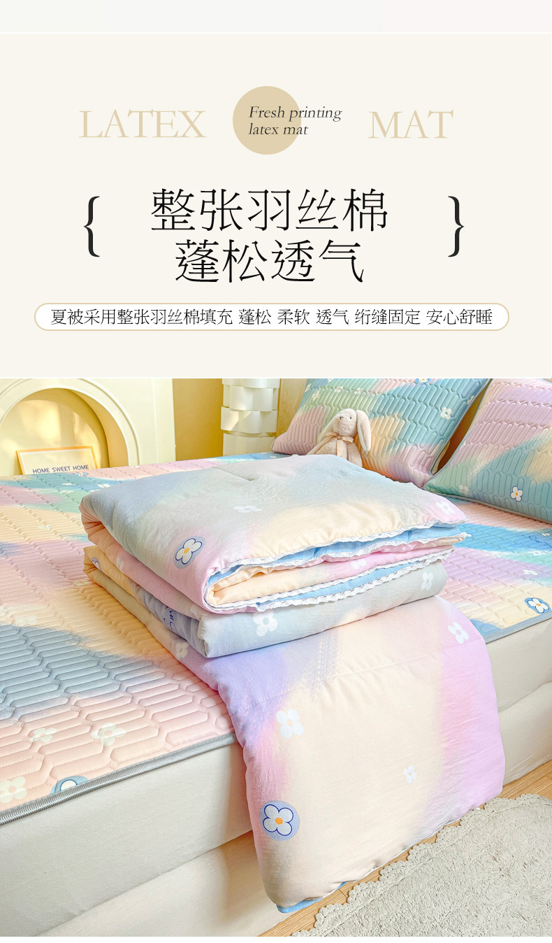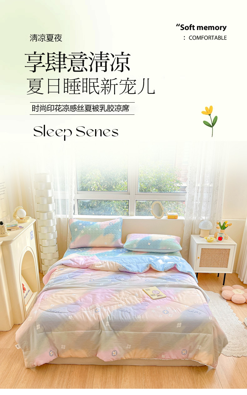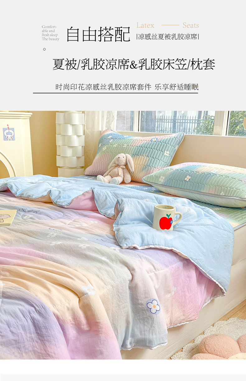 当前位置: 91家纺网 > 商品网购 > 床品套件 > 四件套 > 夏被四件套 > 寐居家纺 2024新款时尚印花凉感丝乳胶凉席小花边夏被四件套系列 五彩缤纷