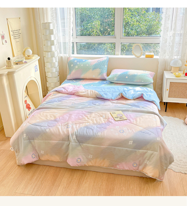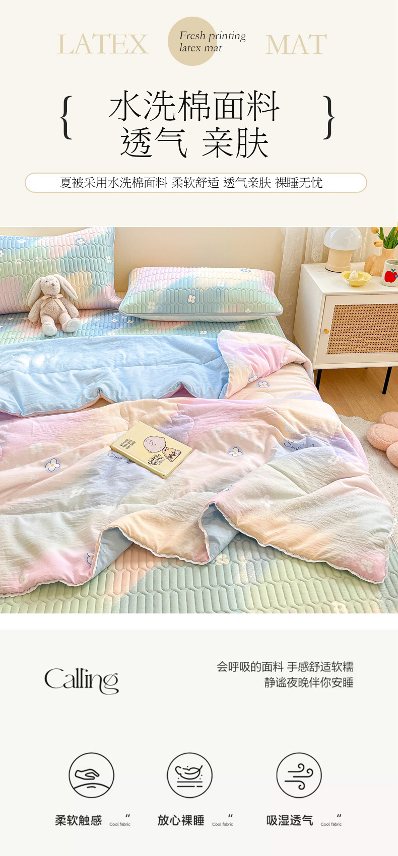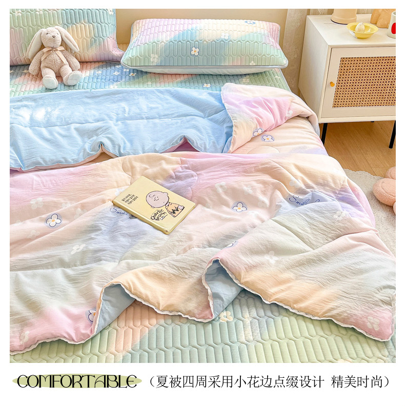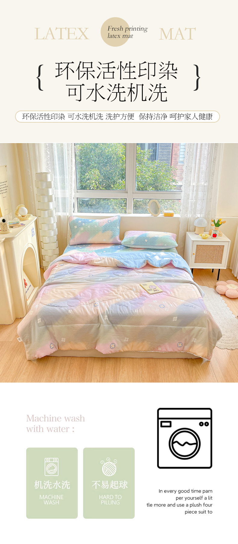当前位置: 91家纺网 > 商品网购 > 床品套件 > 四件套 > 夏被四件套 > 寐居家纺 2024新款时尚印花凉感丝乳胶凉席小花边夏被四件套系列 五彩缤纷