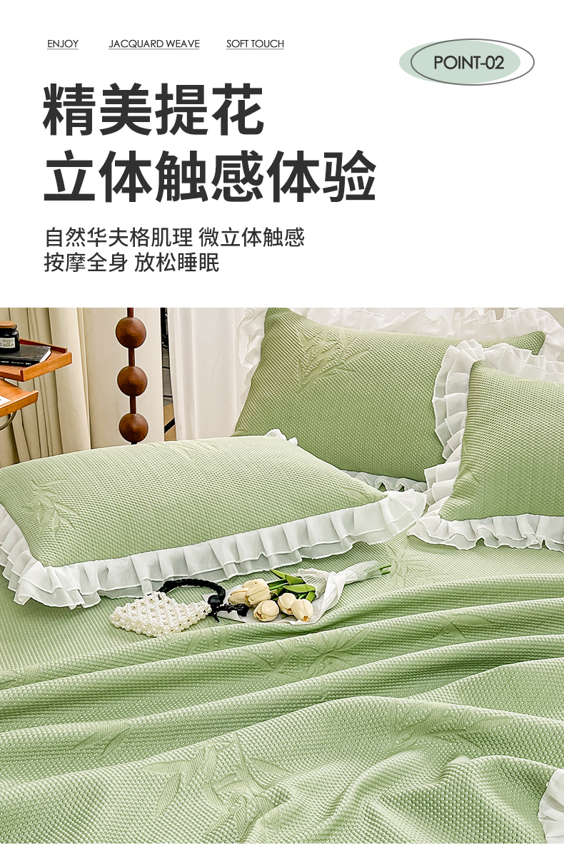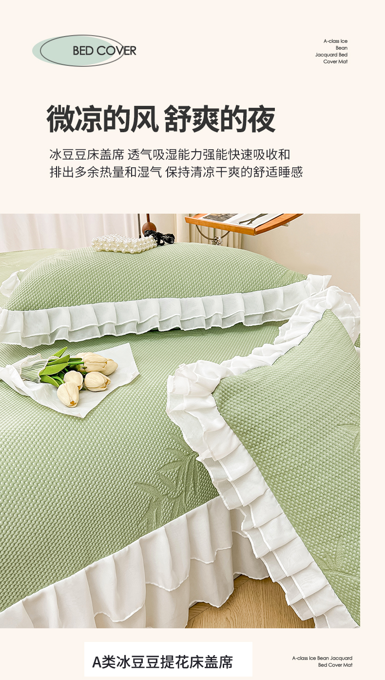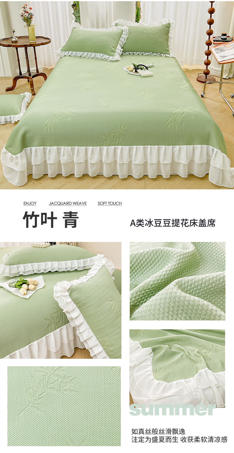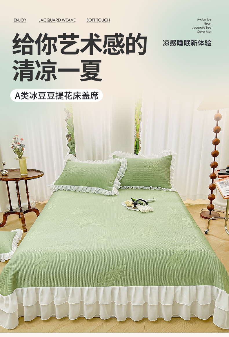 宜凡2024新款A类冰豆豆提花床盖凉席 竹叶 青