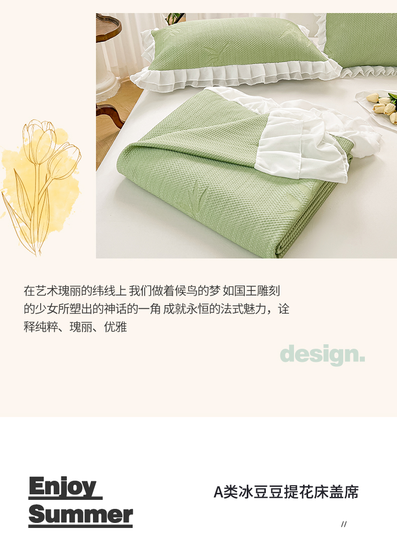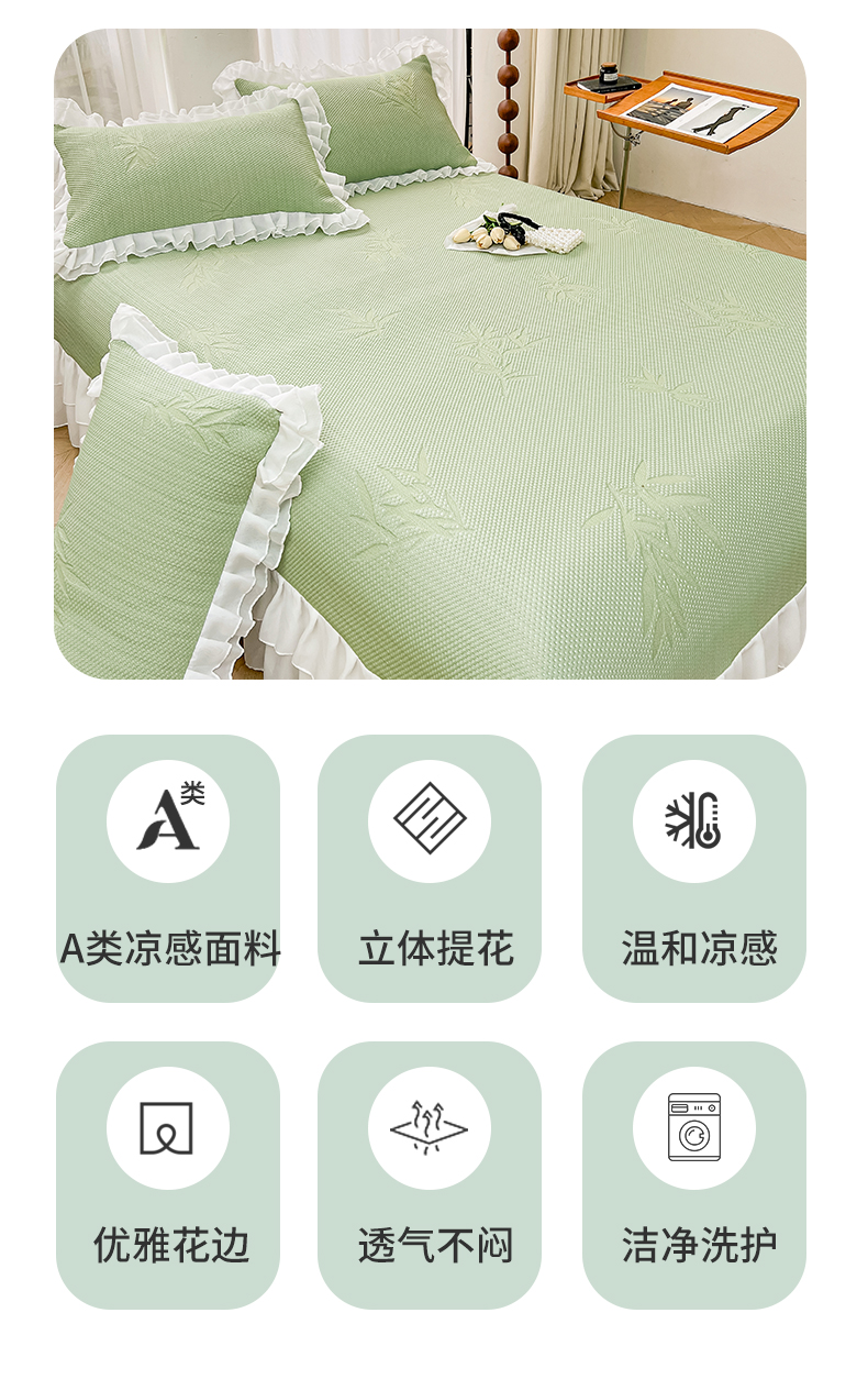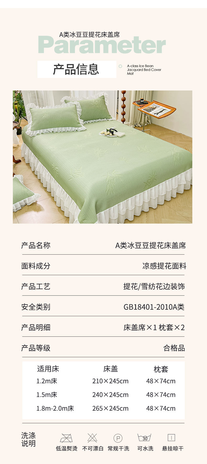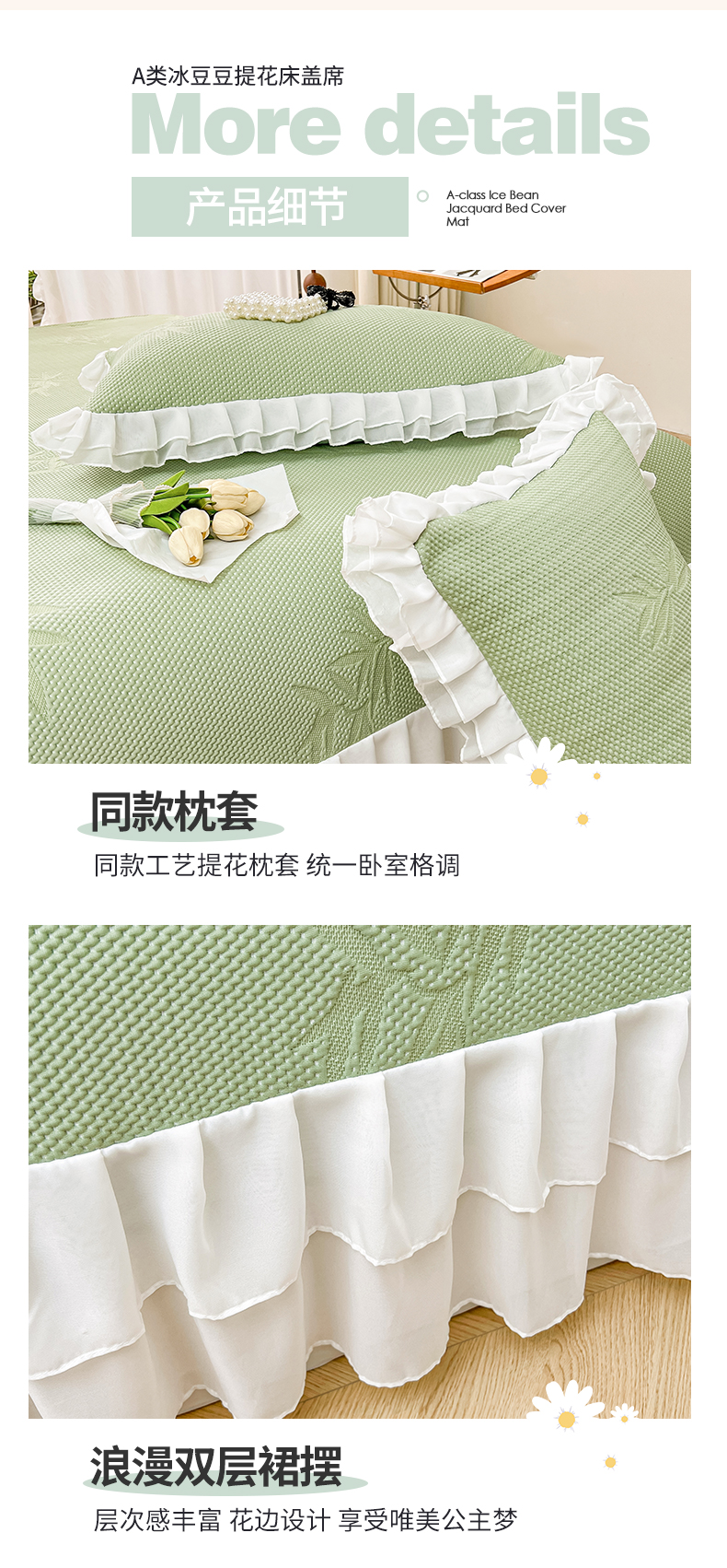 宜凡2024新款A类冰豆豆提花床盖凉席 竹叶 青