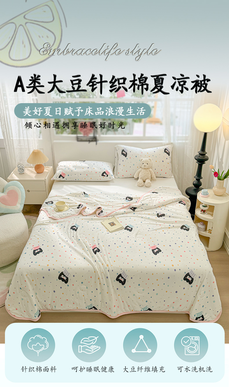 商品名称:葡萄家 2024新款A类母婴级大豆纤维牛奶丝针织棉夏凉被 奇趣豆豆