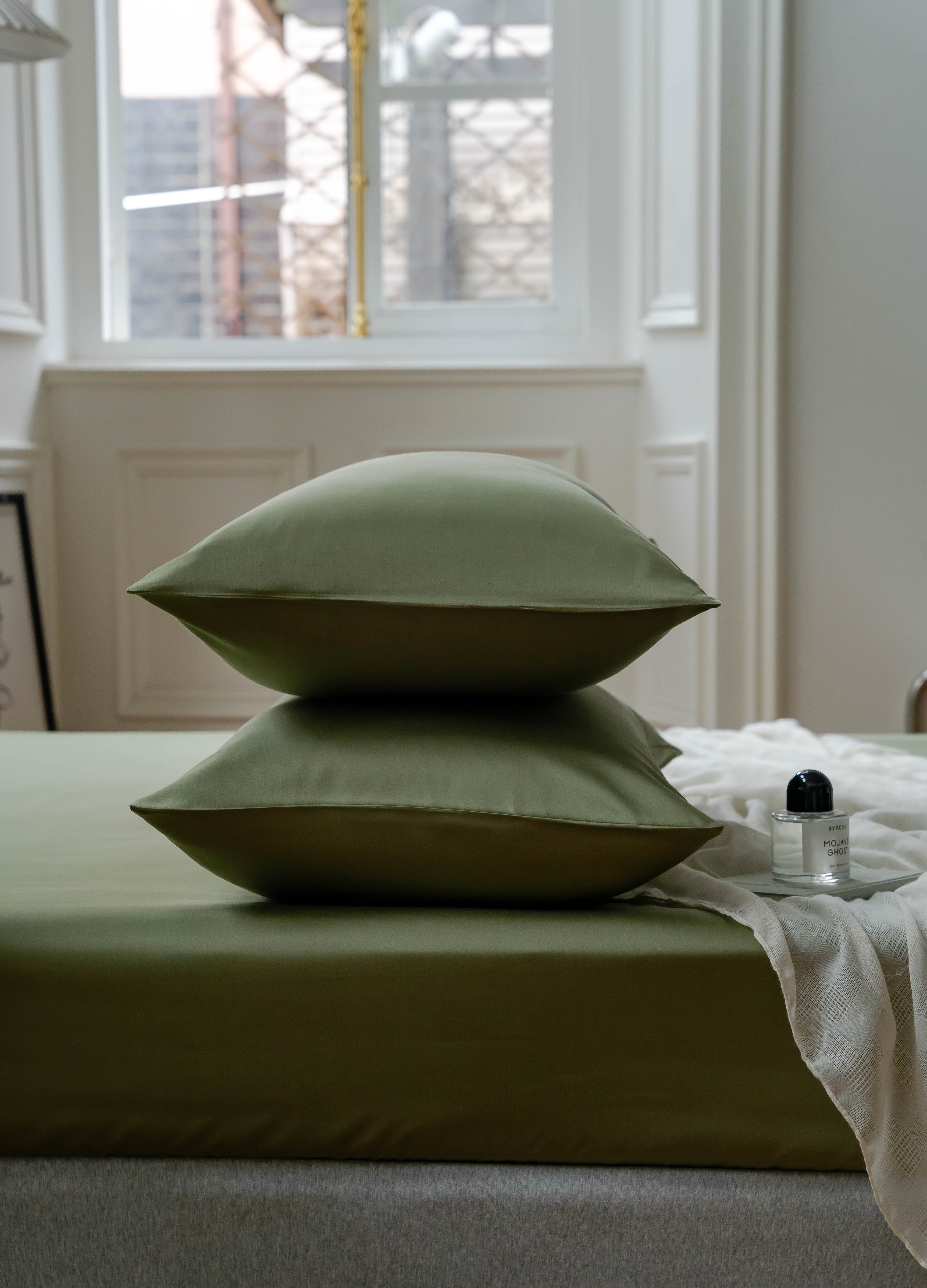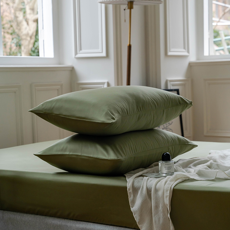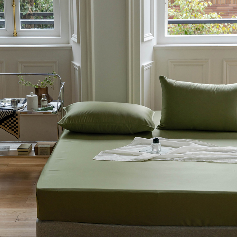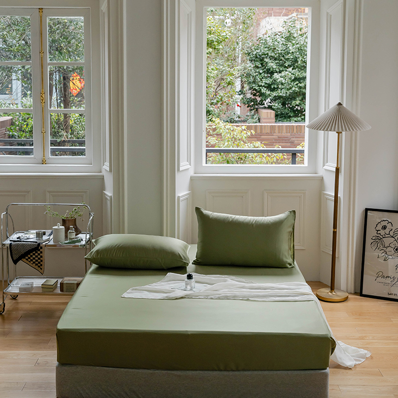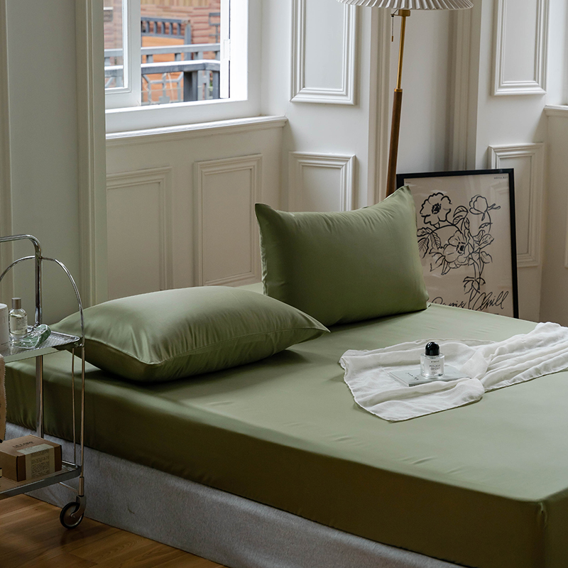 沐晴家纺 2024新款60兰精天丝纯色双拼单床笠 欧芹绿