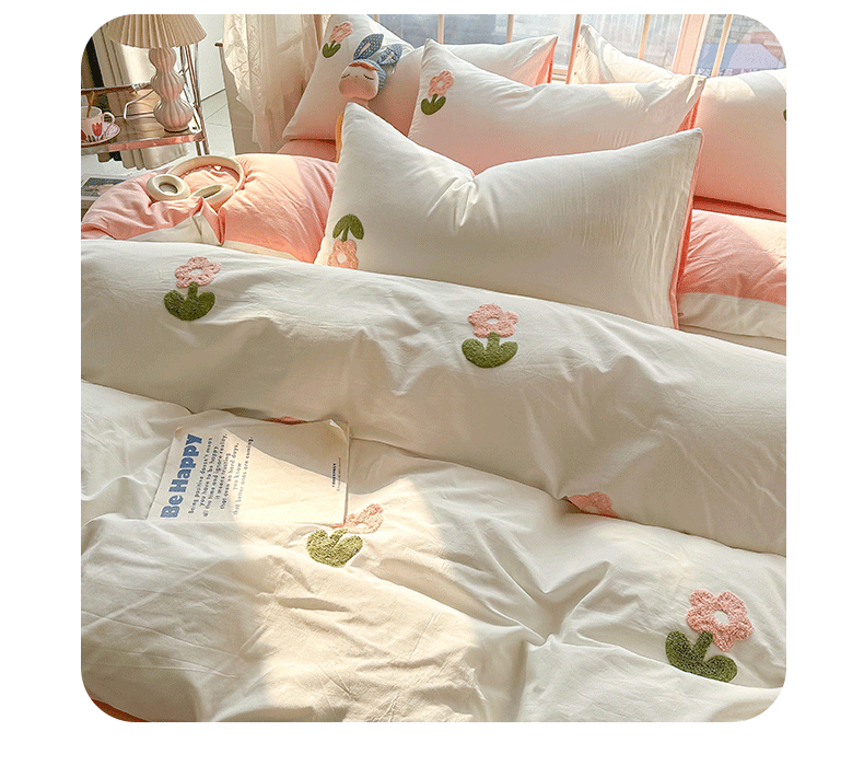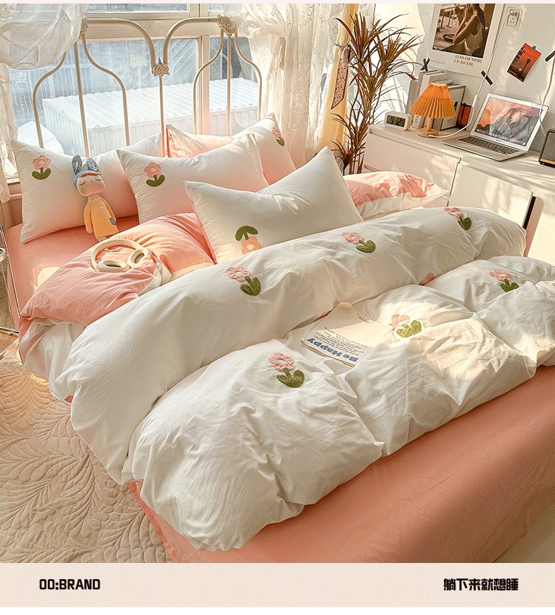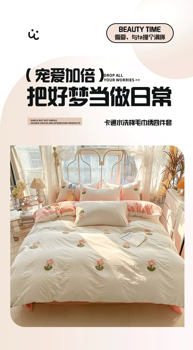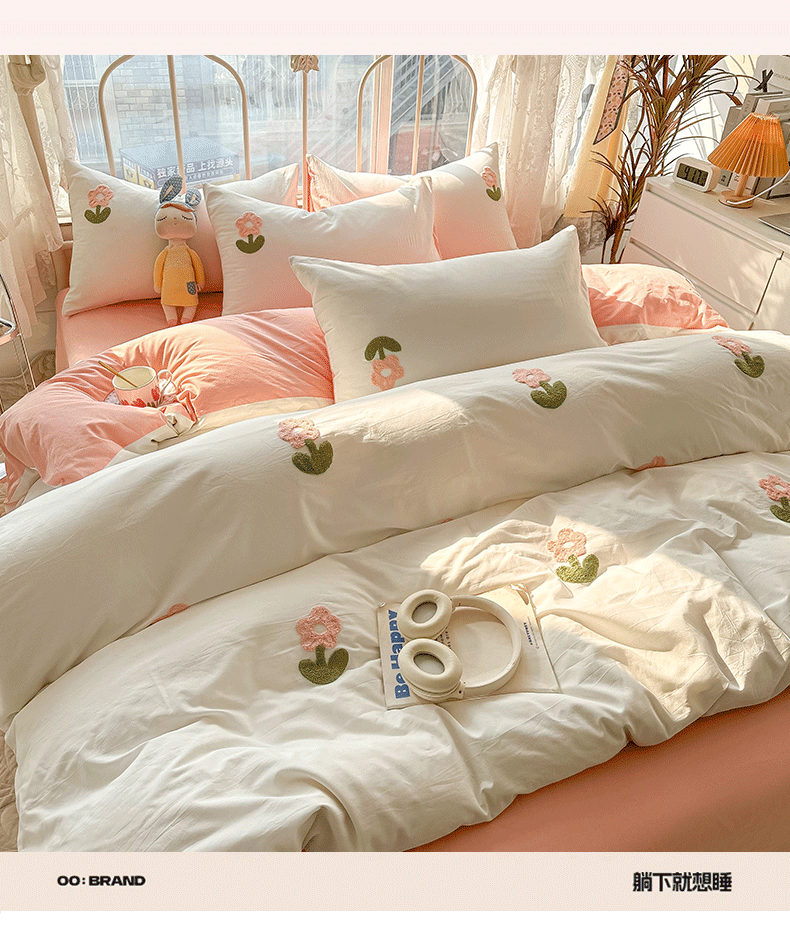 当前位置: 91家纺网 > 商品网购 > 床品套件 > 四件套 > 水洗棉四件套 > 眠帛家居 2024新款水洗棉奶油小清新毛巾绣四件套早春系列 朵朵奶油白