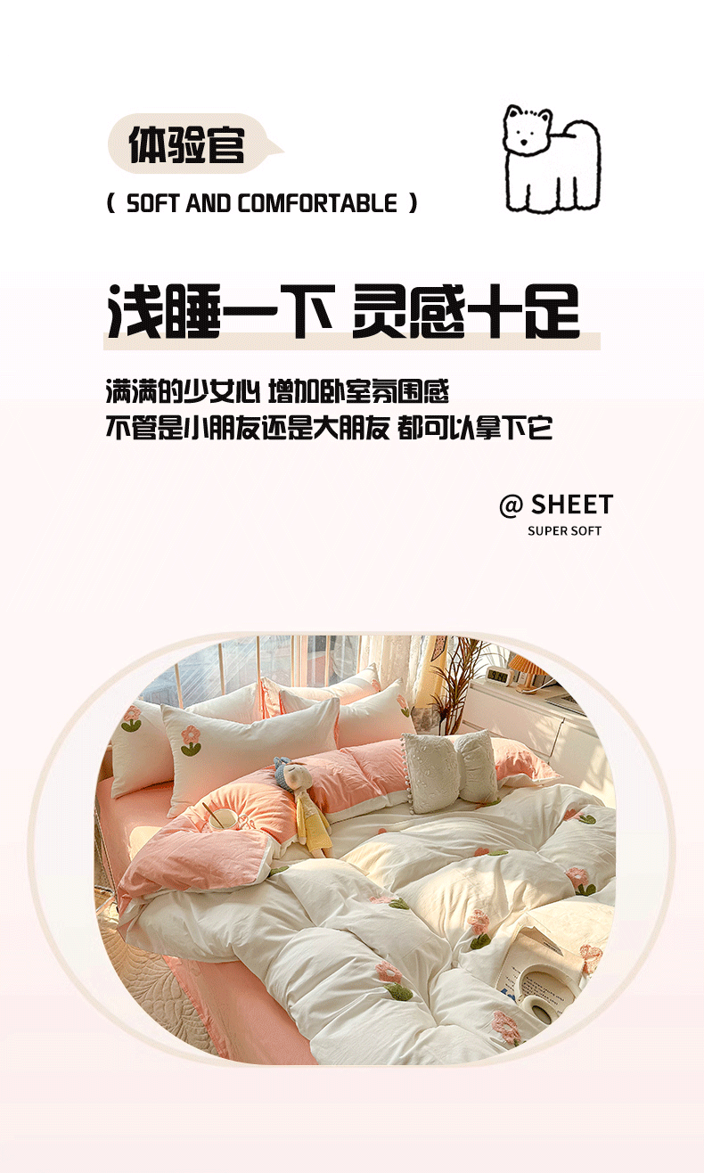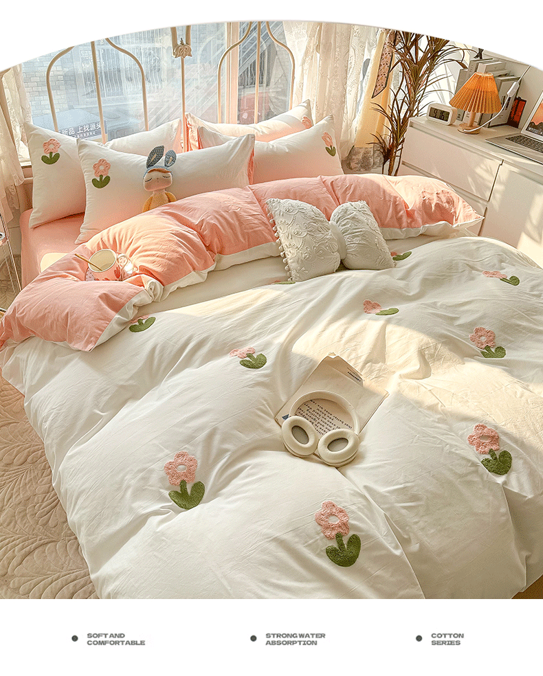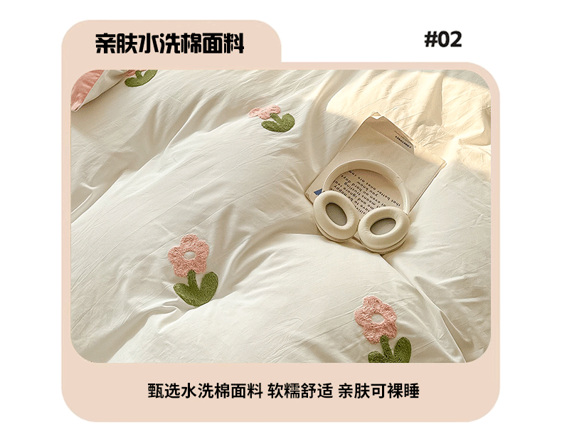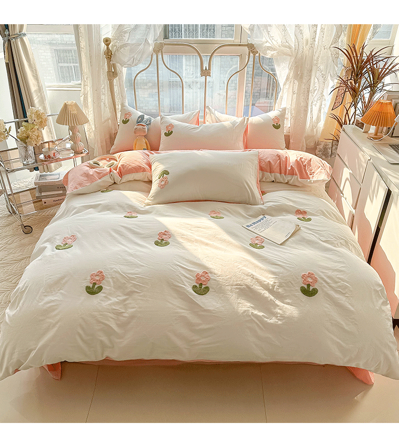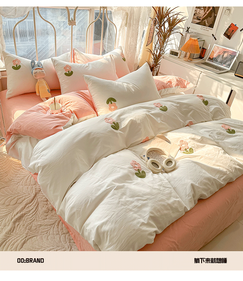 当前位置: 91家纺网 > 商品网购 > 床品套件 > 四件套 > 水洗棉四件套 > 眠帛家居 2024新款水洗棉奶油小清新毛巾绣四件套早春系列 朵朵奶油白