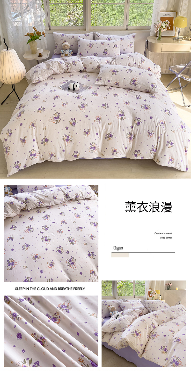 商品名称:乐萱家纺 2024新款水洗云朵棉被套小清新超柔印花单被套 薰衣浪漫