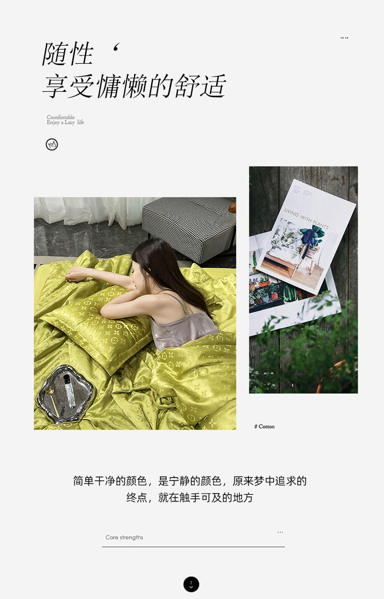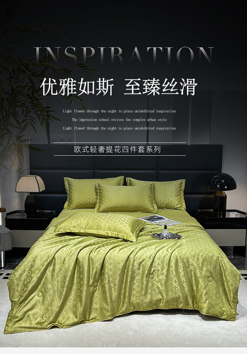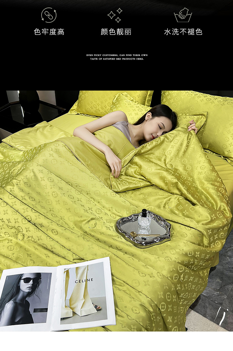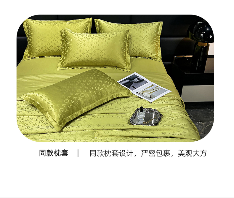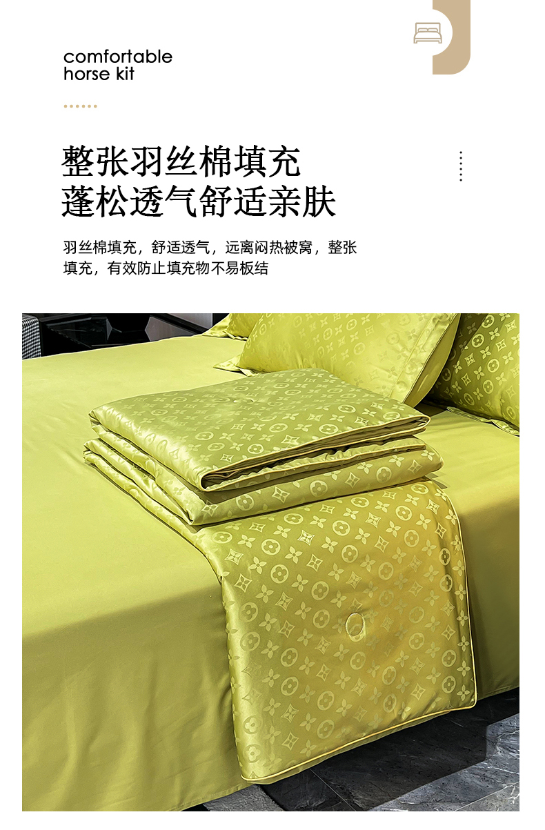 七夜居 2025新款夏凉被空调被贡缎提花水洗真丝夏被四件套 罗克-金黄