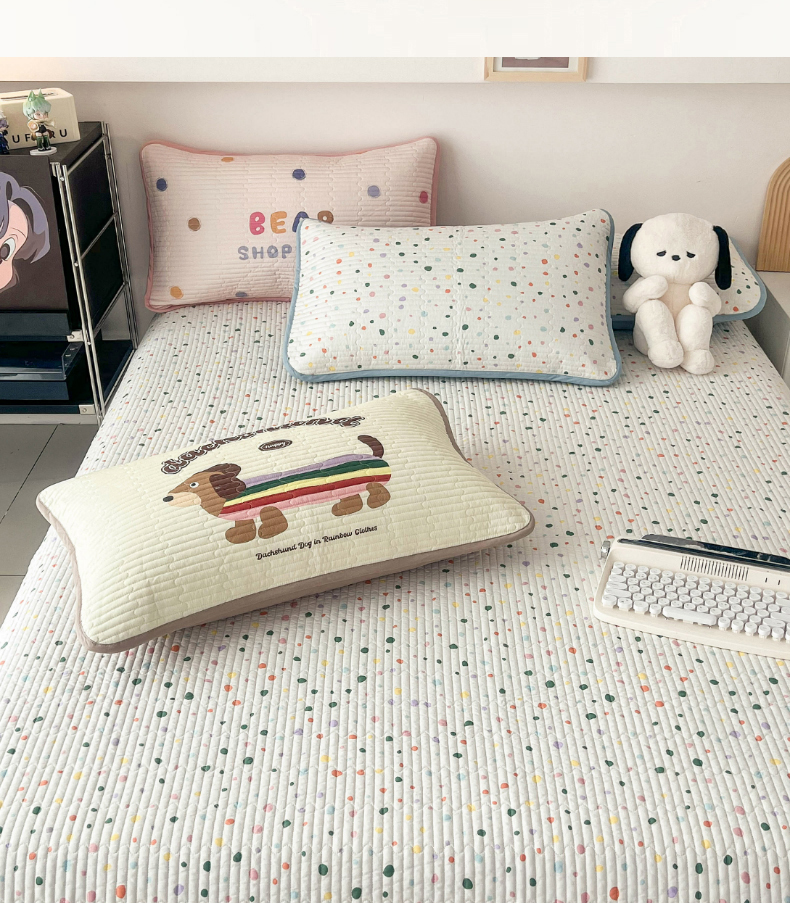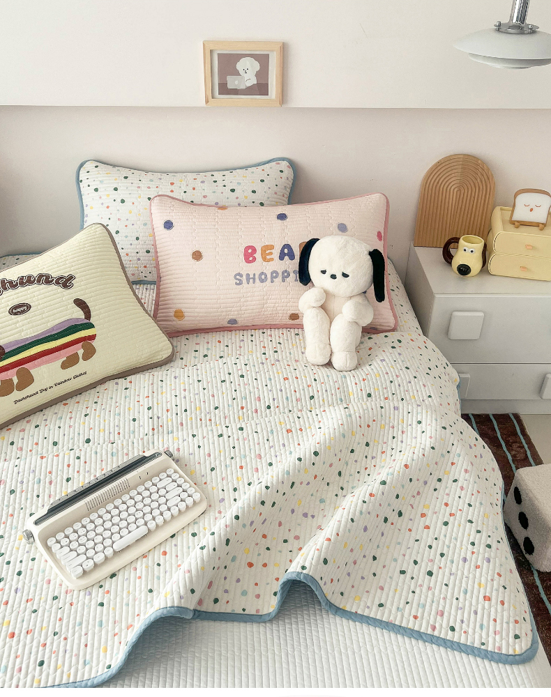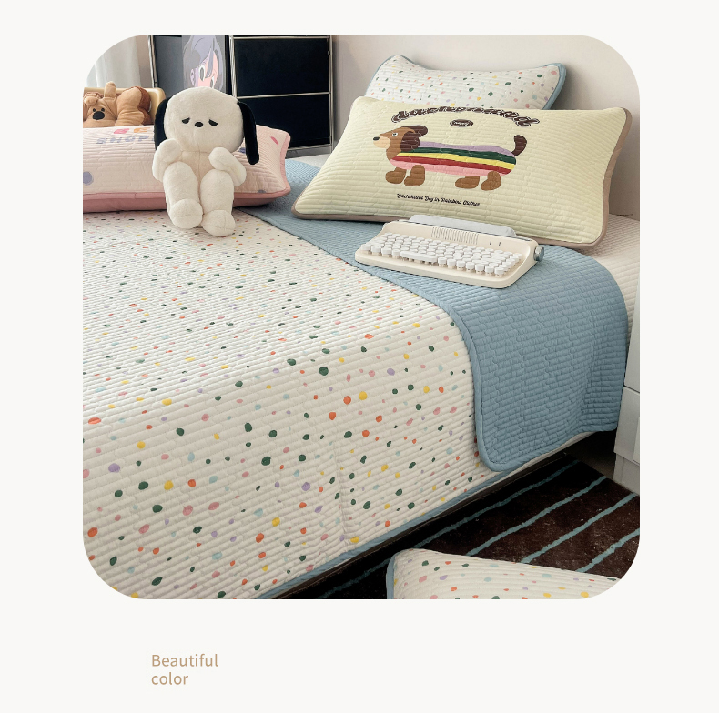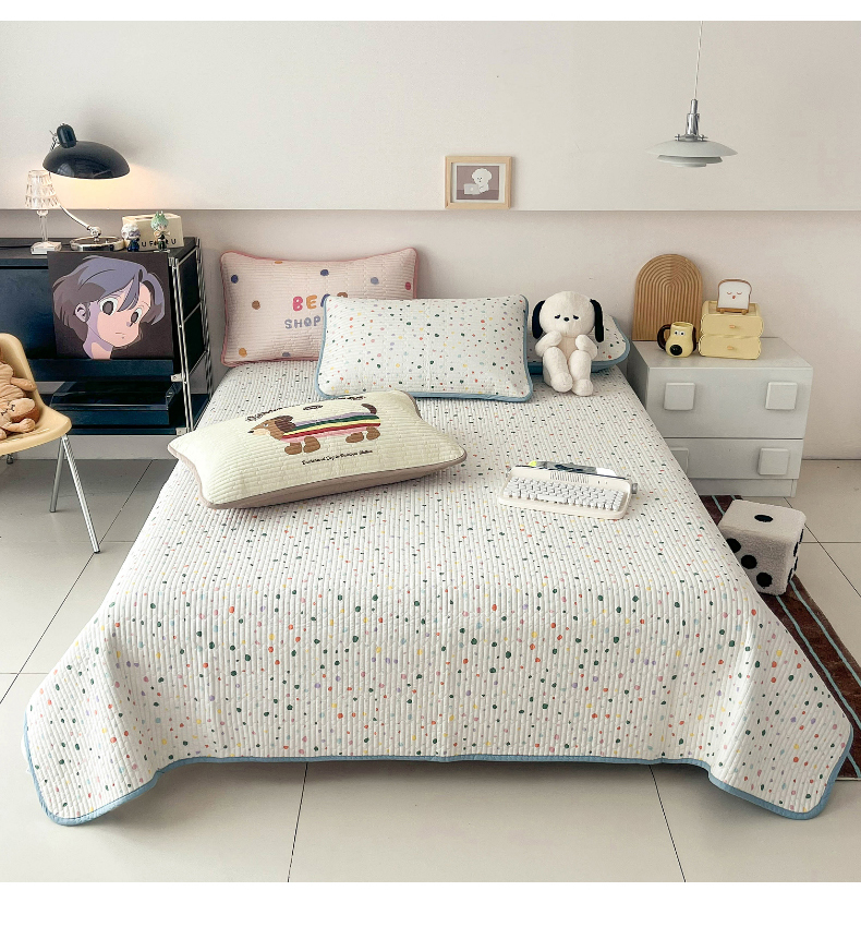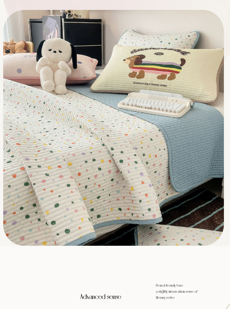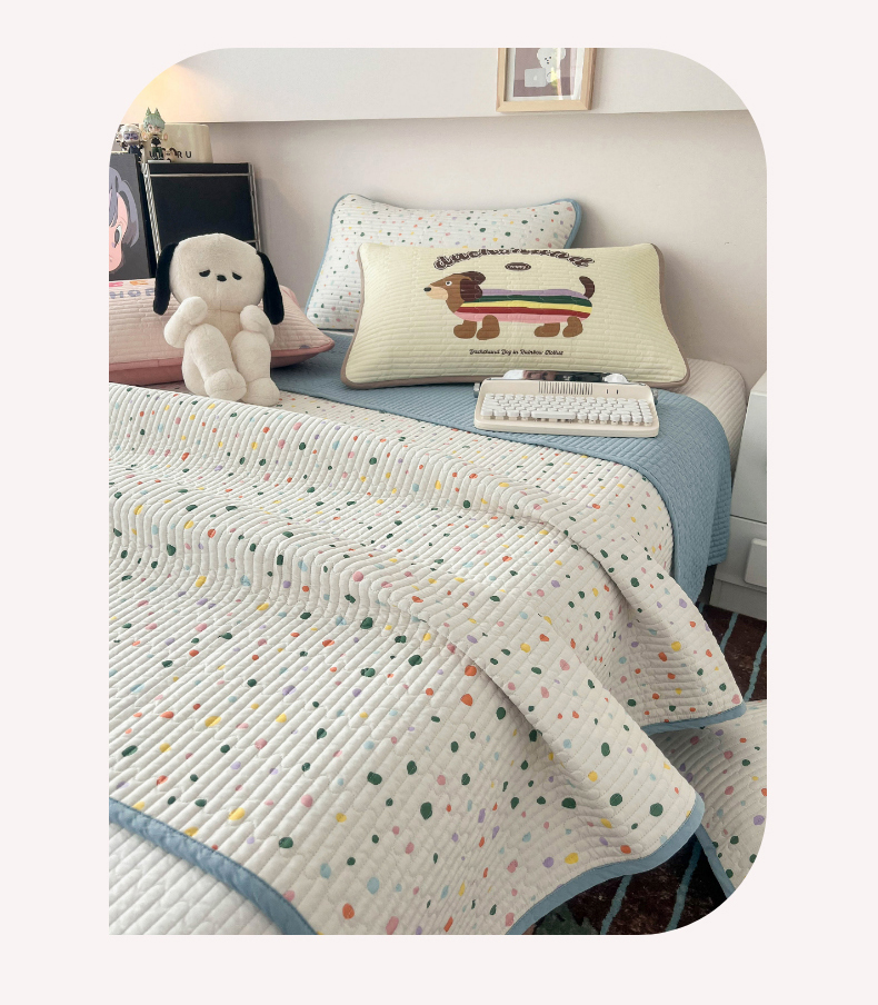 茉夕家纺 2024新款数码双面纯棉水洗床盖 彩色波点