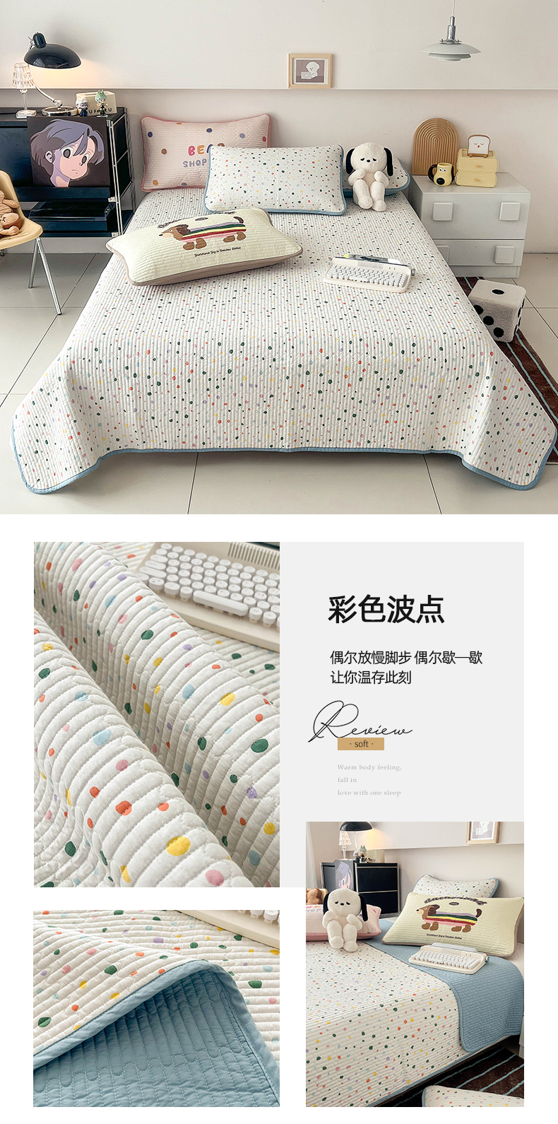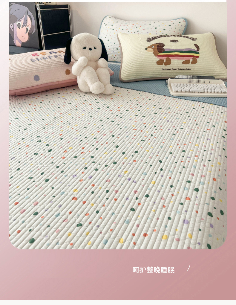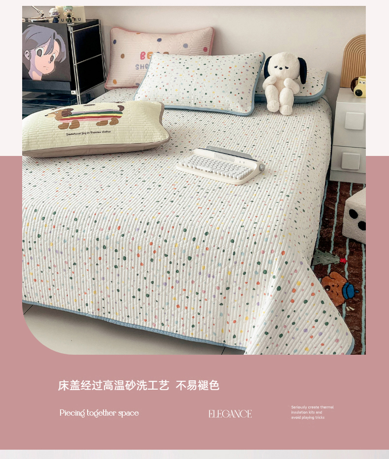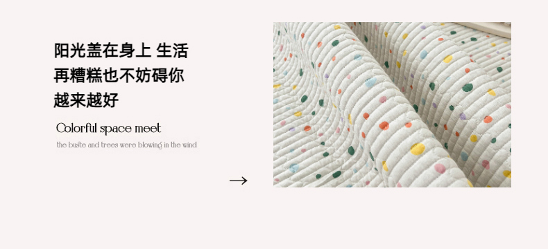 • 91家纺网 家纺一手货源 找家纺 茉夕家纺 2024新款数码双面纯棉水洗床盖 彩色波点