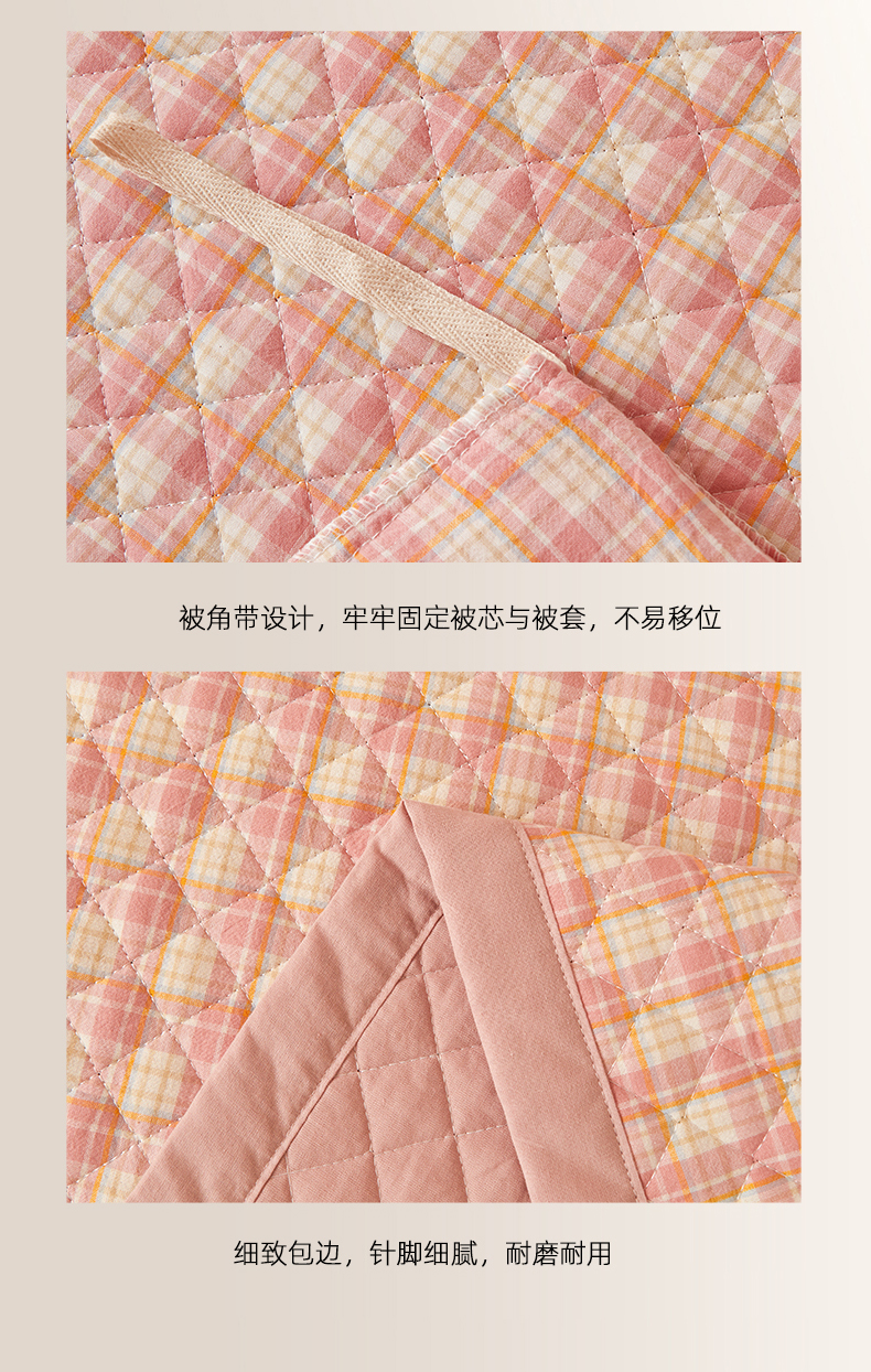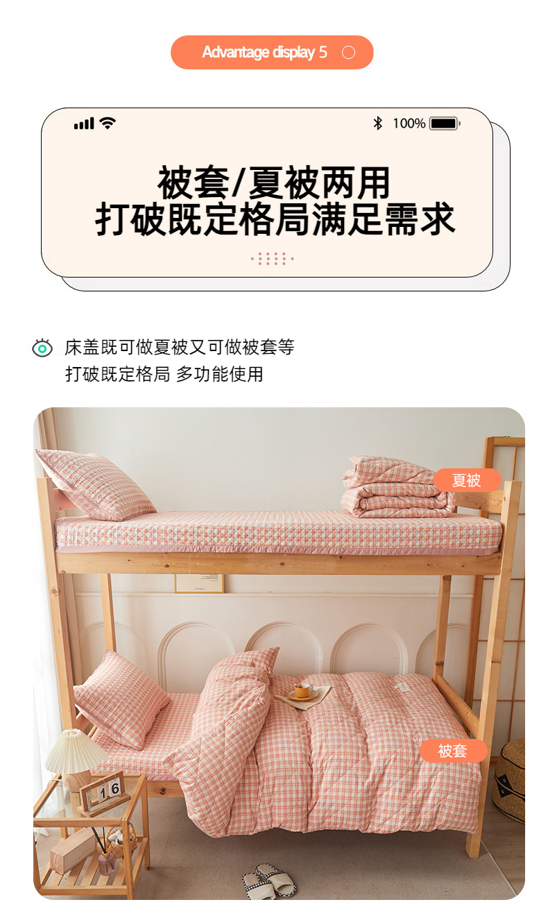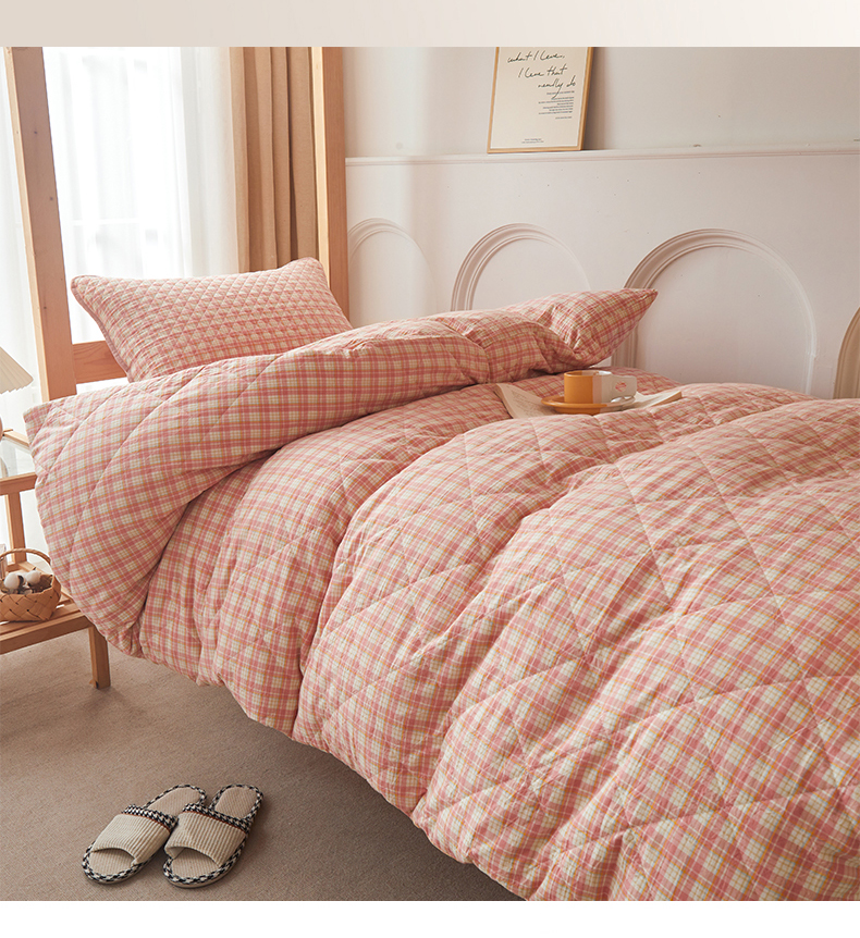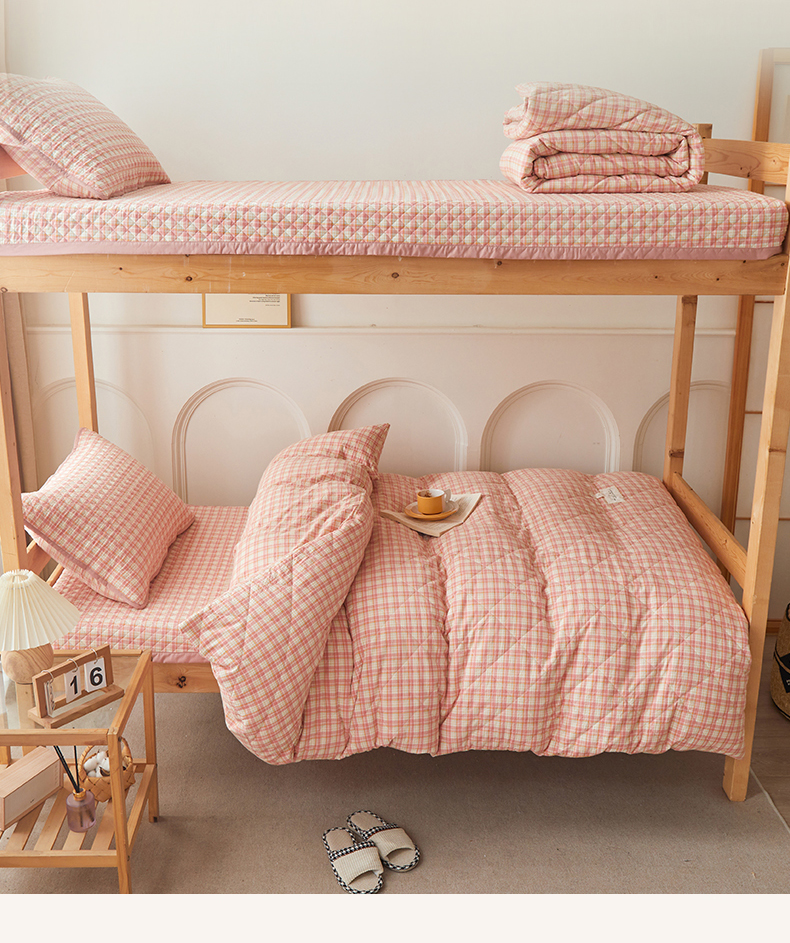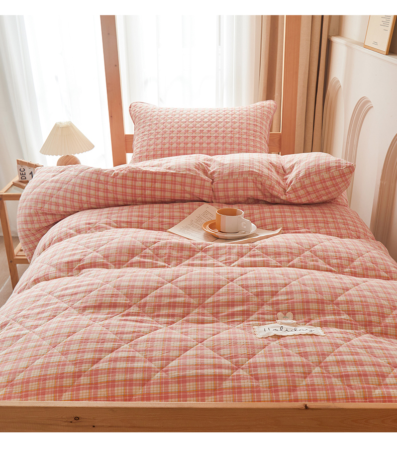 (总)上喜 2025新款学生款全棉水洗棉床盖款三件套,五件套,梵芙格,粉大格,灰粉格,兰大格,绿大格