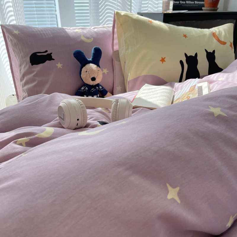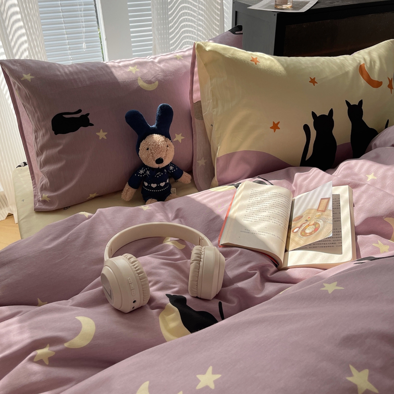 商品名称:桃喜 2024新款Ins风全棉混搭系列四件套 月亮猫