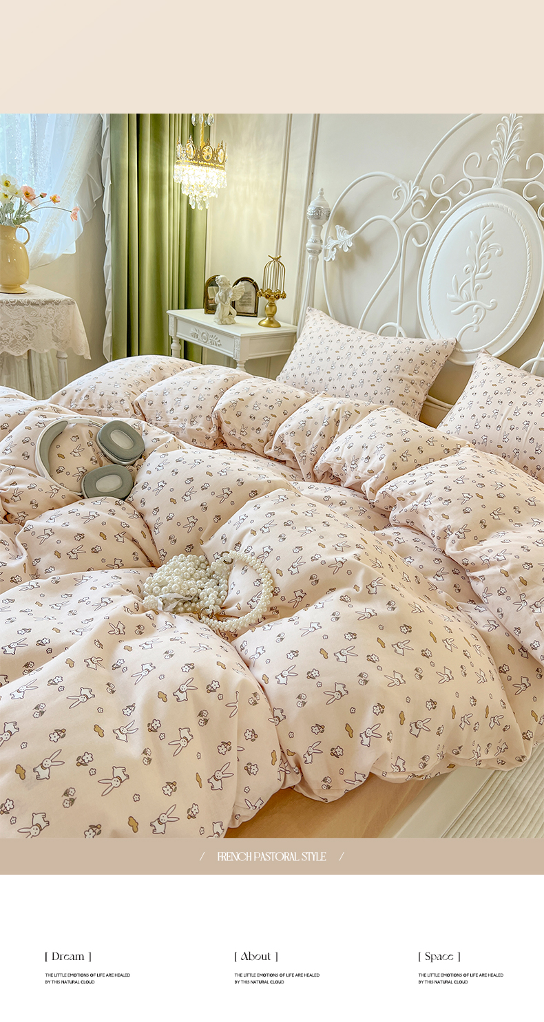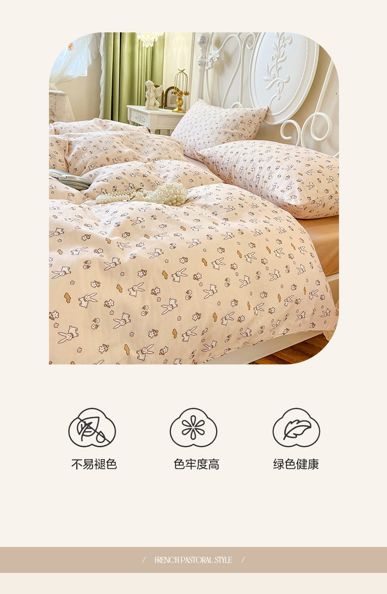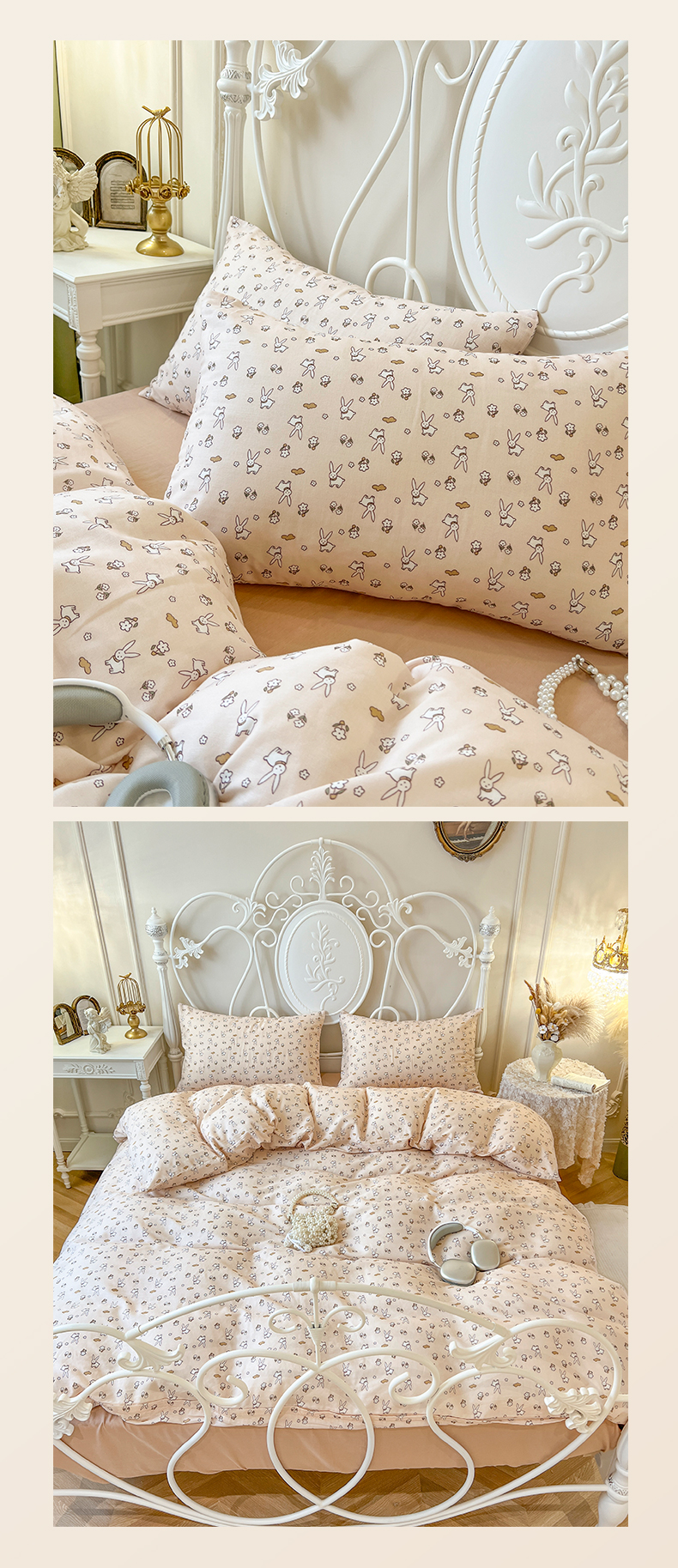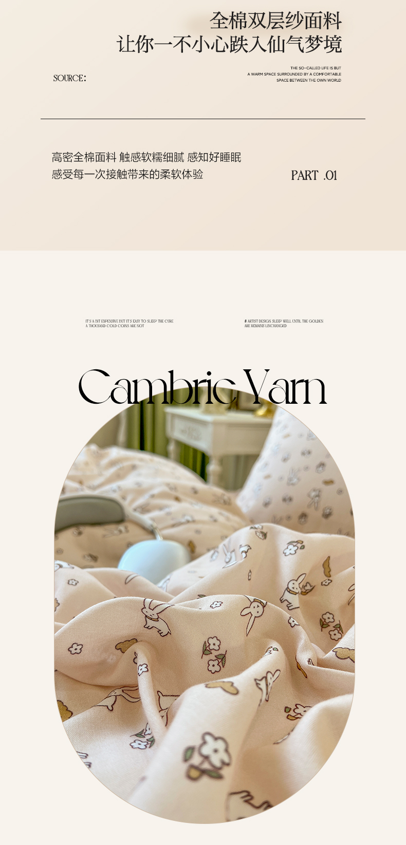 当前位置: 91家纺网 > 商品网购 > 床品套件 > 四件套 > 双层纱四件套 > 麒豆豆 2024款全棉双层纱四件套花朵兔-玉