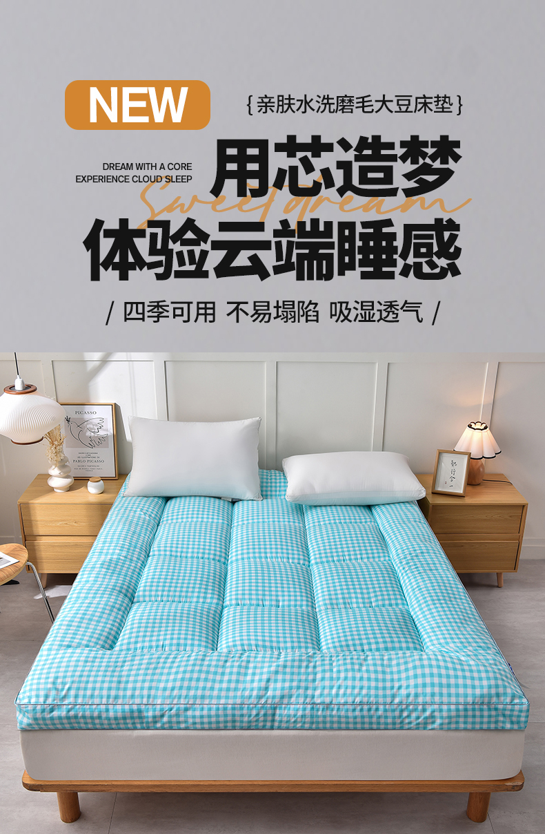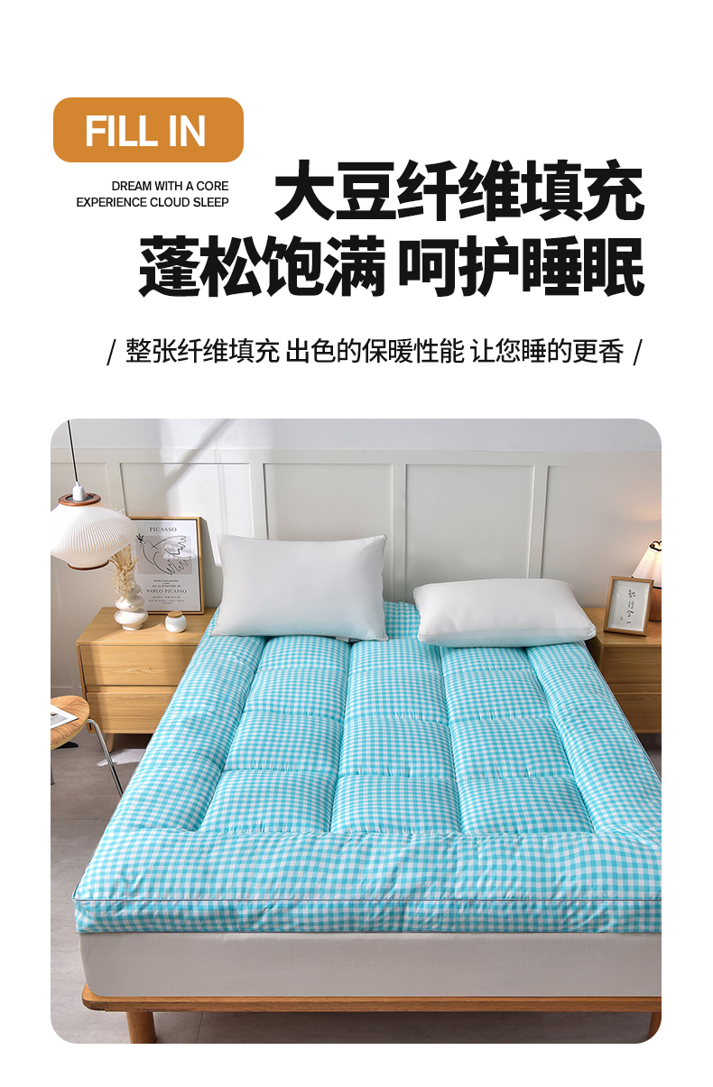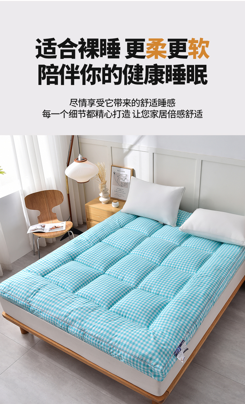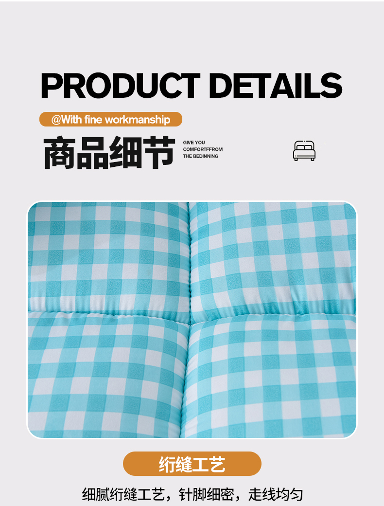 当前位置: 91家纺网 > 商品网购 > 床垫/床褥 > 普通床垫 > 易展家居 2024新款加厚立体大豆羽丝绒酒店学生床垫 青色小格