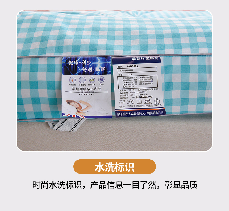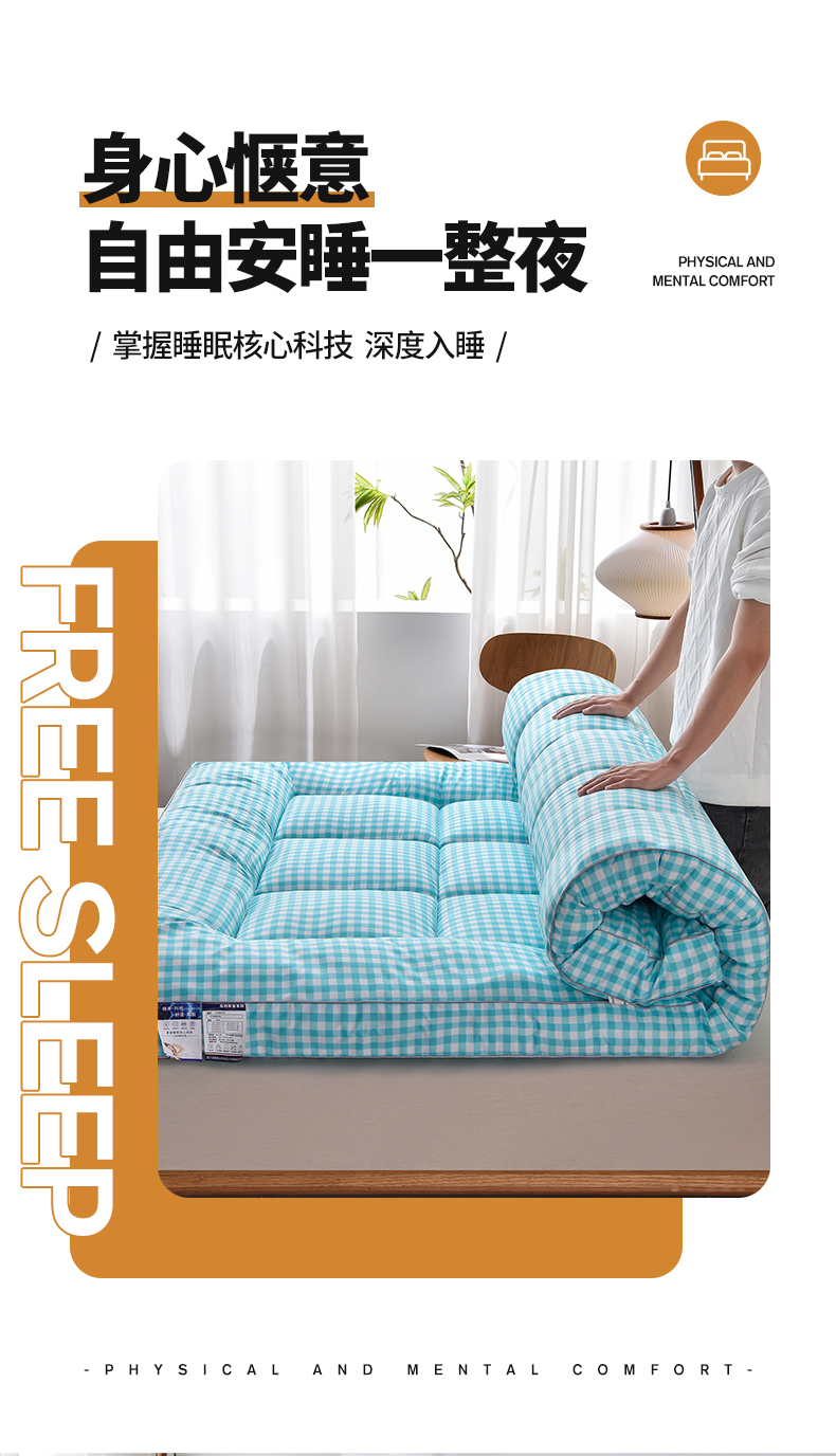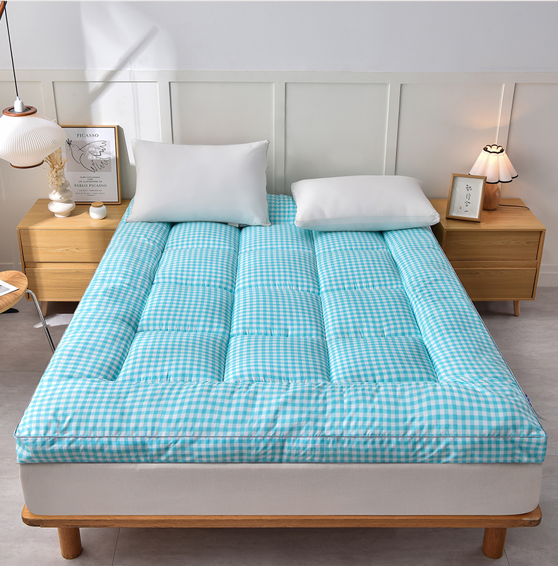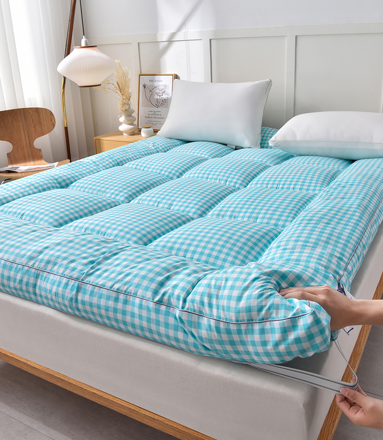 当前位置: 91家纺网 > 商品网购 > 床垫/床褥 > 普通床垫 > 易展家居 2024新款加厚立体大豆羽丝绒酒店学生床垫 青色小格