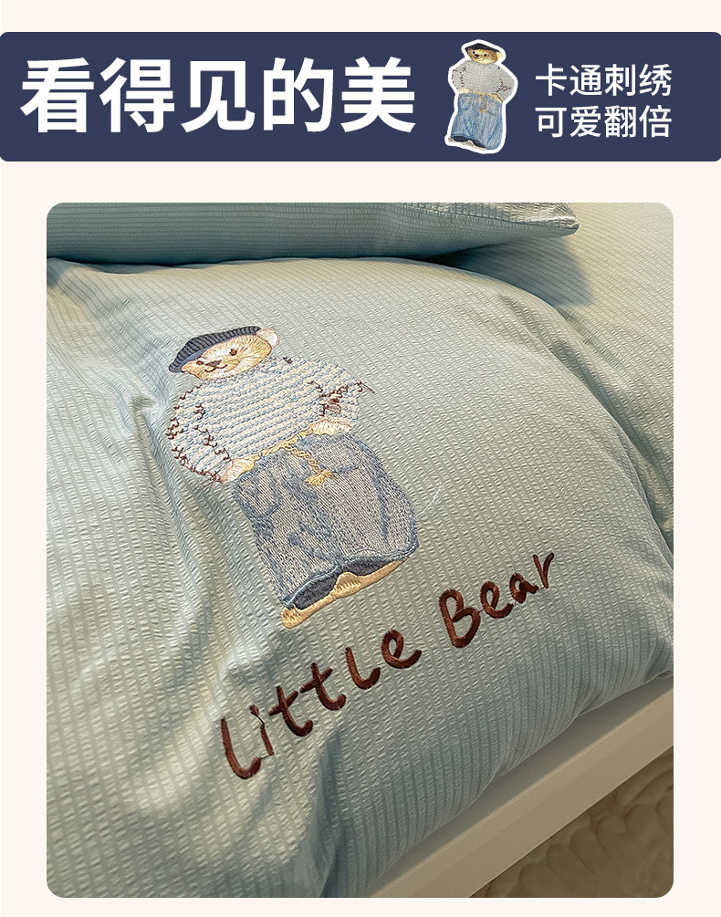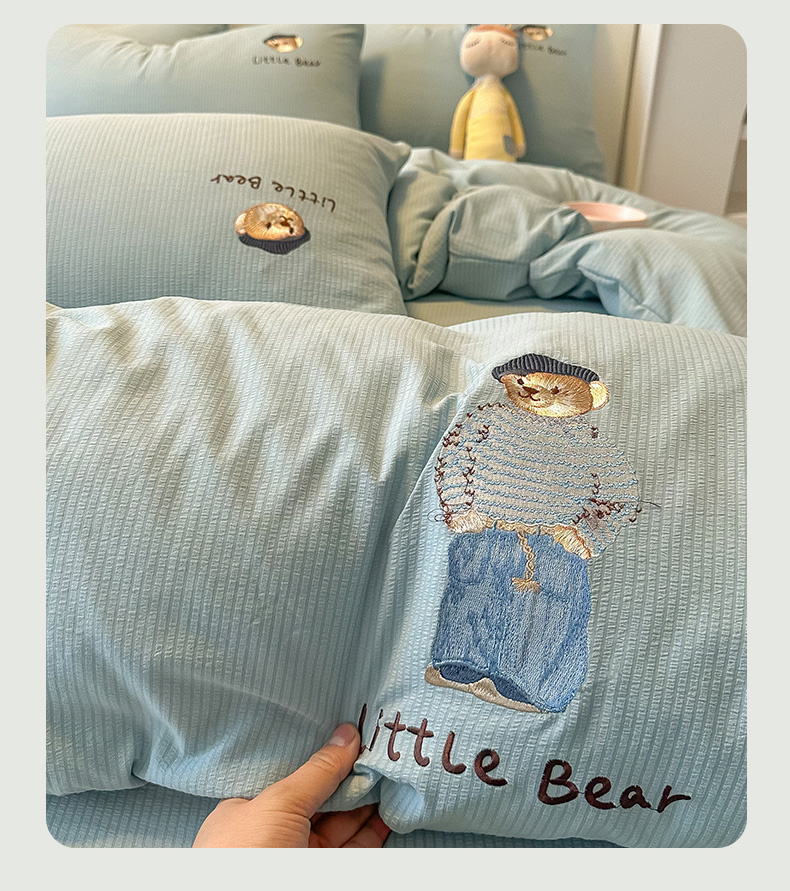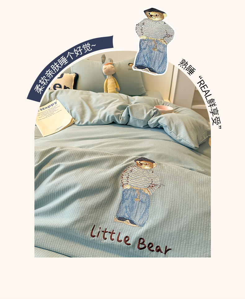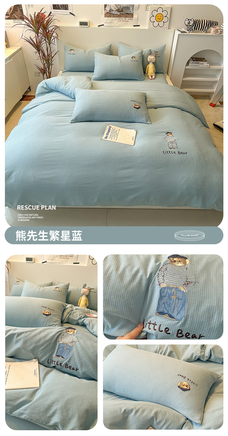 当前位置: 91家纺网 > 商品网购 > 床品套件 > 四件套 > 水洗棉四件套 > 眠帛家居 2024新款水洗棉提花刺绣四件套-熊先生 熊先生-繁星蓝