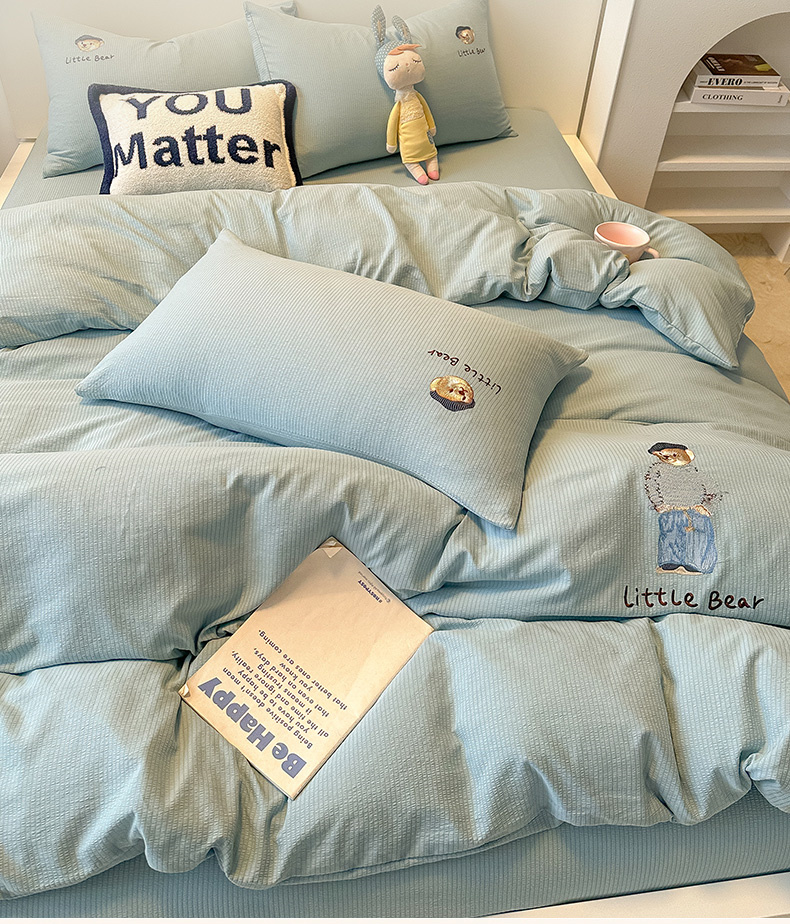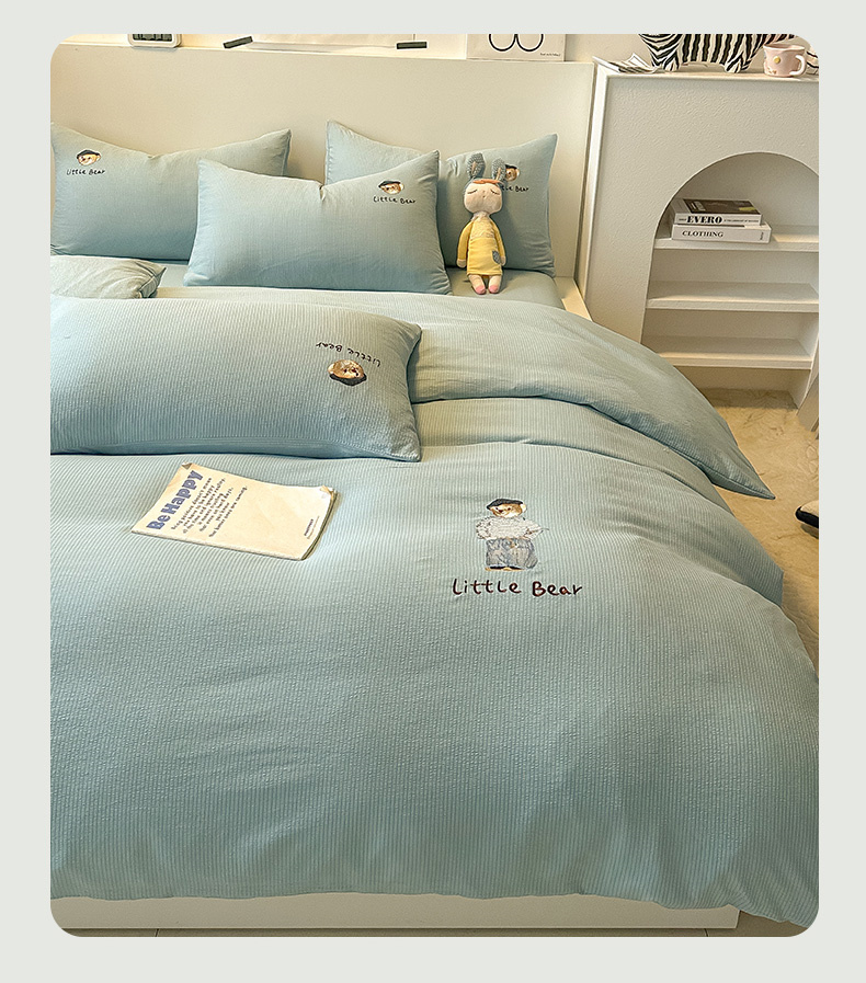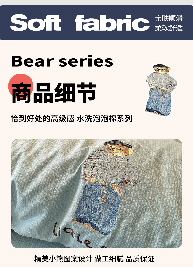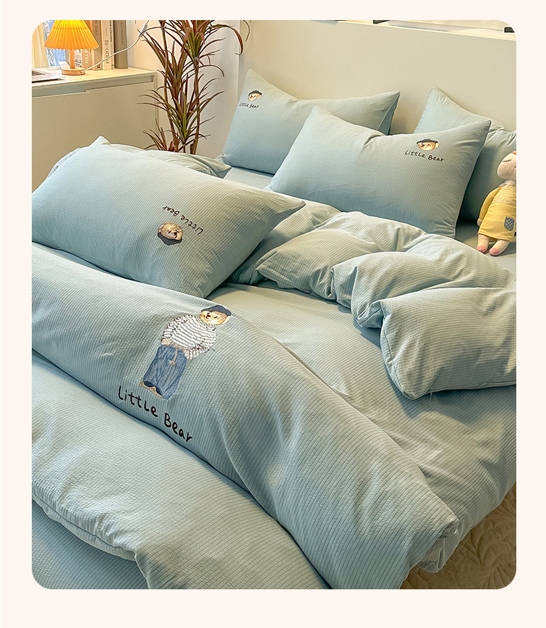 当前位置: 91家纺网 > 商品网购 > 床品套件 > 四件套 > 水洗棉四件套 > 眠帛家居 2024新款水洗棉提花刺绣四件套-熊先生 熊先生-繁星蓝