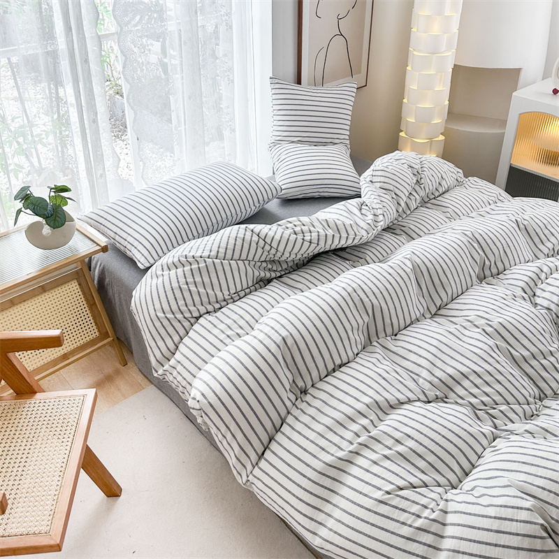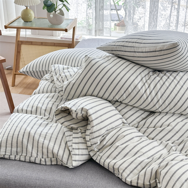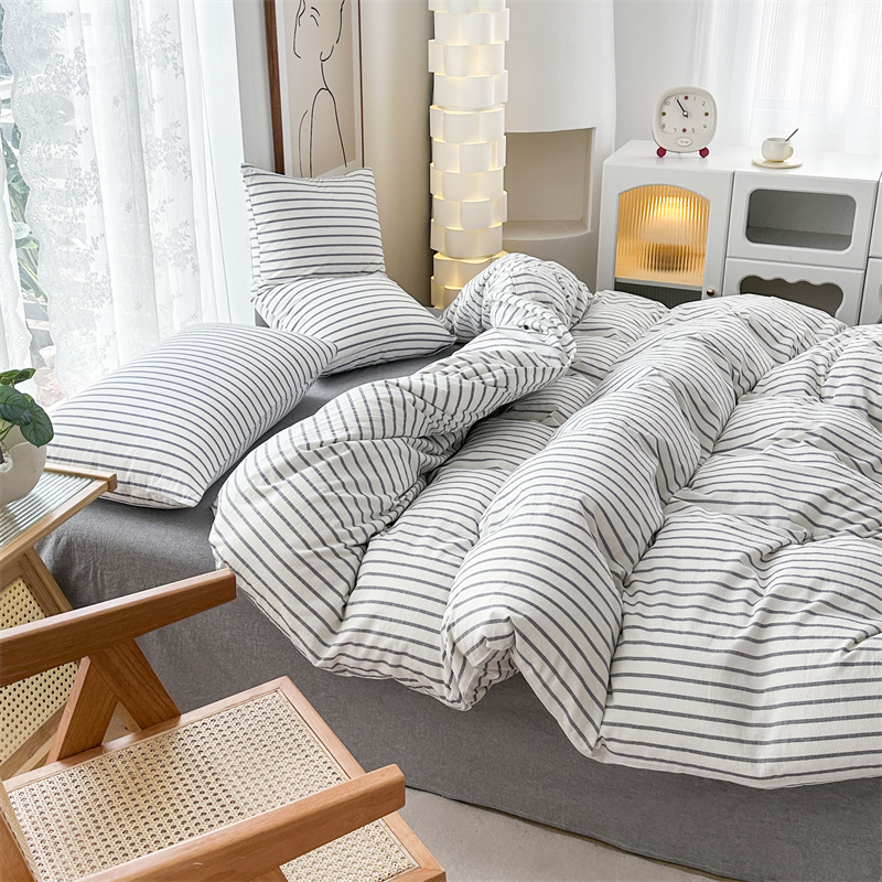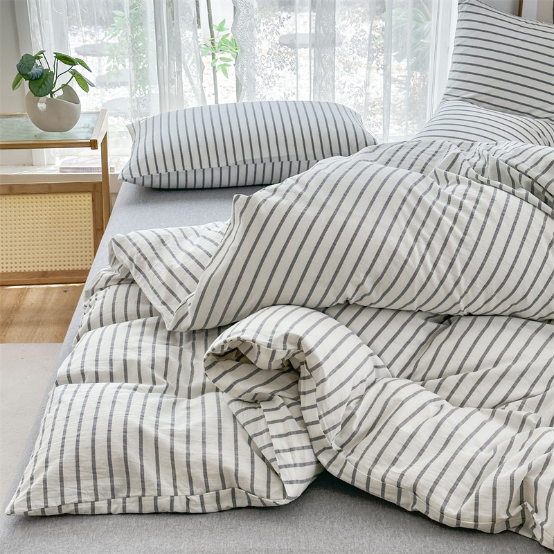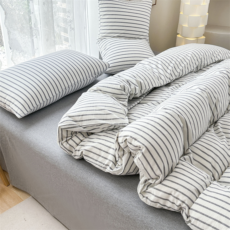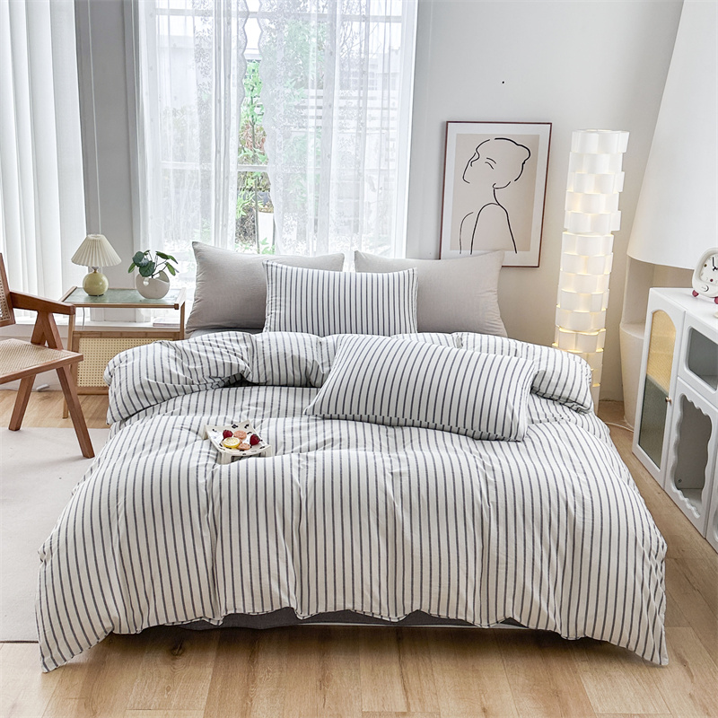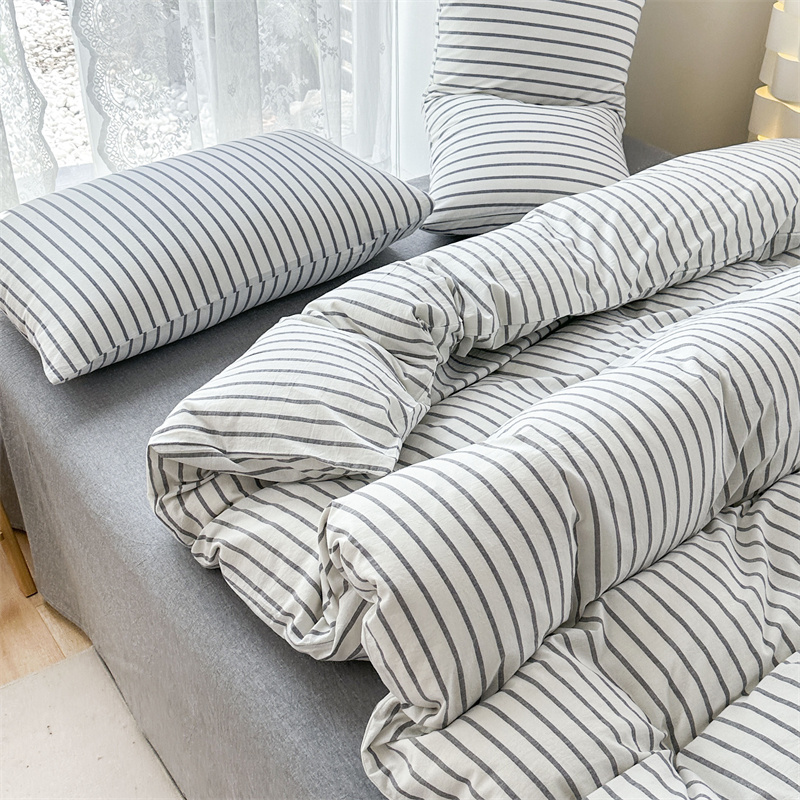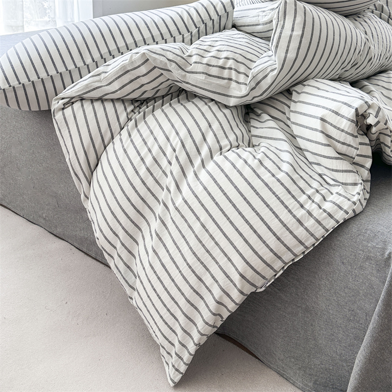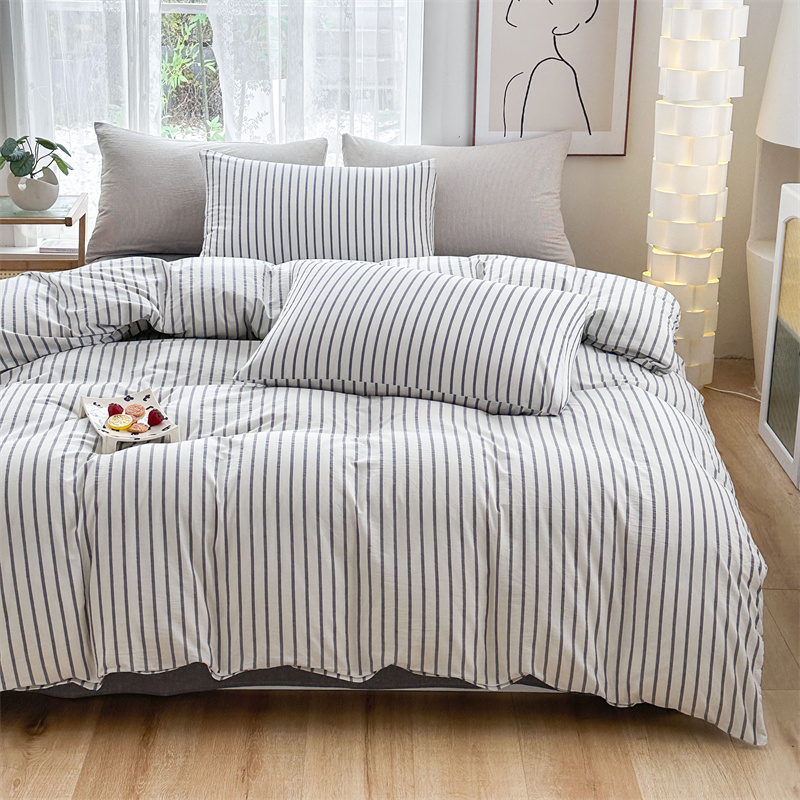 当前位置: 91家纺网 > 商品网购 > 床品套件 > 四件套 > 全棉普通四件套 > 青螺家纺 2024全棉水洗棉双面色织条纹简约三件套四件套枕套床单 (支持一件定制) 简条纹浅灰