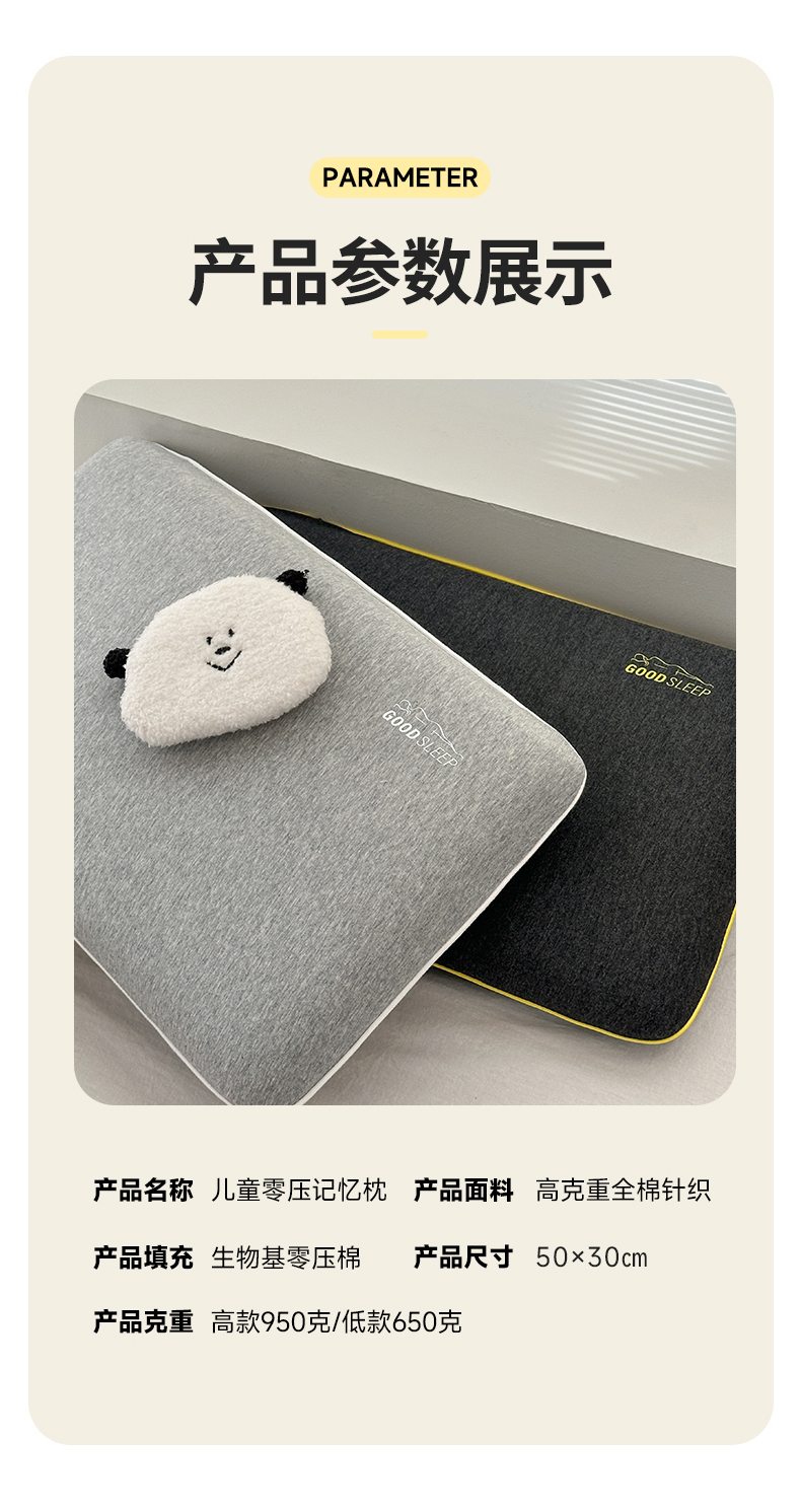 当前位置: 91家纺网 > 商品网购 > 枕头/枕芯/保健枕/颈椎枕 > 普通枕芯 > 伟邦枕芯 2024新款高端生物基儿童0压记忆枕枕头枕芯 灰色高款50×30cm/只