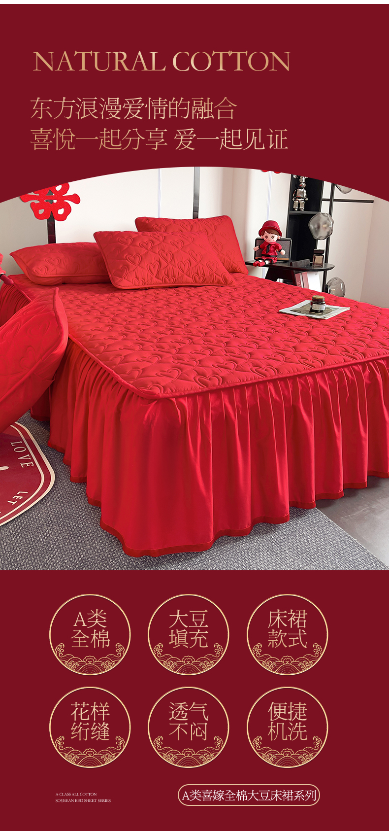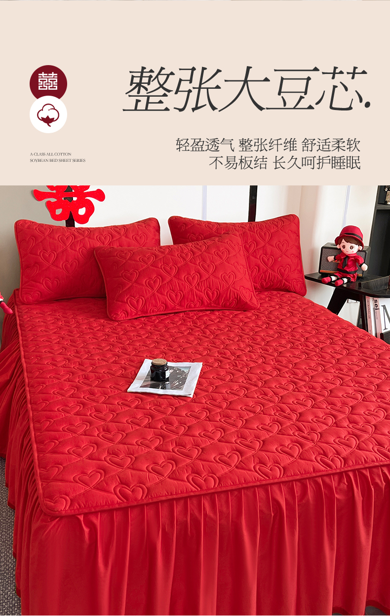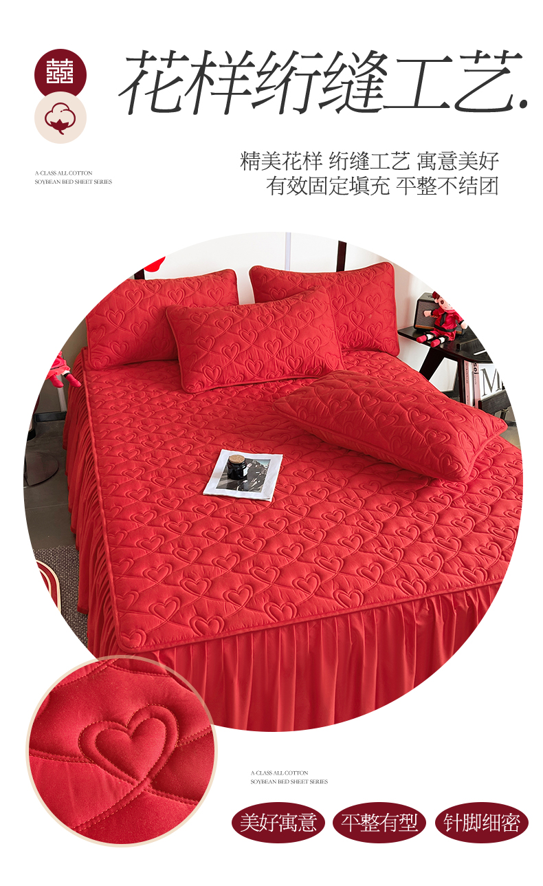 3C 2024新款A类喜嫁全棉大豆床裙系列 心心相印