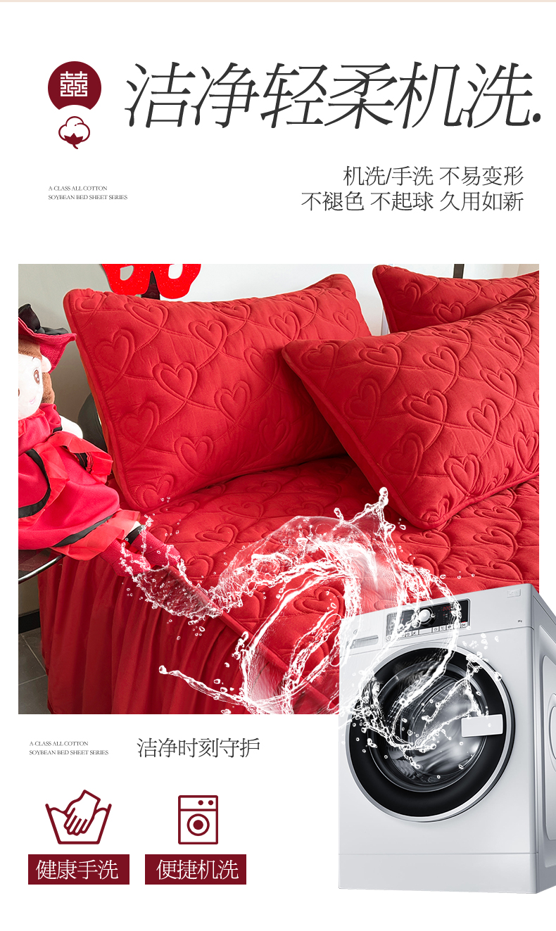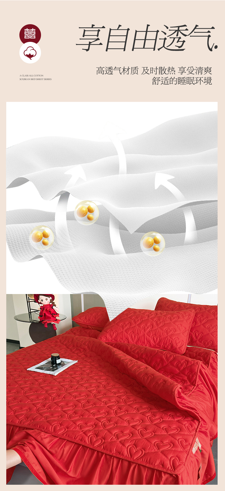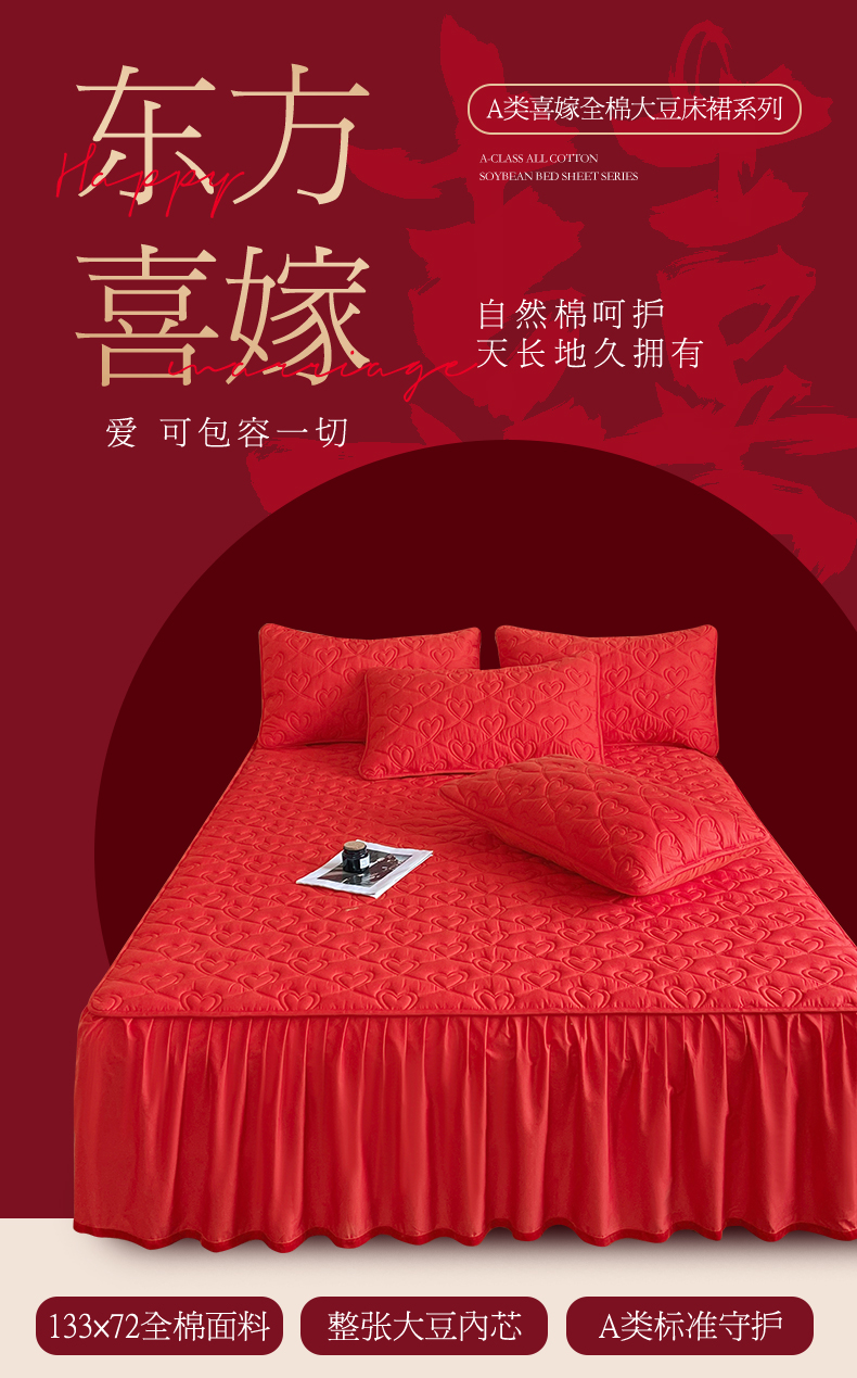 3C 2024新款A类喜嫁全棉大豆床裙系列 心心相印