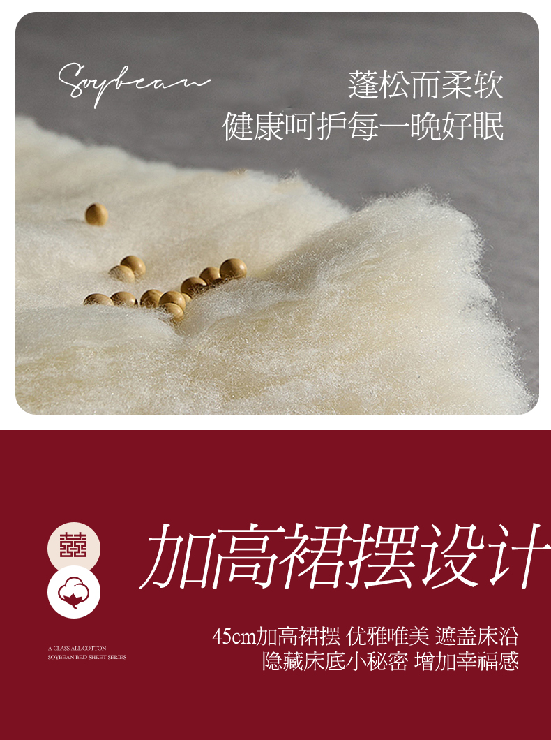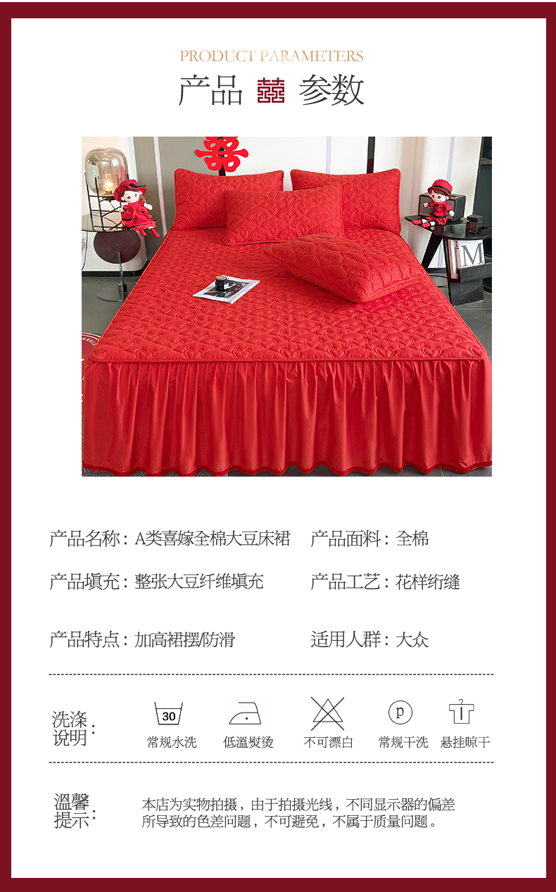 当前位置: 91家纺网 > 商品网购 > 床上用品 > 床裙 > 3C 2024新款A类喜嫁全棉大豆床裙系列 心心相印