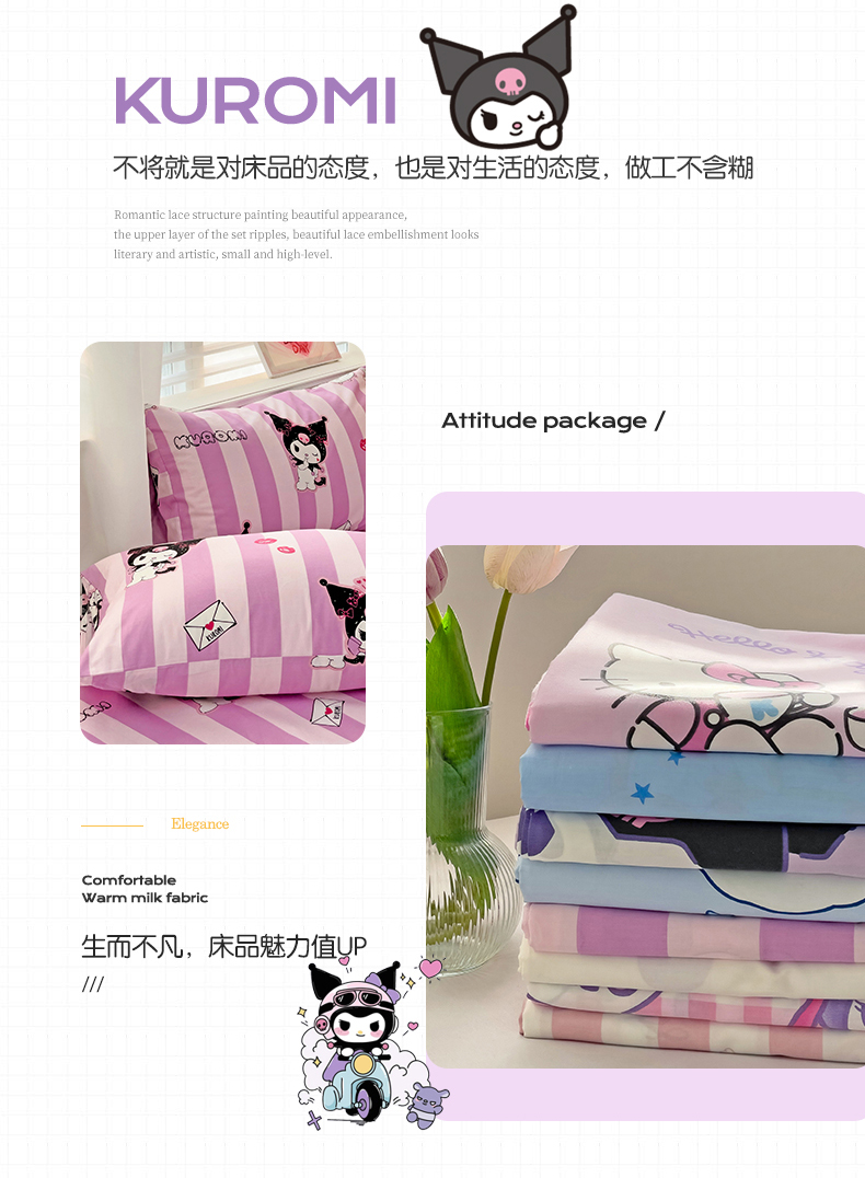 • 91家纺网 家纺一手货源 找家纺 名兮家居 2024新款三丽鸥全棉床单【含防伪标】 口红库洛米