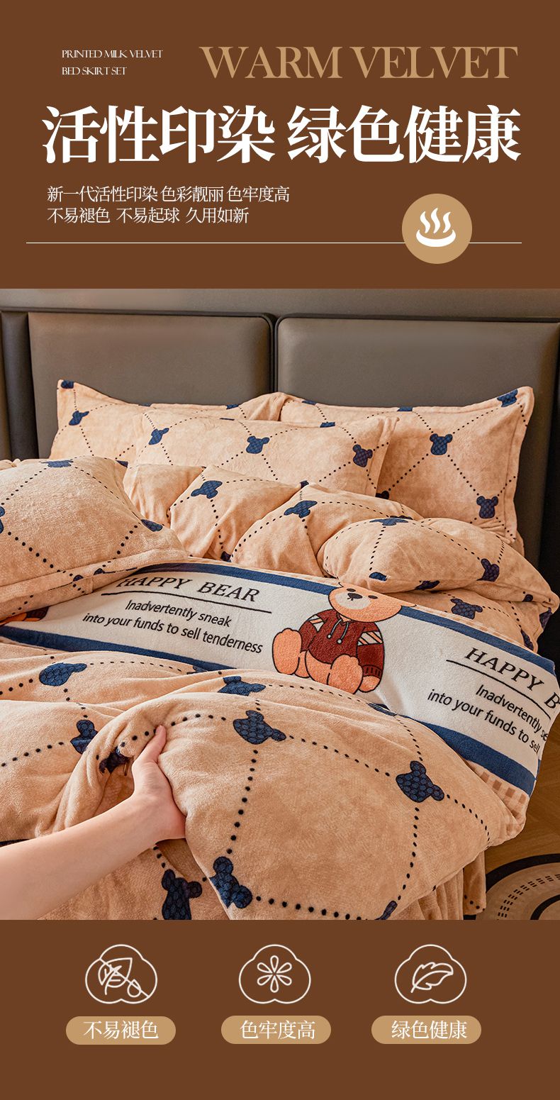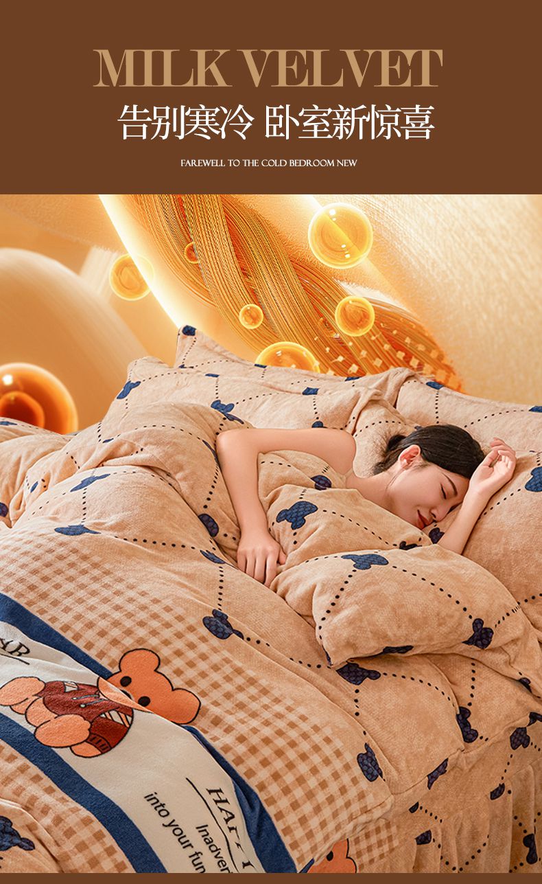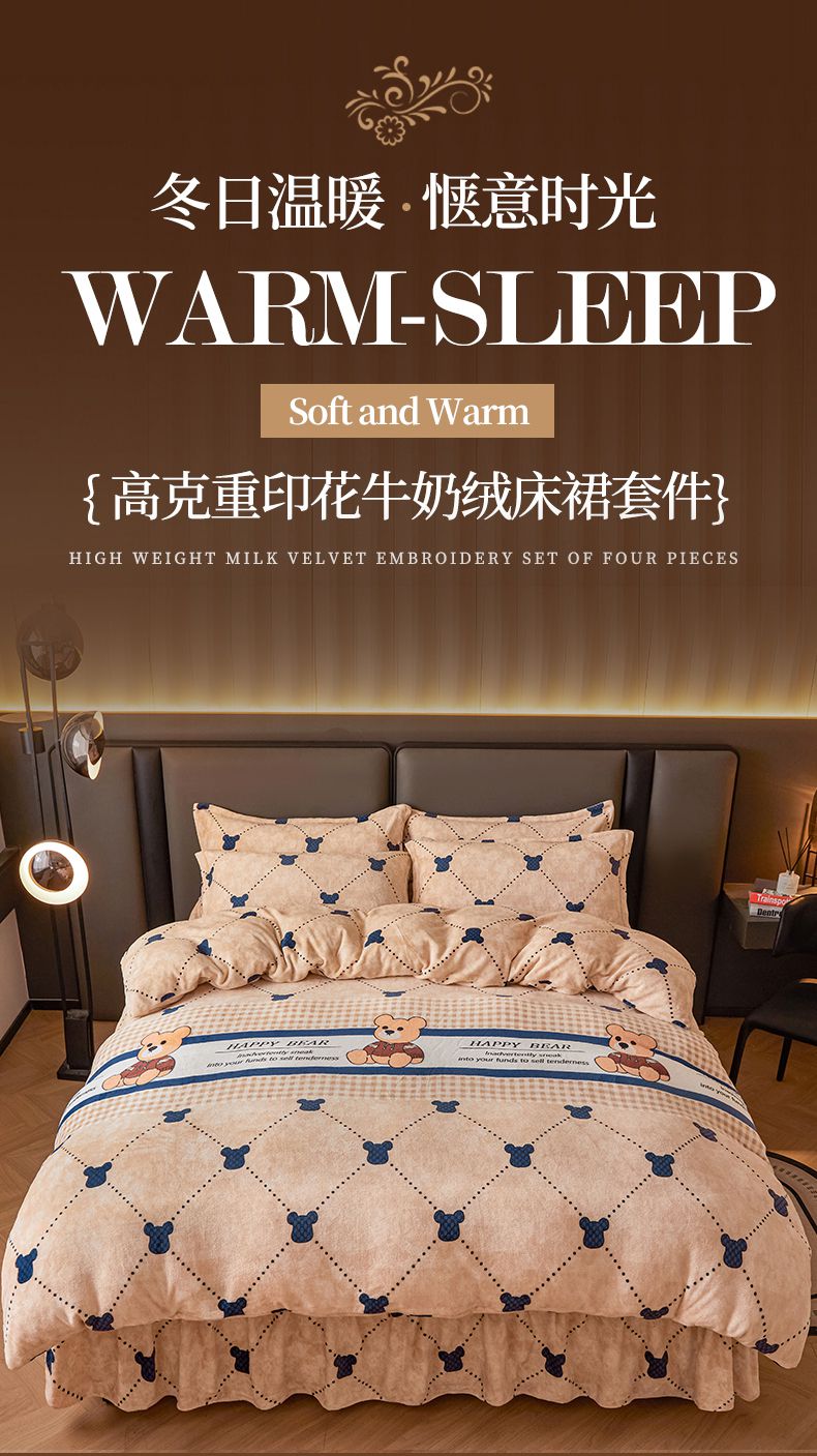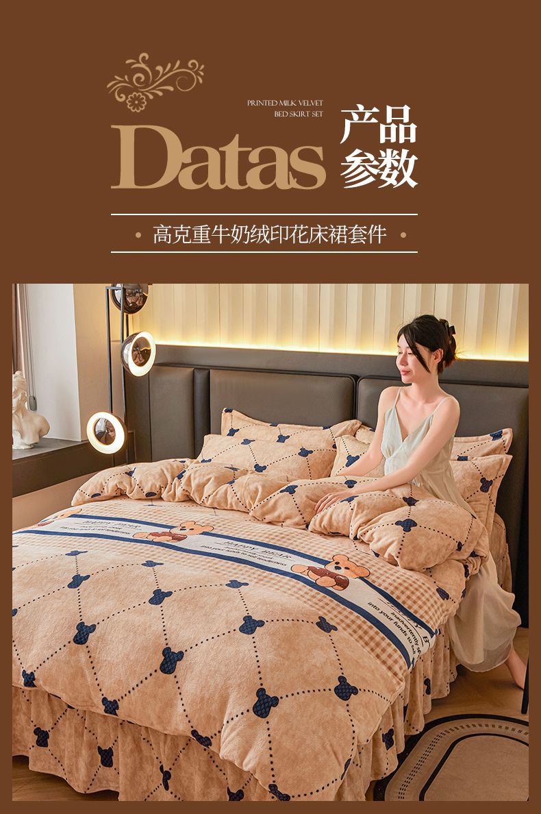 当前位置: 91家纺网 > 商品网购 > 床品套件 > 四件套 > 牛奶绒四件套 > 董韵家纺 2025新款高克重全消光牛奶绒法莱绒金貂绒印花单品被套床裙四件套(提供买家秀)爱克斯-卡其