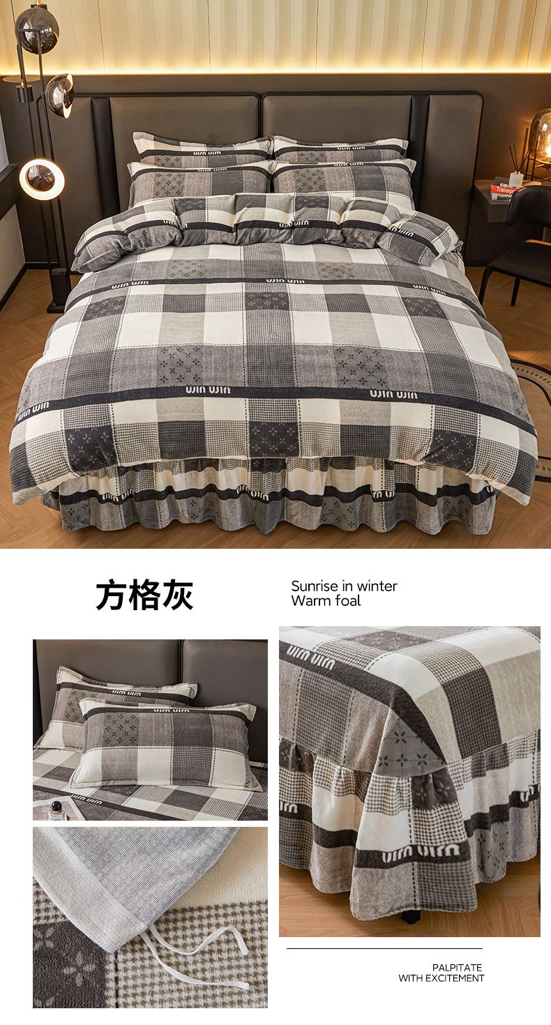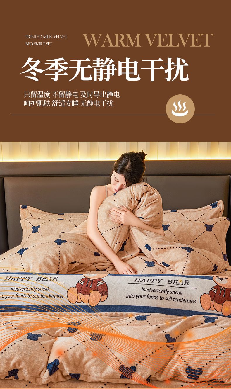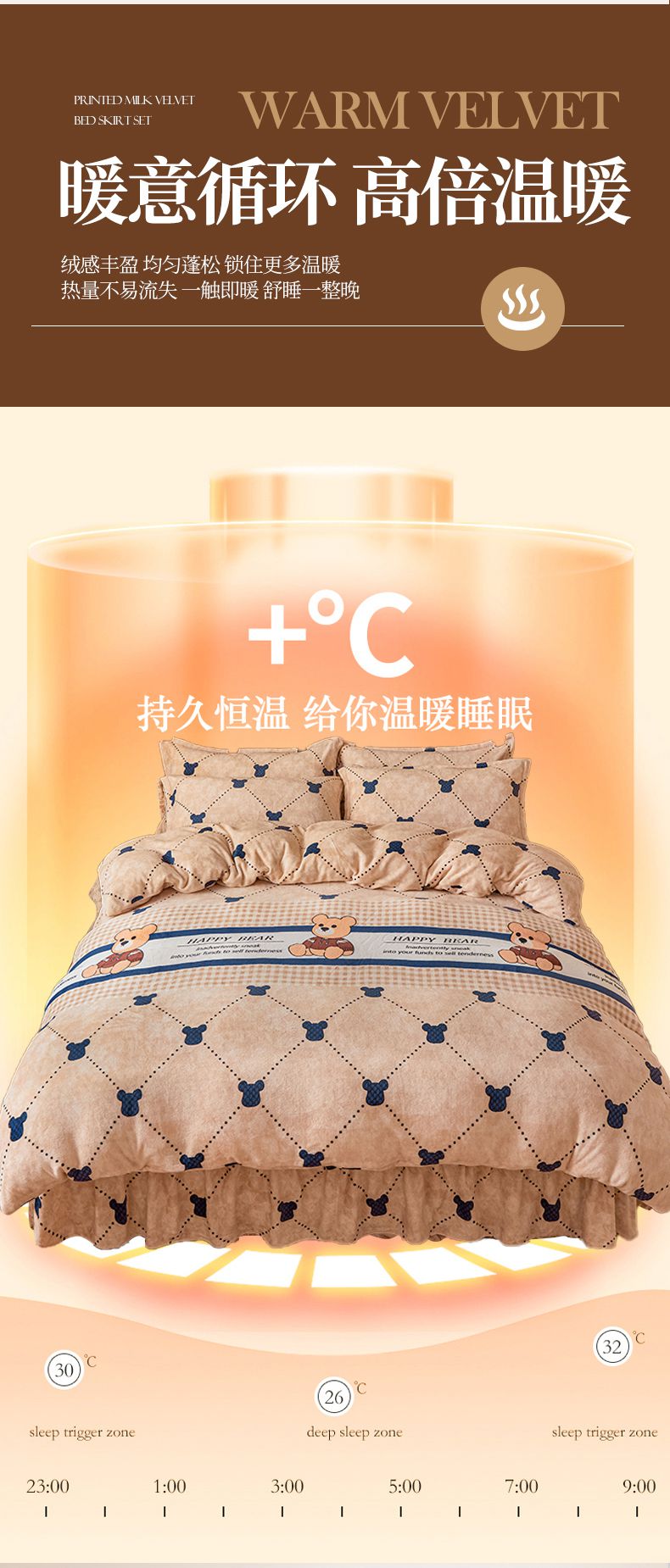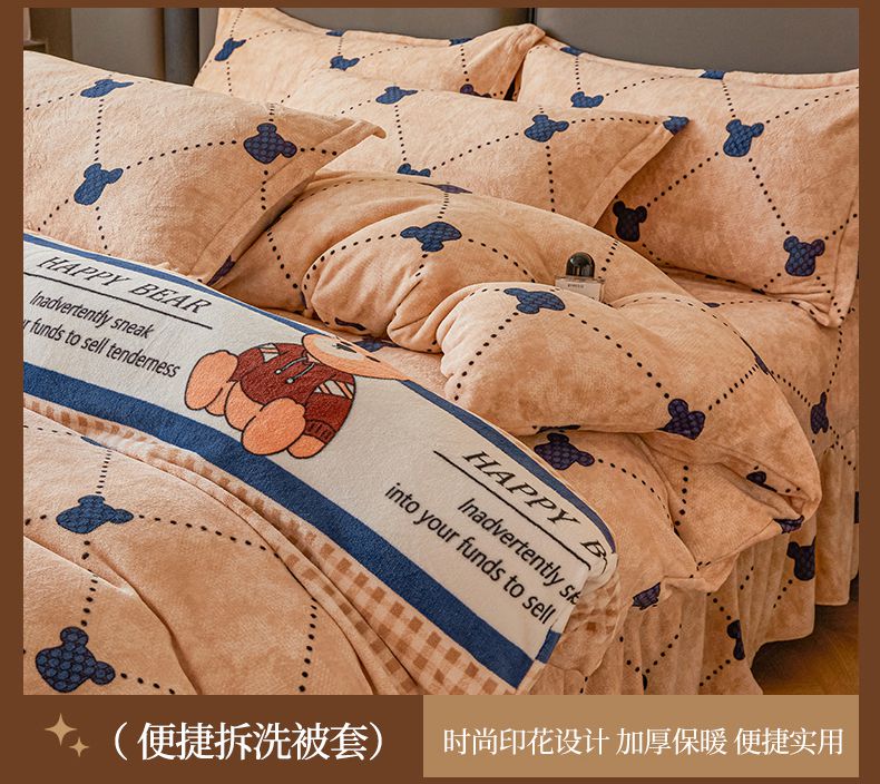当前位置: 91家纺网 > 商品网购 > 床品套件 > 四件套 > 牛奶绒四件套 > 董韵家纺 2025新款高克重全消光牛奶绒法莱绒金貂绒印花单品被套床裙四件套(提供买家秀)爱克斯-卡其