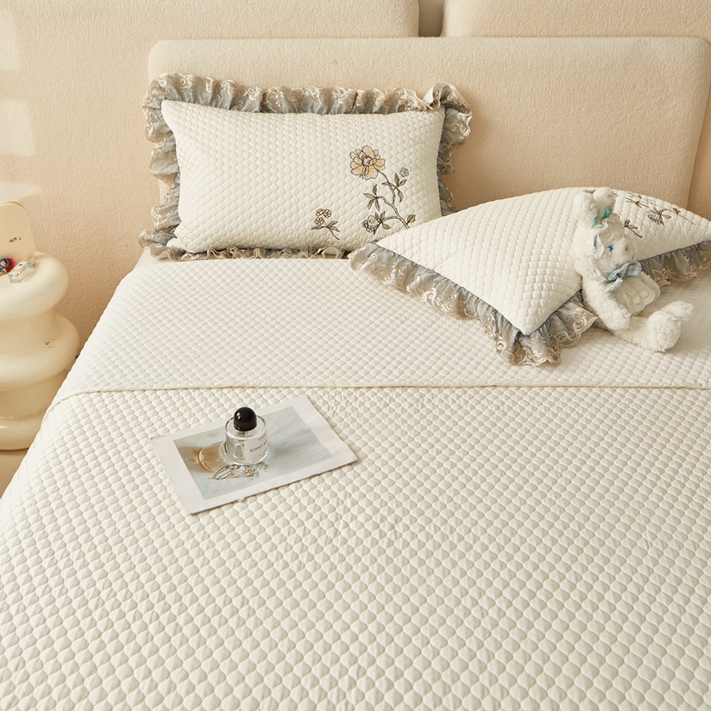(总)紫碧螺家纺 2025新款牛奶绒绗绣裙式床盖三件套,暖黄,银灰,绿色,粉色,奶白,浅紫