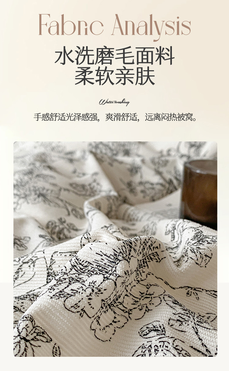 (总)一左一右 2025秋冬新款数码印花法式复古田园风花边亲肤棉磨毛水洗棉床笠床裙四件套-微雨山茶,微雨山茶