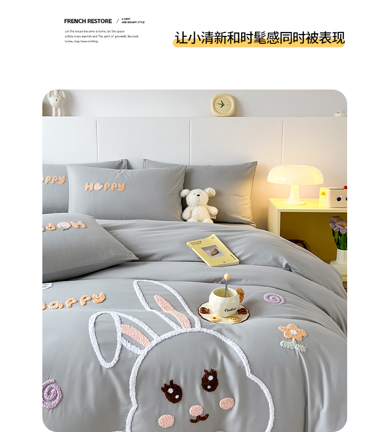 当前位置: 91家纺网 > 商品网购 > 床品套件 > 四件套 > 磨毛活性四件套 > 言熙居家纺 2024新款加厚磨毛110克亲肤棉四件套 淡雅灰