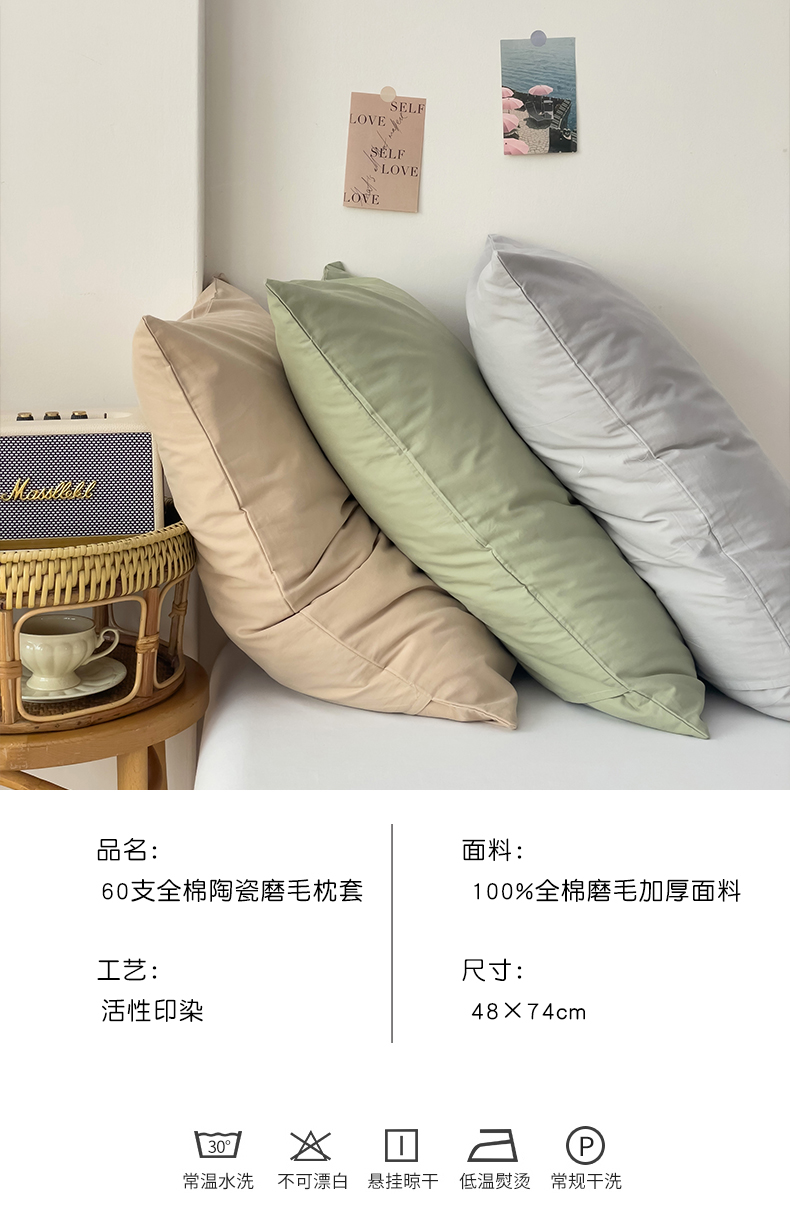 商品名称:漫时光 2025新款60支A类新疆长绒棉陶瓷磨毛单枕套 奶油绿