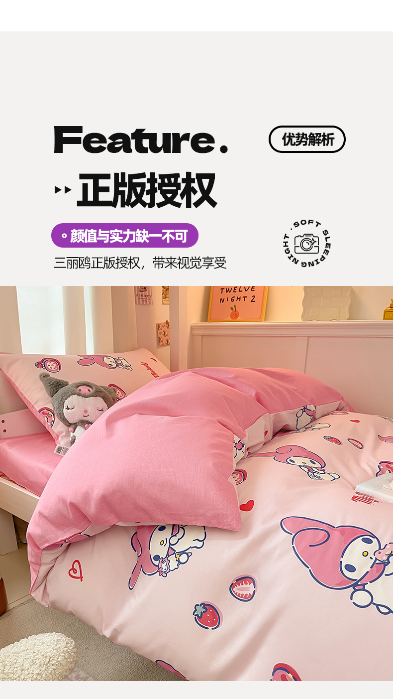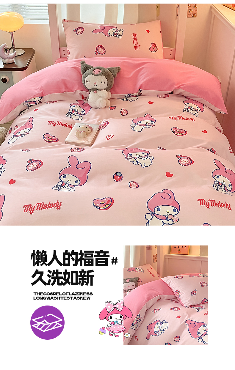 当前位置: 91家纺网 > 商品网购 > 床品套件 > 四件套 > 全棉普通四件套 > 2024新款三丽鸥授权全棉少女印花系列学生三件套四件套 棉三丽鸥-甜甜圈美乐蒂