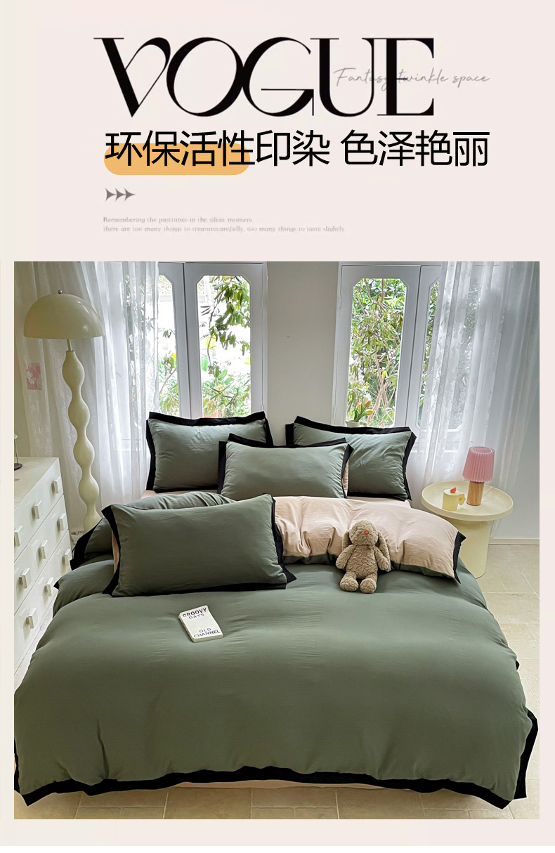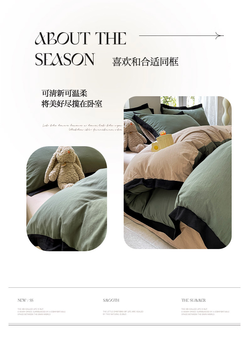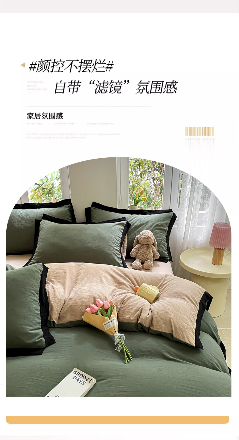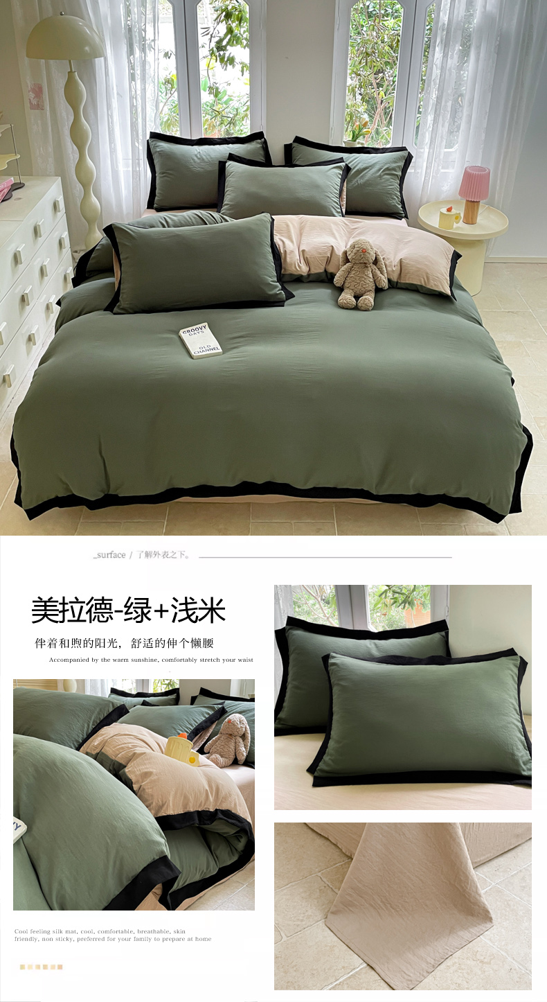 商品名称:慕澄家纺 2024新款美拉德风双拼四件套 美拉德-绿+浅米
