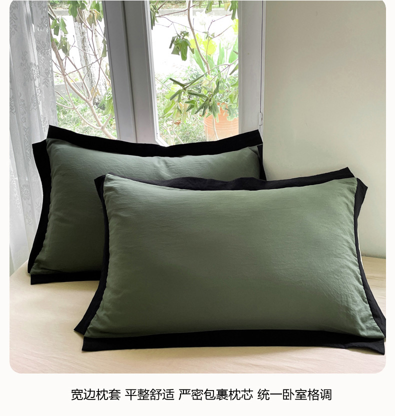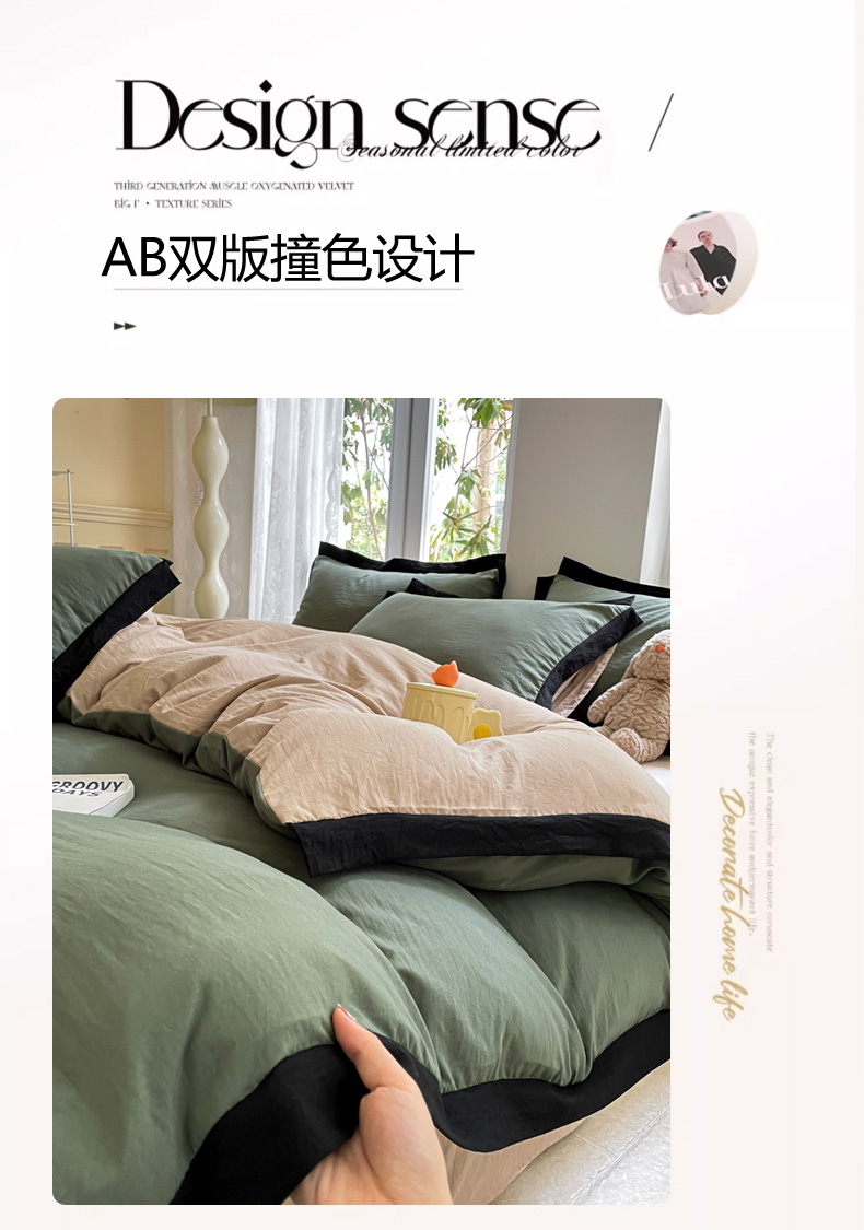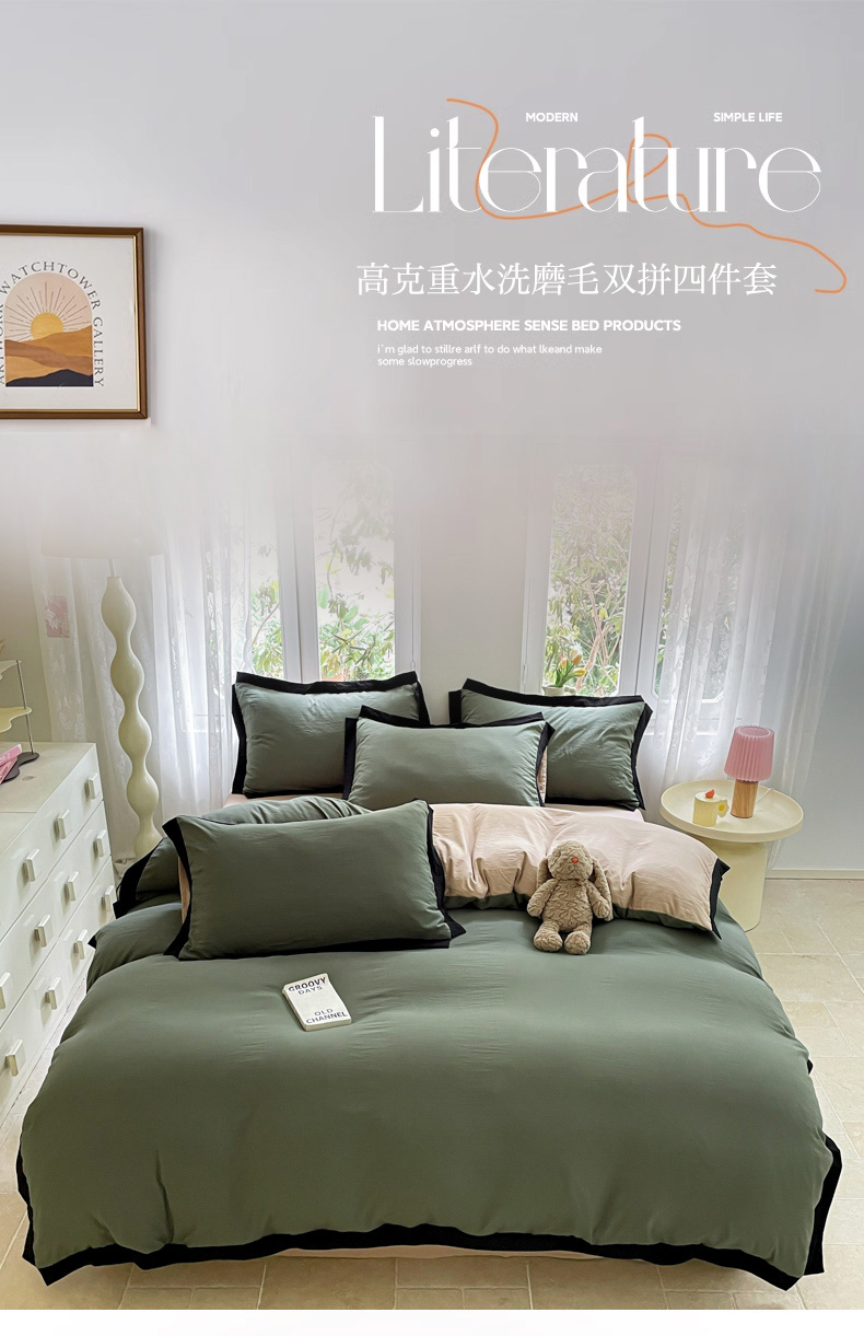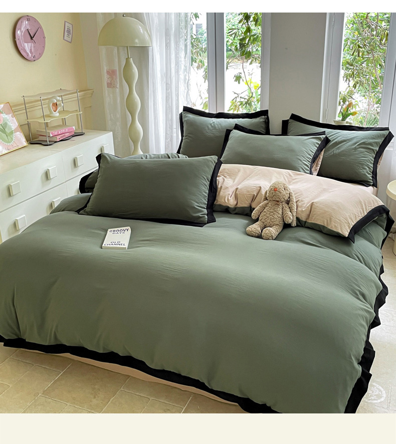 商品名称:慕澄家纺 2024新款美拉德风双拼四件套 美拉德-绿+浅米