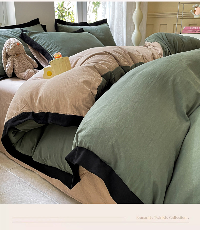 慕澄家纺 2024新款美拉德风双拼四件套 美拉德-绿+浅米