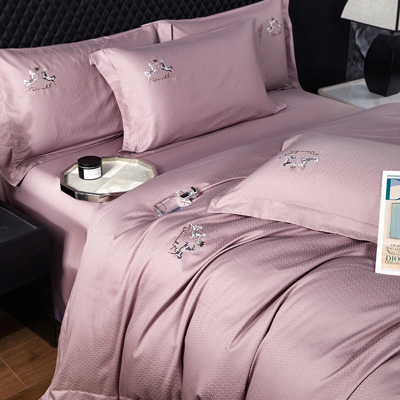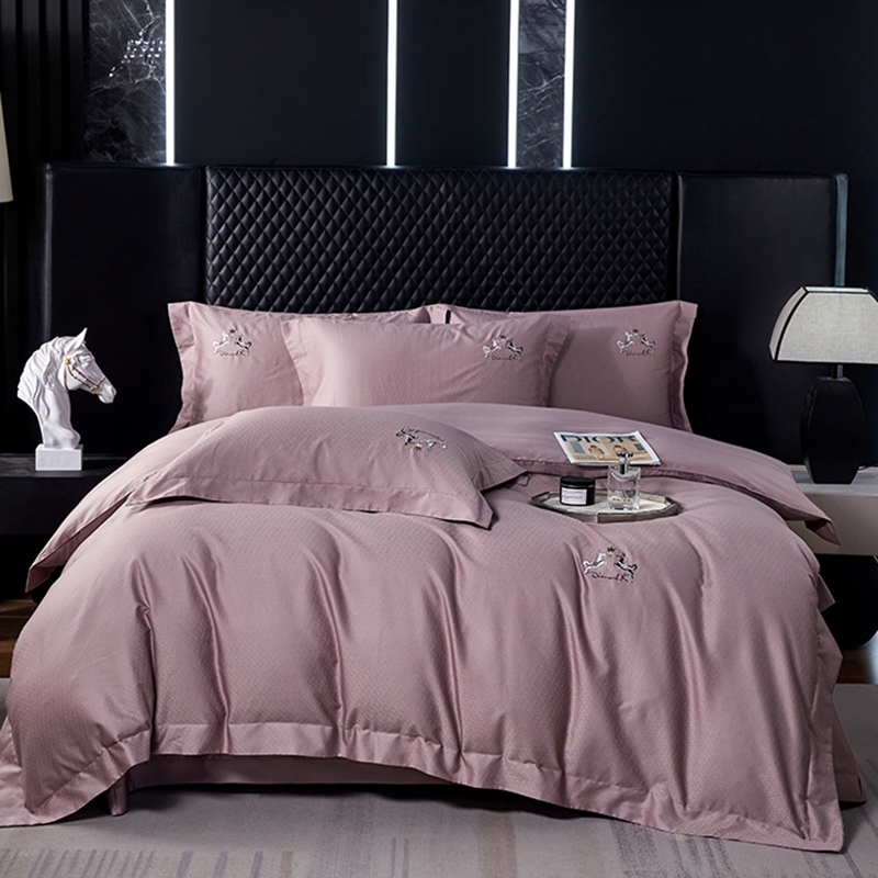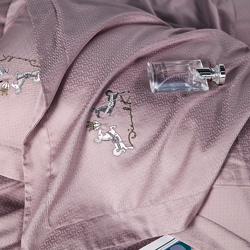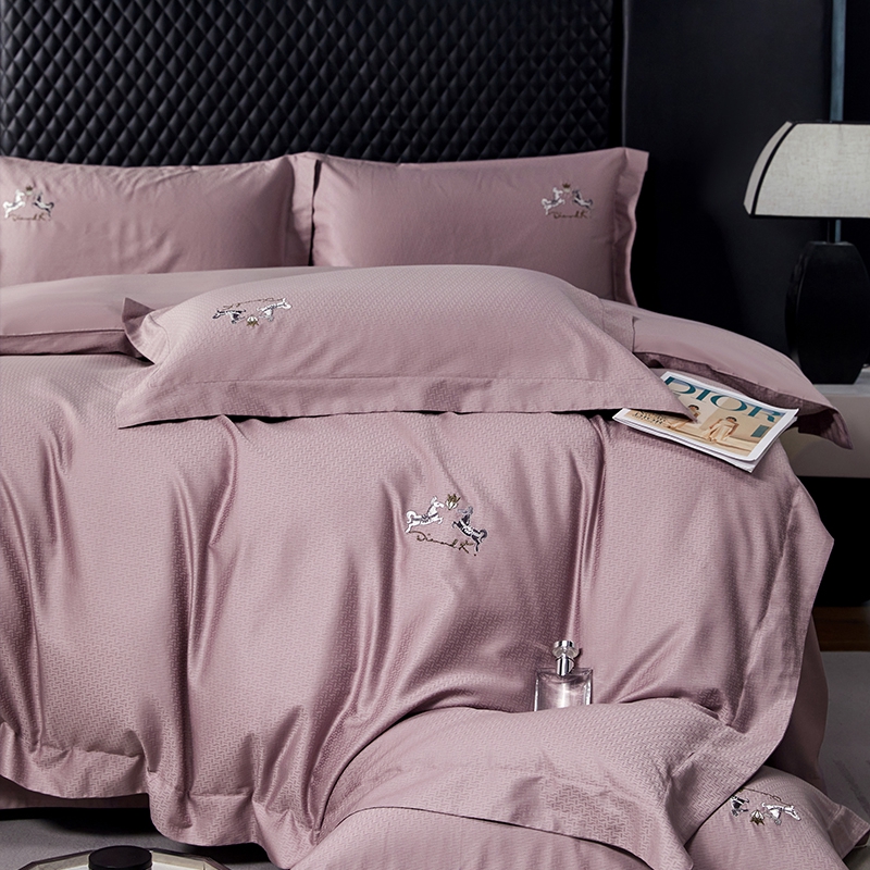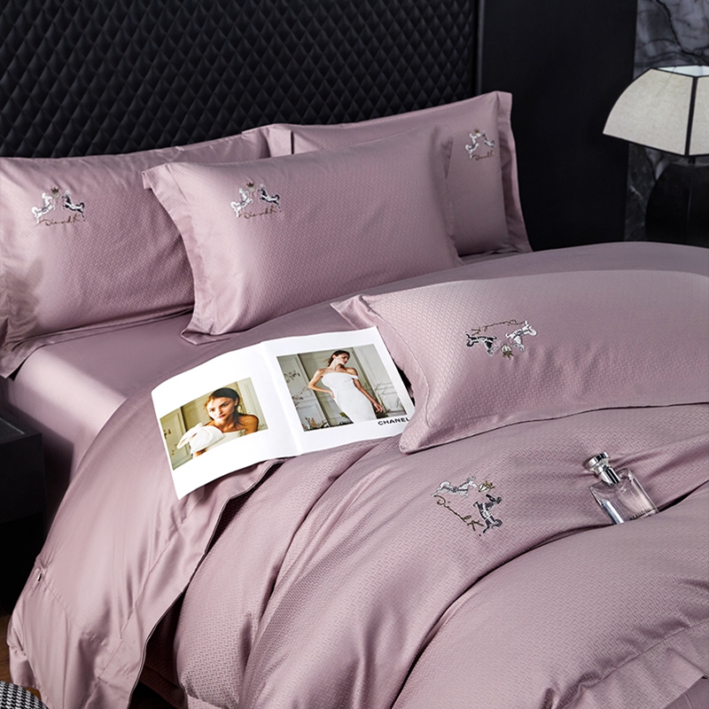 淳绵家居 2024新款50*50S双股长绒棉提花刺绣四件套 蒂梵-优雅紫