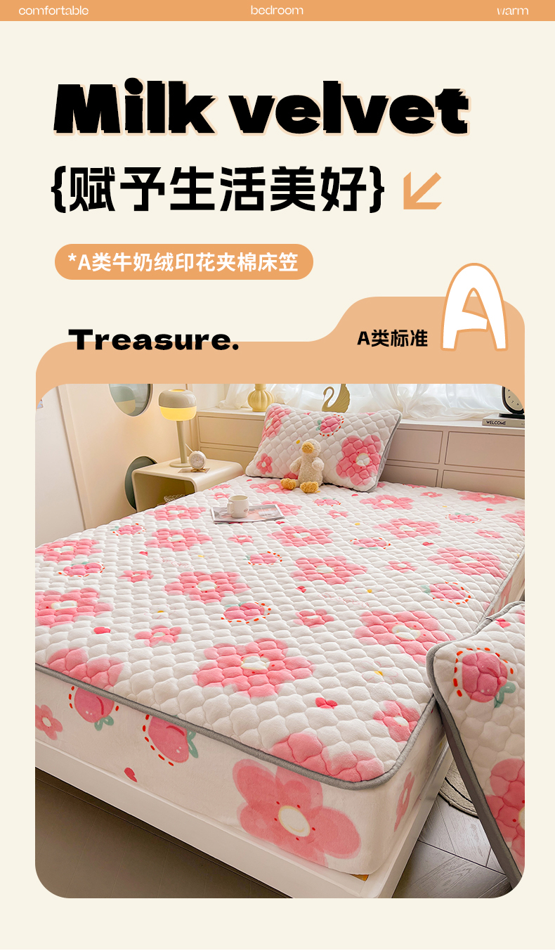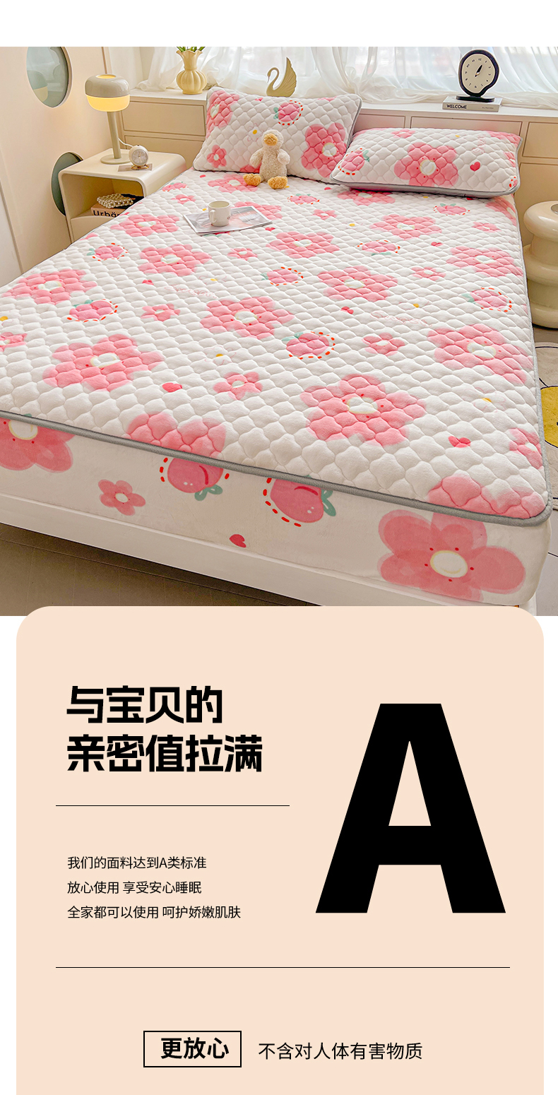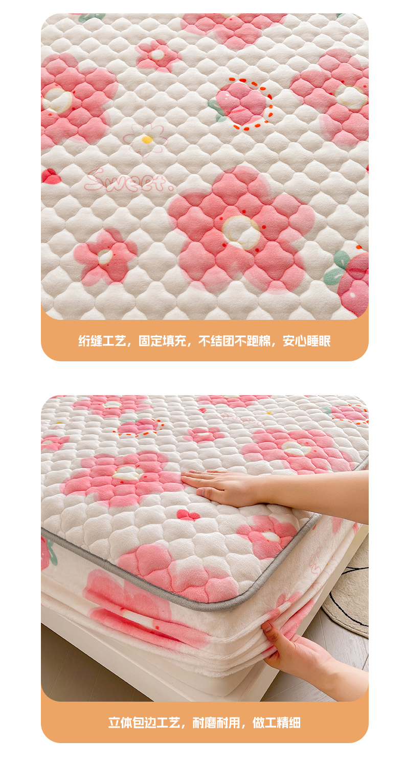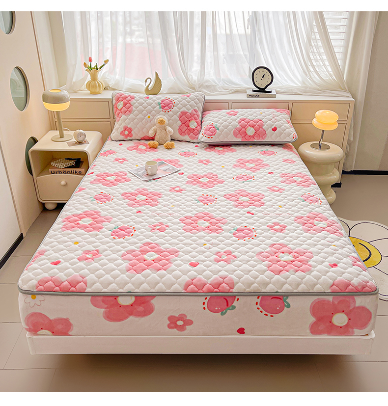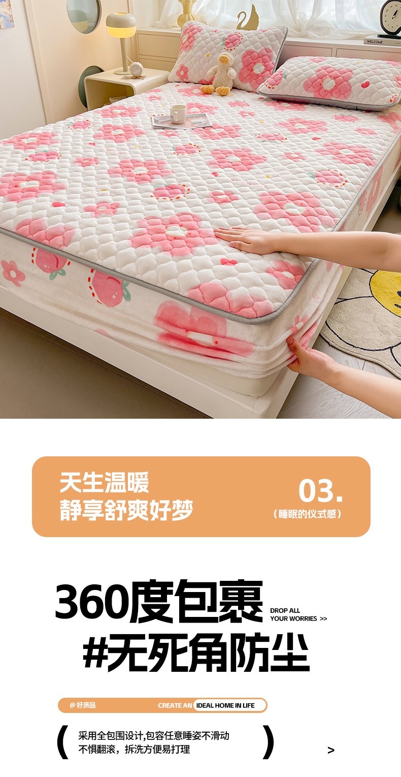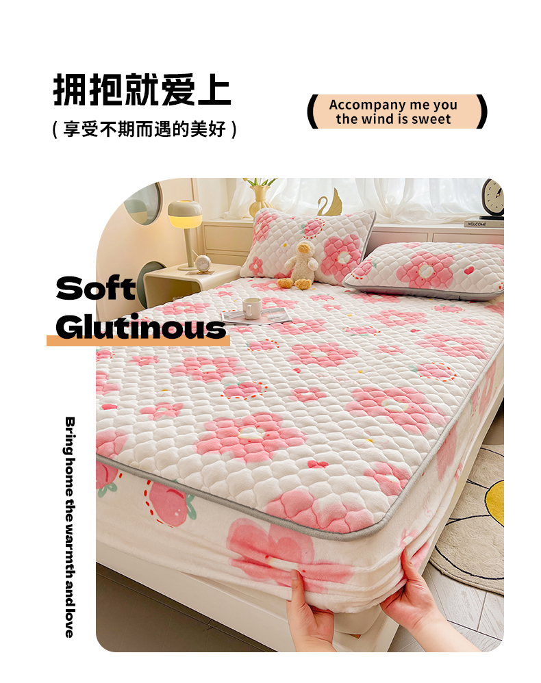 • 91家纺网 家纺一手货源 找家纺 悦织语 2025新款200g加厚A类牛奶绒印花夹棉床笠床罩床护垫 缤纷花