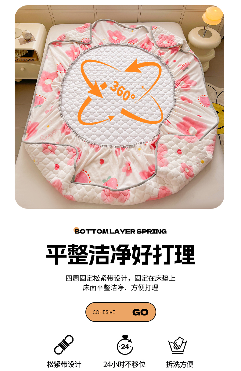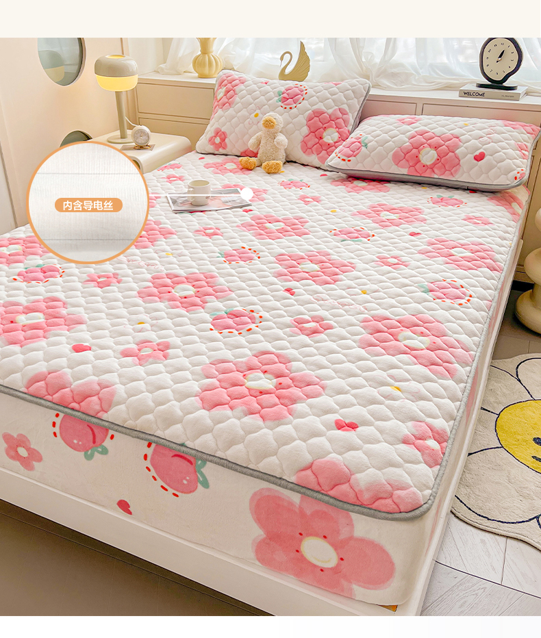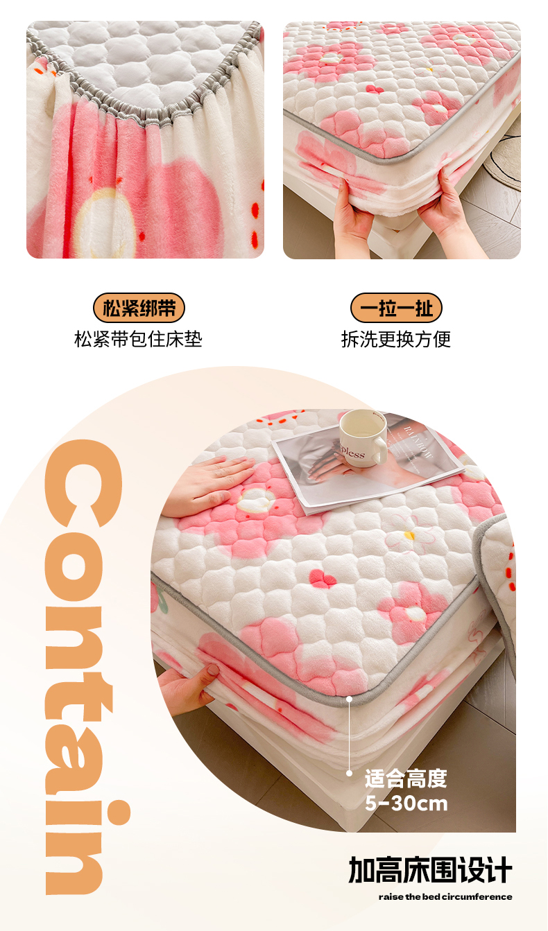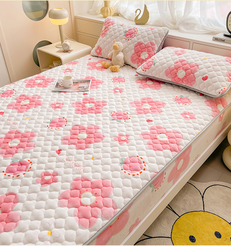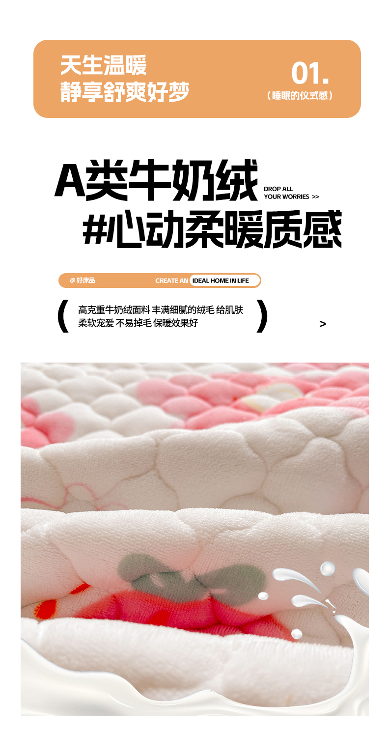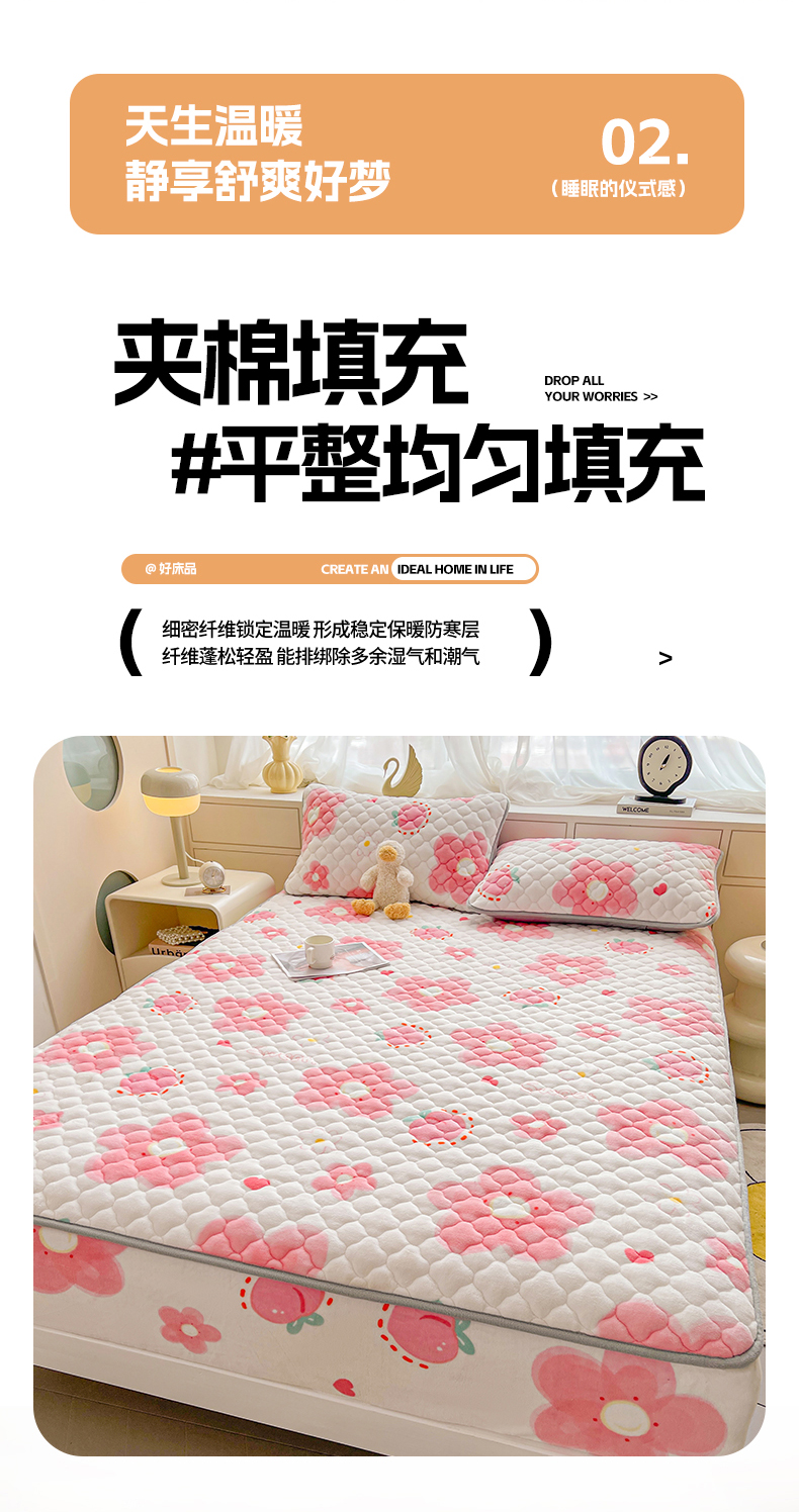 • 91家纺网 家纺一手货源 找家纺 悦织语 2025新款200g加厚A类牛奶绒印花夹棉床笠床罩床护垫 缤纷花