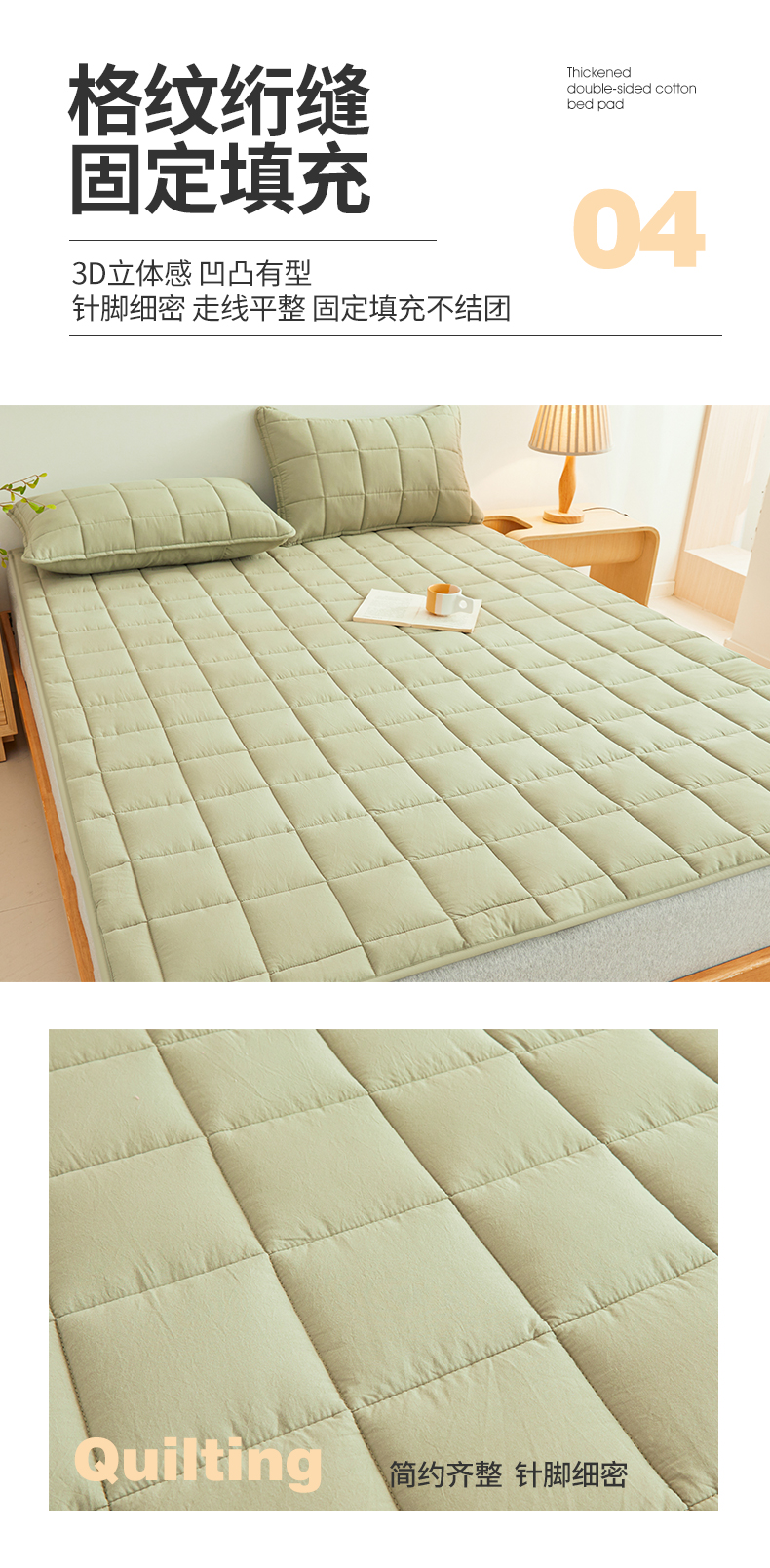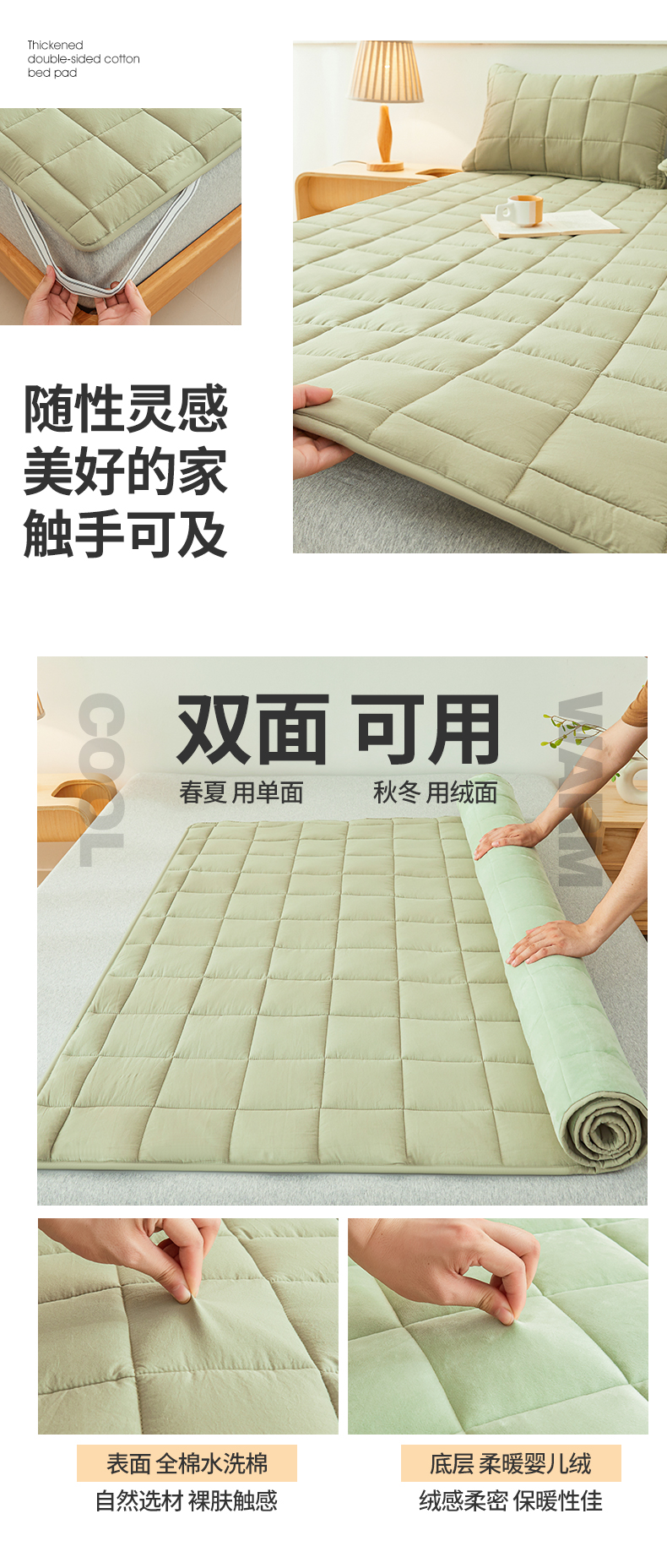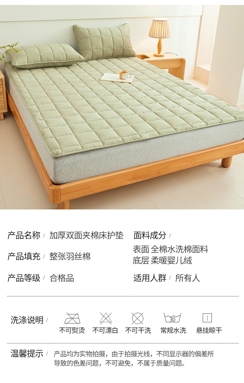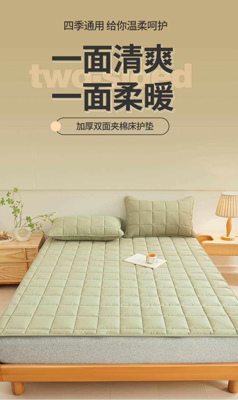 当前位置: 91家纺网 > 商品网购 > 床品定制 > 床垫定制定做 > 3C 2024新款亲肤全棉加厚双面床护垫 豆绿