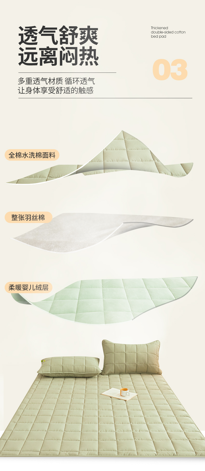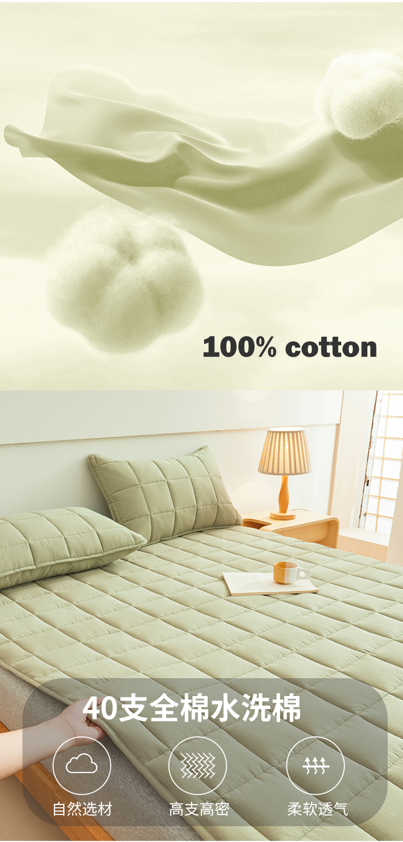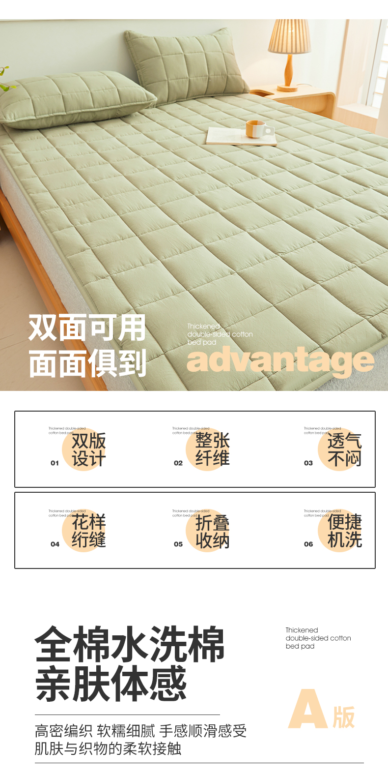 当前位置: 91家纺网 > 商品网购 > 床品定制 > 床垫定制定做 > 3C 2024新款亲肤全棉加厚双面床护垫 豆绿