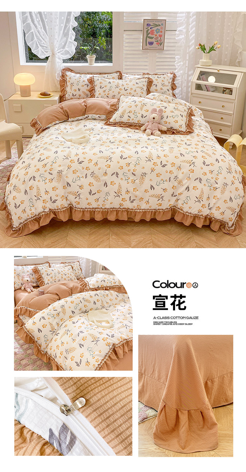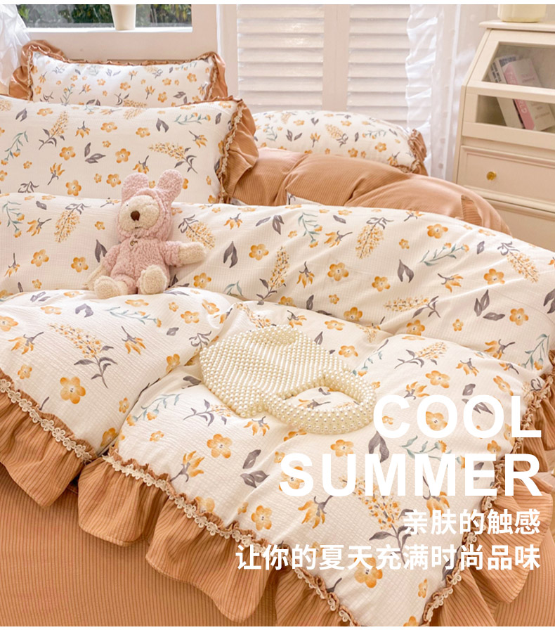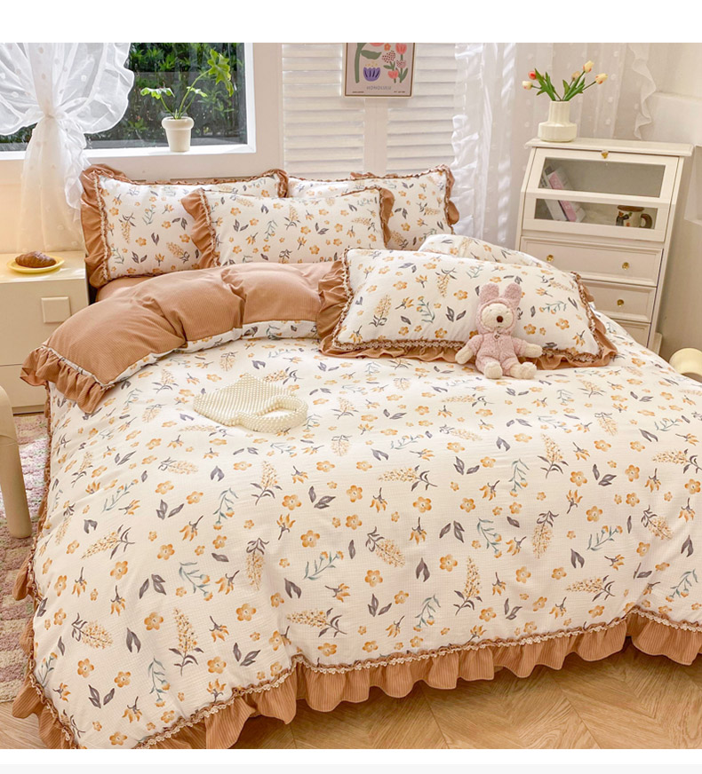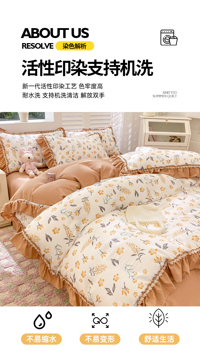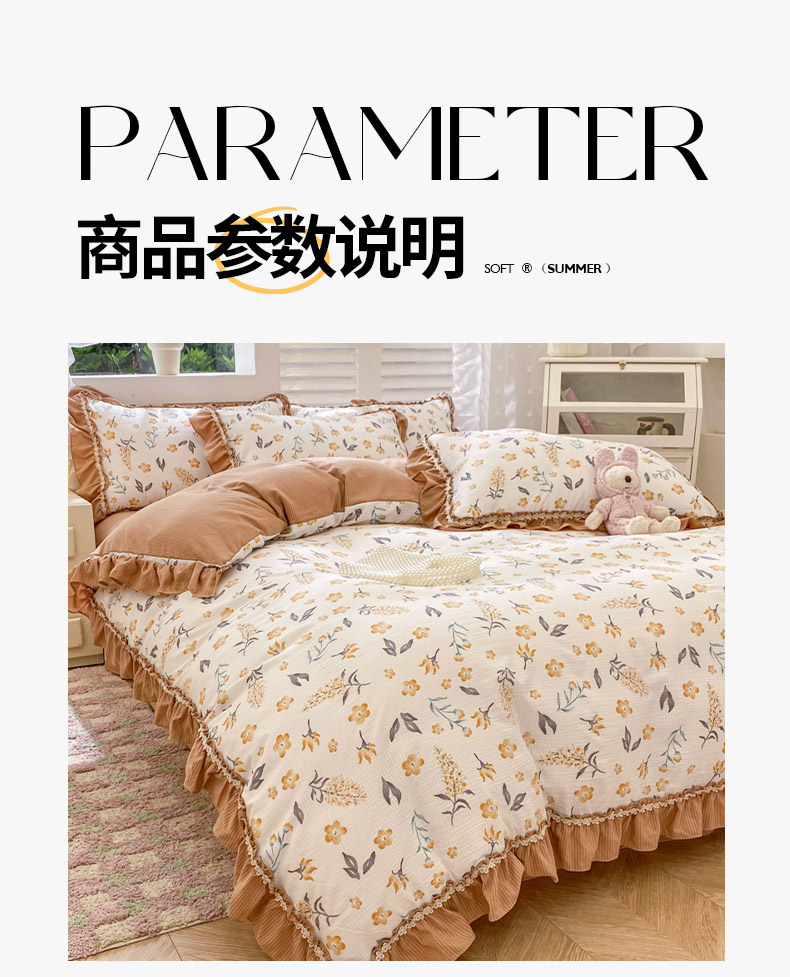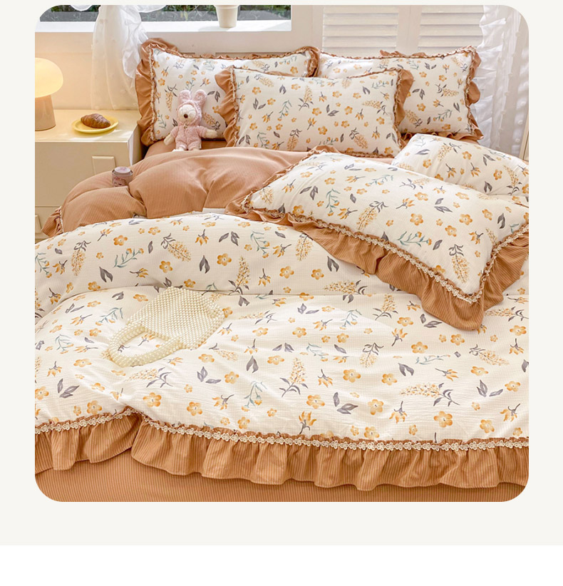 商品名称:同田家纺 2024新款泡泡棉印花蕾丝工艺四件套 萱花