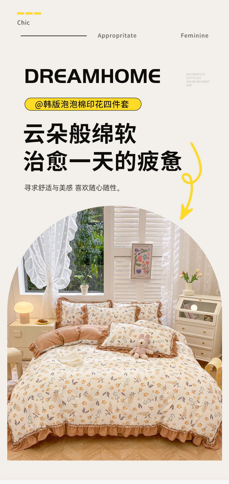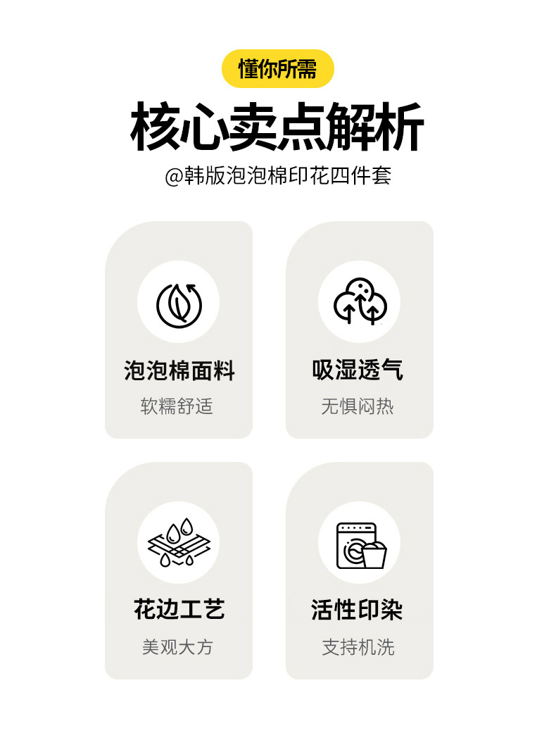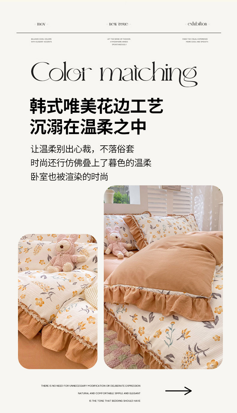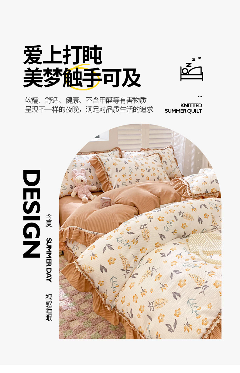 商品名称:同田家纺 2024新款泡泡棉印花蕾丝工艺四件套 萱花