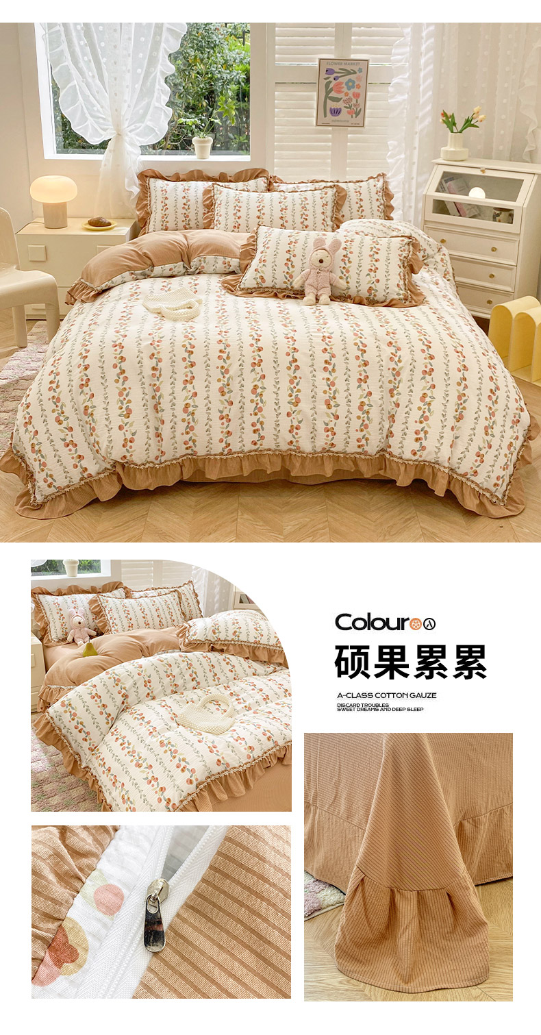 同田家纺 2024新款泡泡棉印花蕾丝工艺四件套 硕果累累