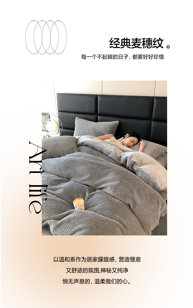 当前位置: 91家纺网 > 商品网购 > 床品套件 > 四件套 > 其它四件套 > 2024新款兔毛麦穗纹系列三件套四件套 琉璃灰