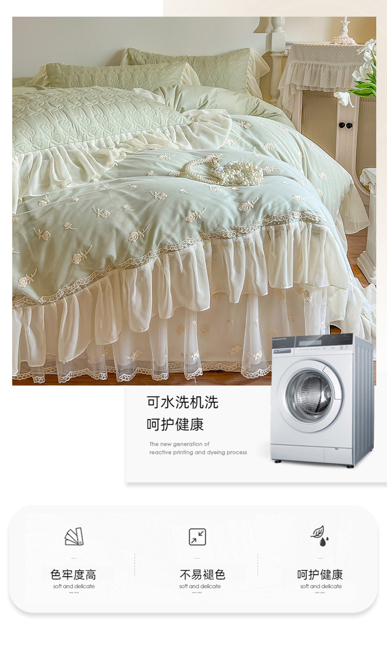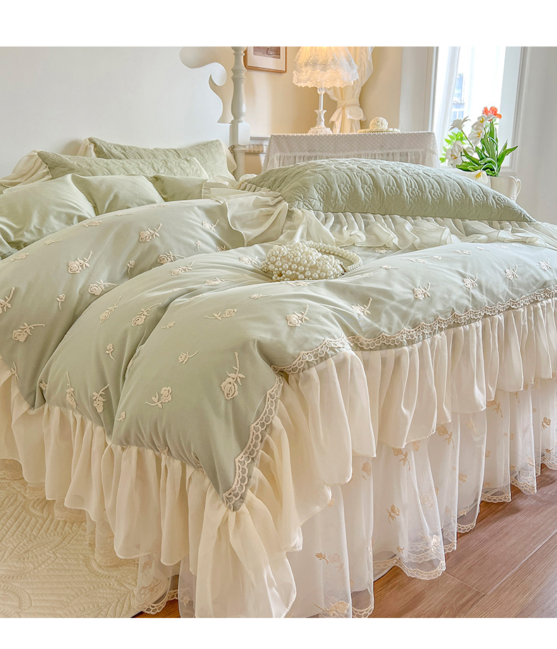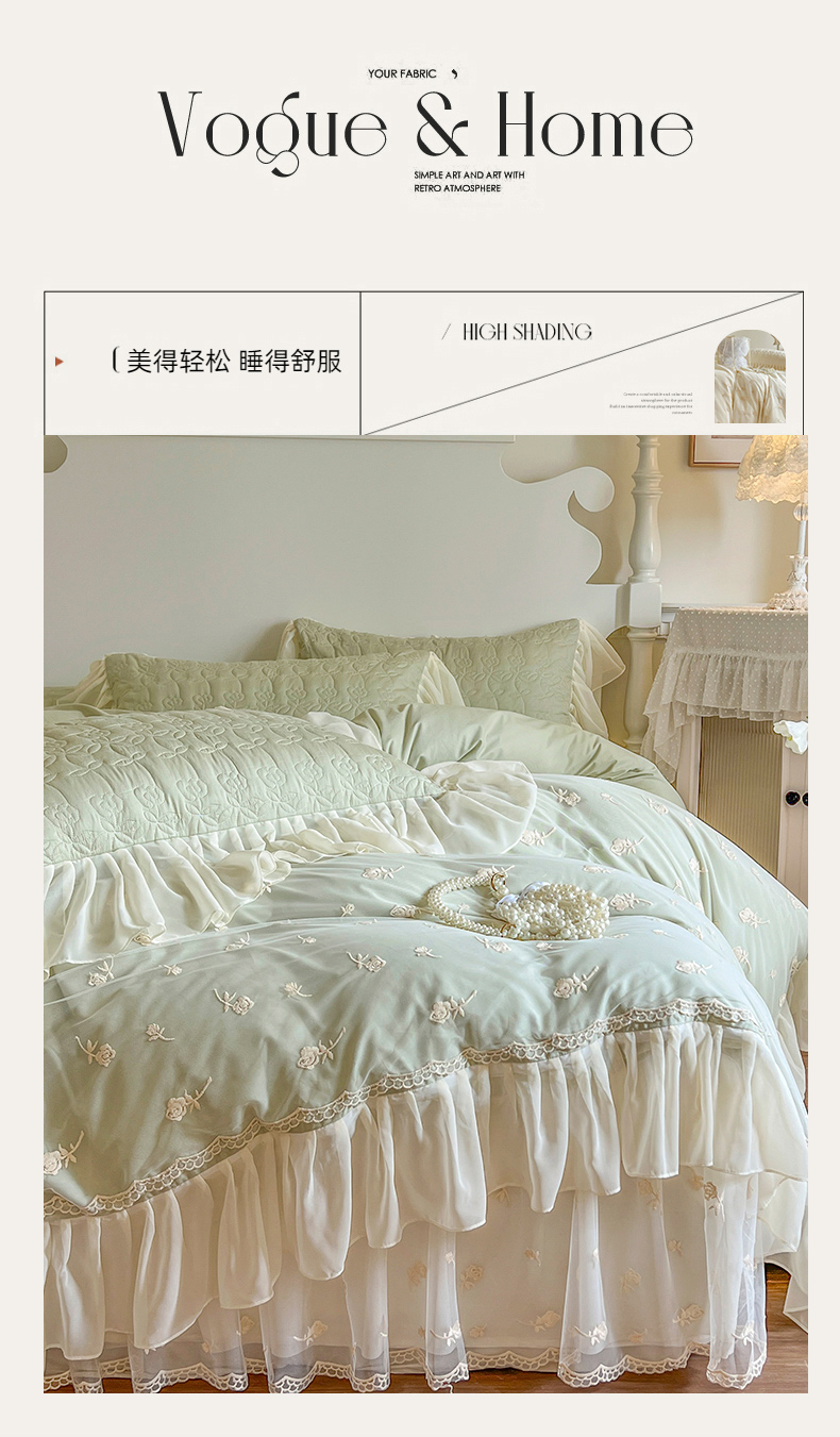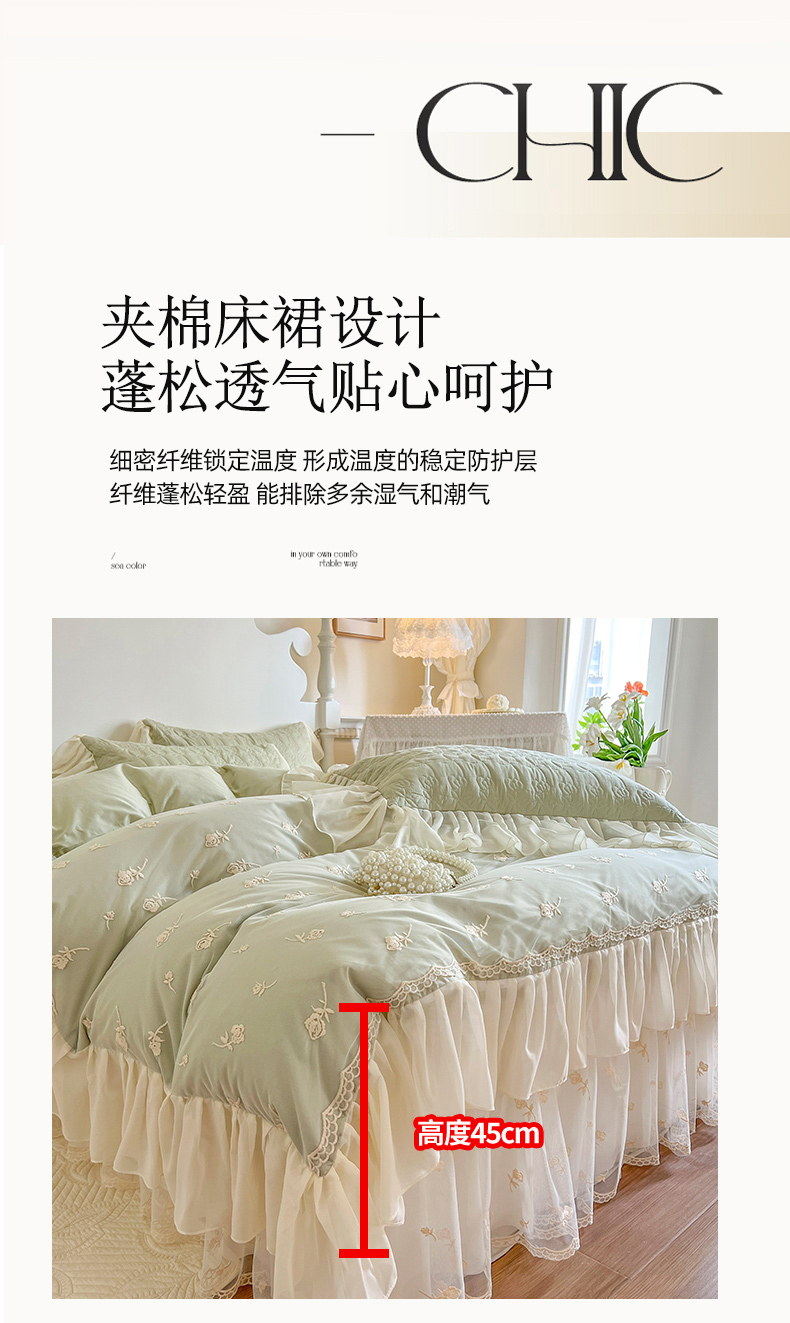 当前位置: 91家纺网 > 商品网购 > 床品套件 > 四件套 > 全棉普通四件套 > 网红馆 2025新款全棉床裙四件套-玫瑰花园 麦绿