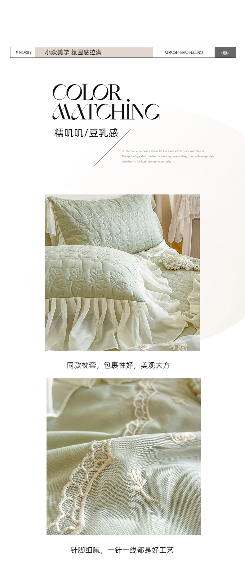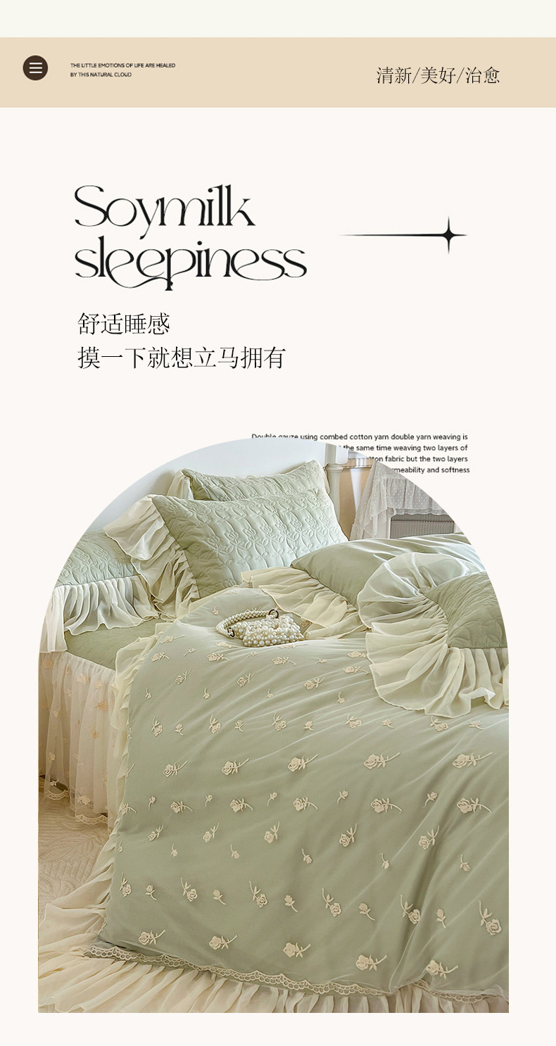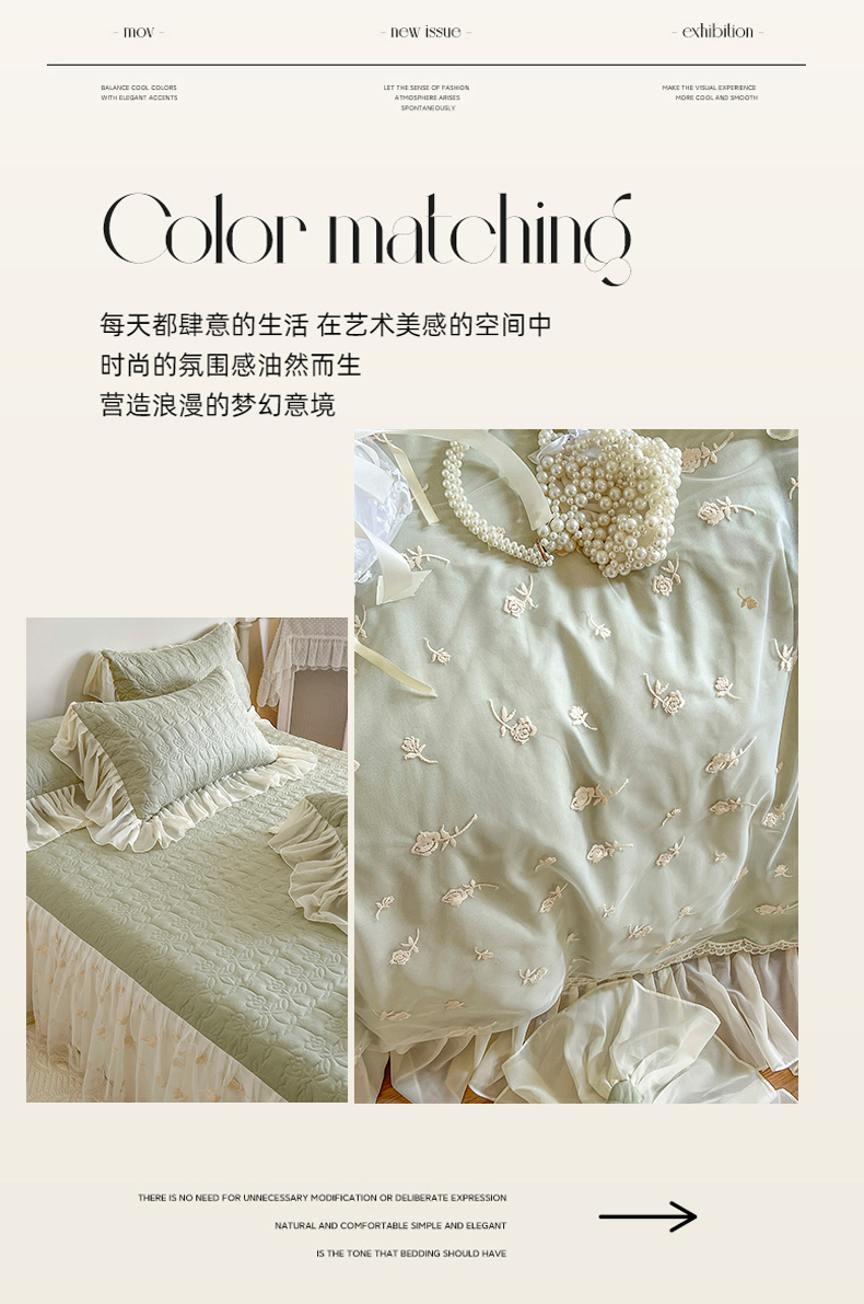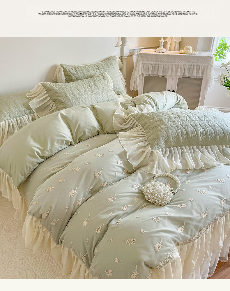 当前位置: 91家纺网 > 商品网购 > 床品套件 > 四件套 > 全棉普通四件套 > 网红馆 2025新款全棉床裙四件套-玫瑰花园 麦绿